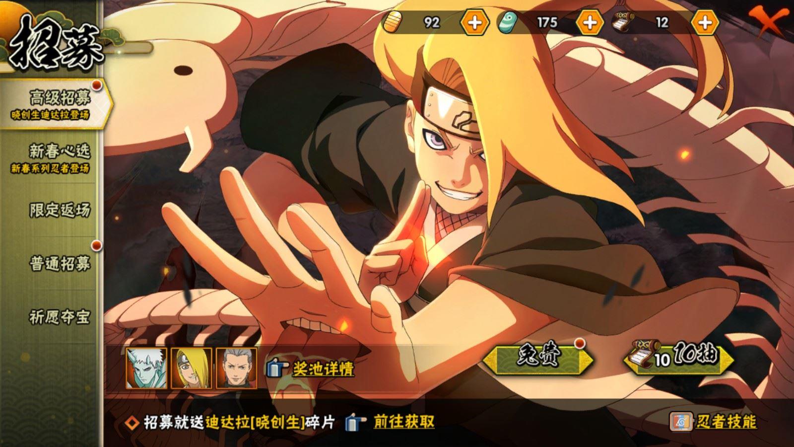 【S忍者】,宇智波佐助「漩涡鸣人」,宇智波佐助「永恒万花筒」,宇智波带土「忍界大战」,千手柱间「秽土转生」,自来也「舞之豪杰」,猿飞日斩「秽土转生」,宇智波鼬「须佐能乎」,佩恩「天道」,波风水门,大蛇丸,