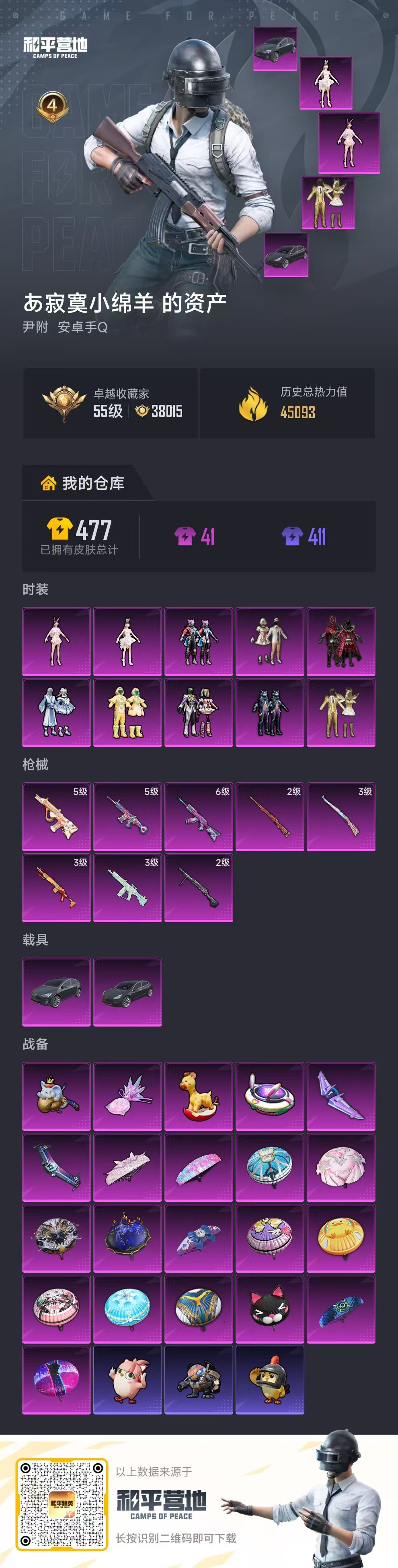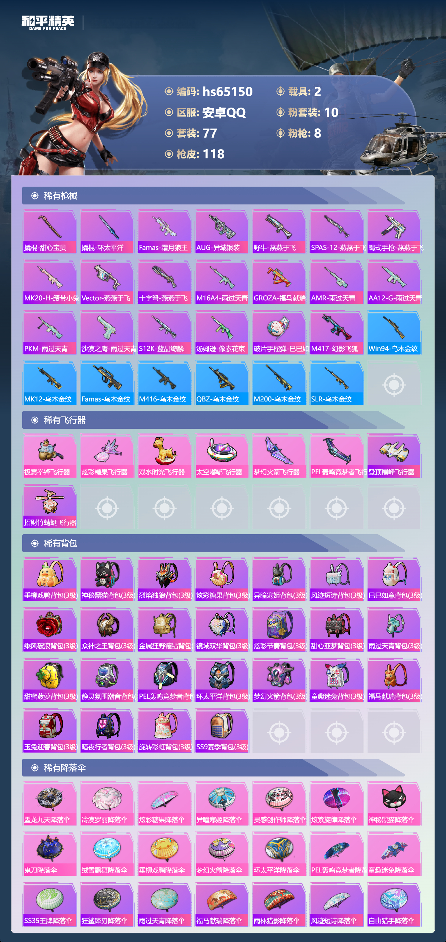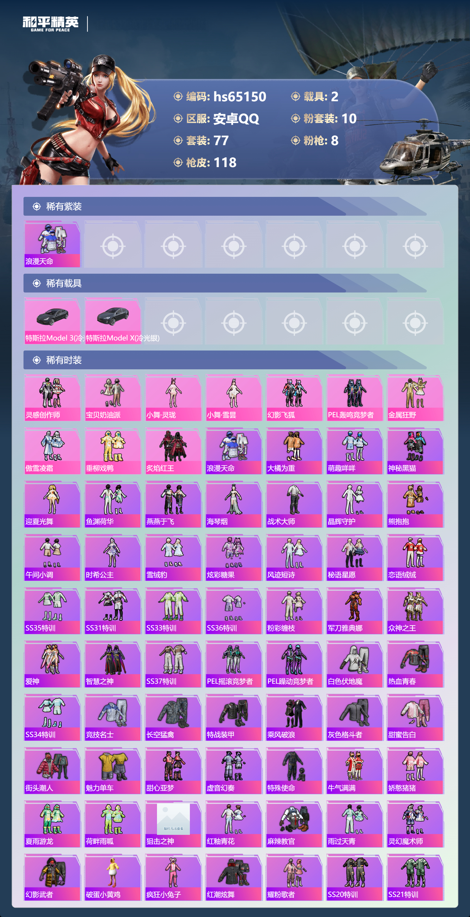 PX_2541502-,安卓手Q-4王牌印记-10粉装-8特效枪-2载具-45093热力值-77套装-118枪皮