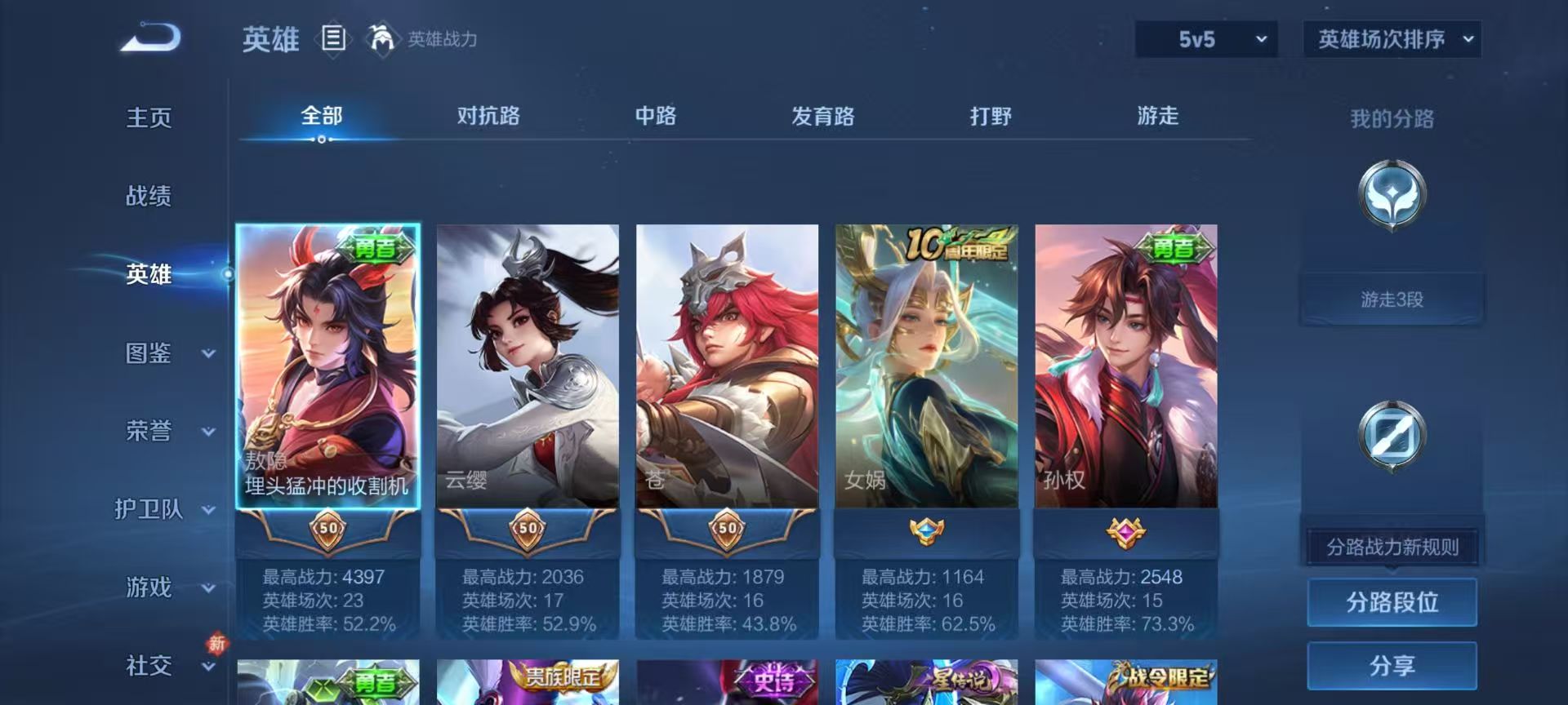 【8,稀有英雄】敖隐,不知火舞,橘右京,夏洛特,娜可露露,韩信,艾琳,赵云,