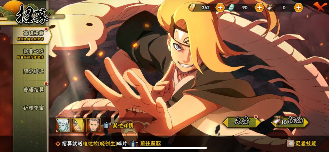 【A忍者】,大野木「侠隐江湖」,迈特凯「青春爆炸」,蝎「绯流琥」,宇智波泉奈,角都「秽土转生」,宇智波带土「暴怒」,千代「近松十人卫」,我爱罗「忍界大战」,照美冥「五代目水影」,飞段,迪达拉,干柿鬼鲛,宇智波鼬,猿飞阿斯玛,迈特凯,