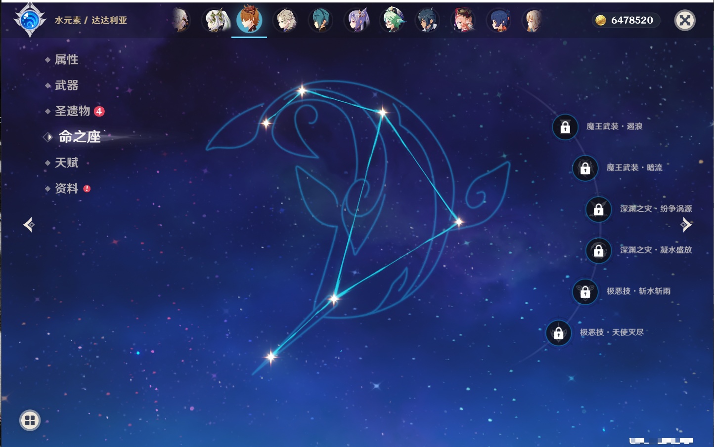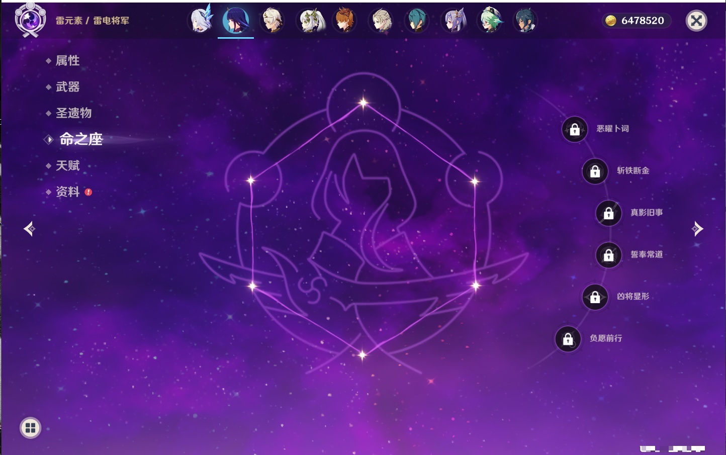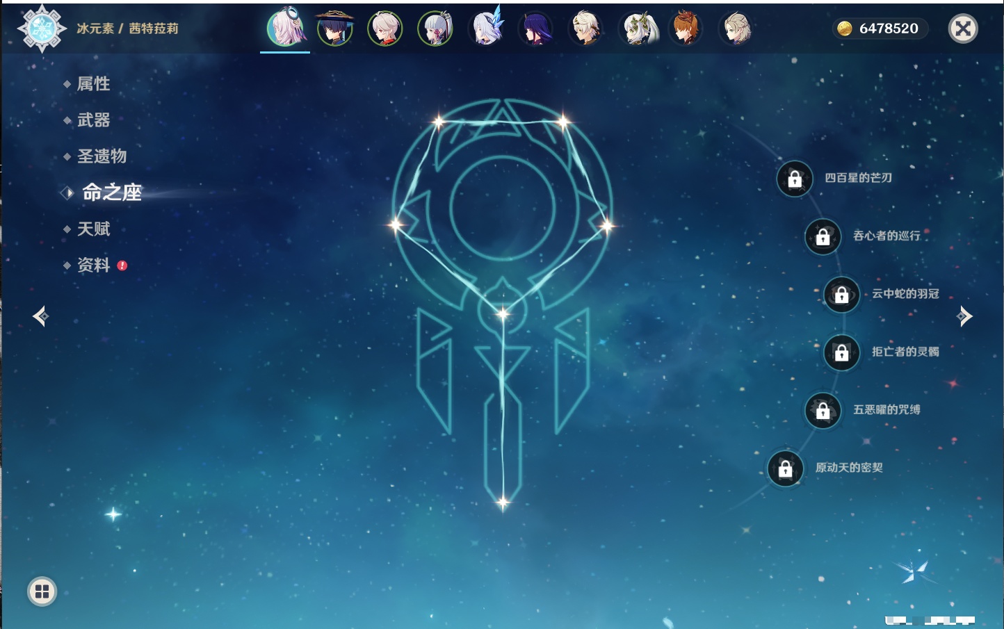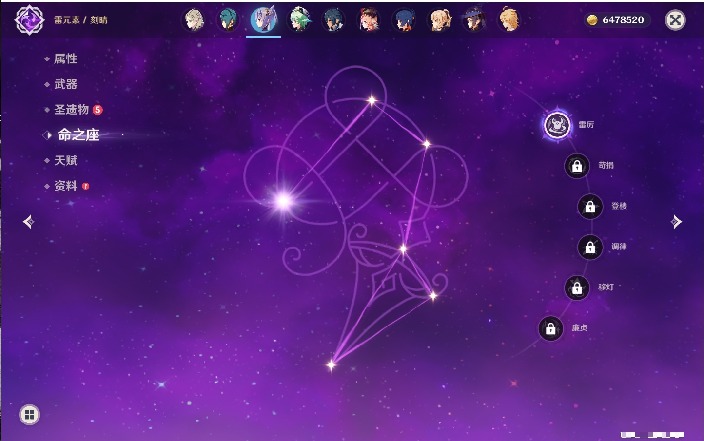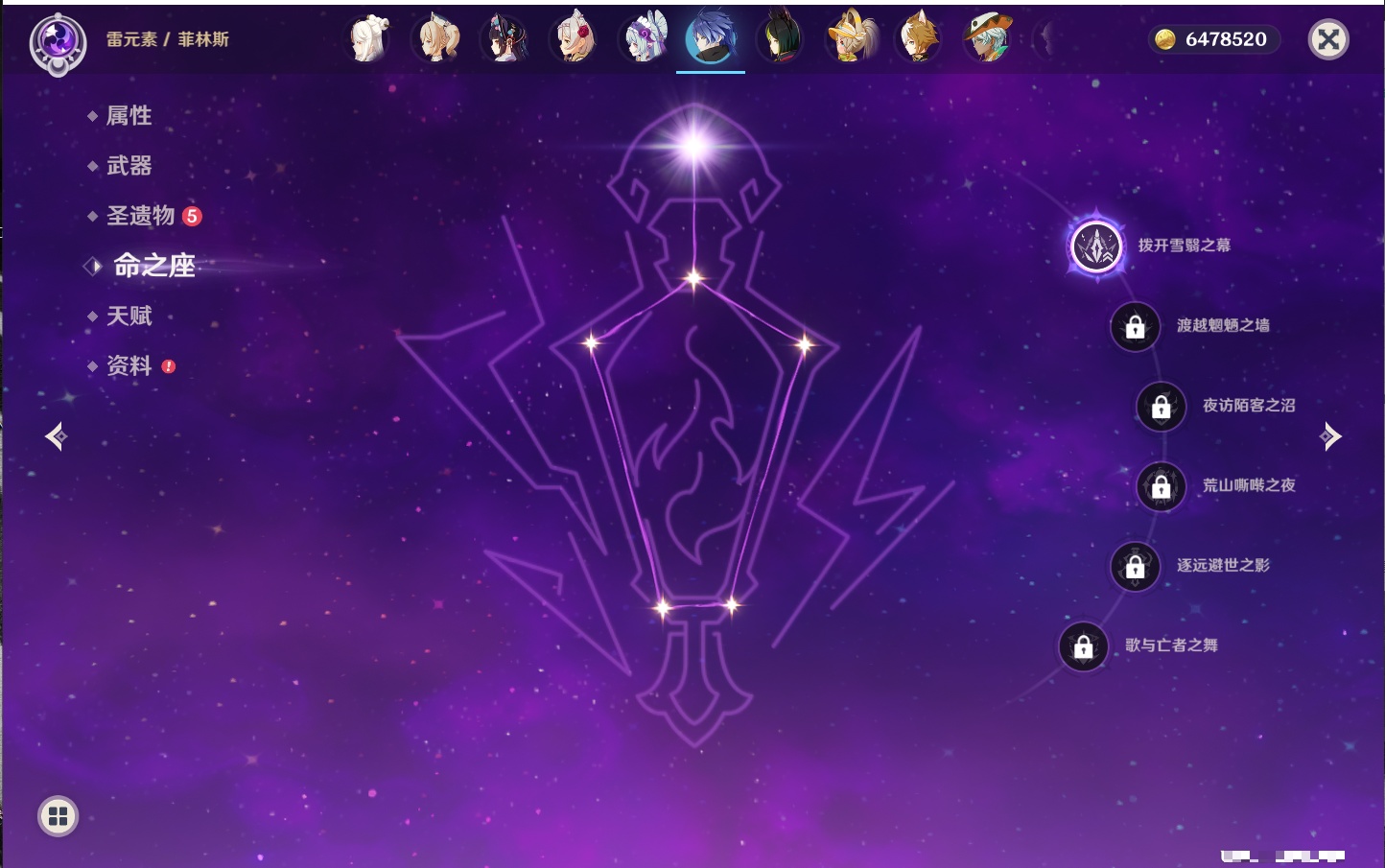 【16个五星角色】,1命提纳里,1命刻晴,1命莫娜,1命菲林斯,0命那维莱特,0命流浪者,0命纳西妲,0命雷电将军,0命枫原万叶,0命神里绫华,0命达达利亚,0命阿贝多,0命琴,0命丝柯克,0命梦见月瑞希,0命茜特菈莉,