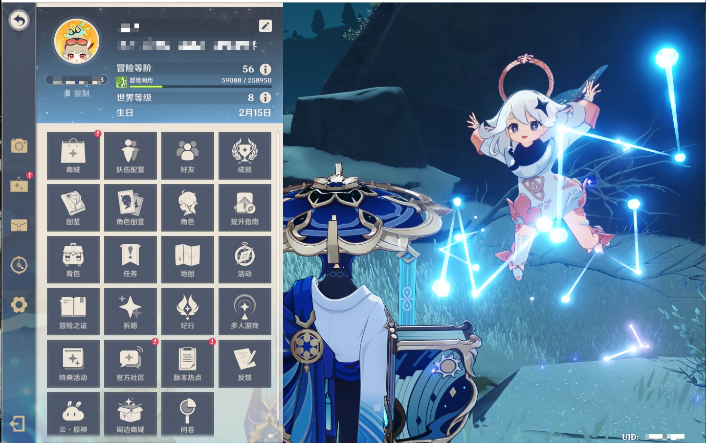 PX_2532687-,送已实名邮箱,,冒险等级56级,男主,22黄,16个五星角色,2个五星武器,纠缠之源0--原石20--圣遗物466--【时装】,炽绘奇旅,