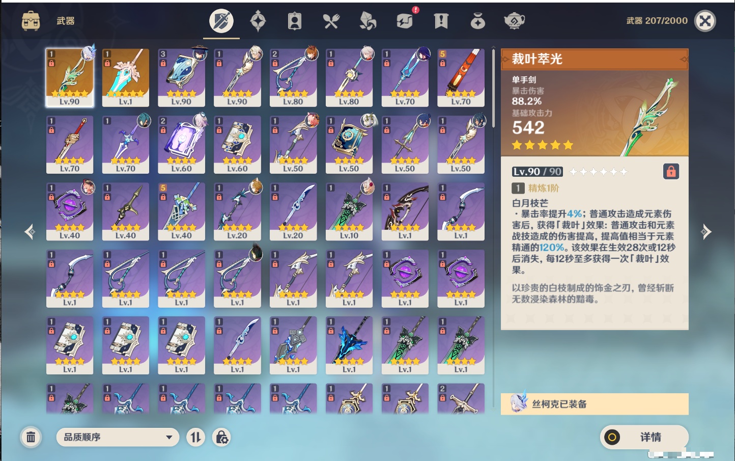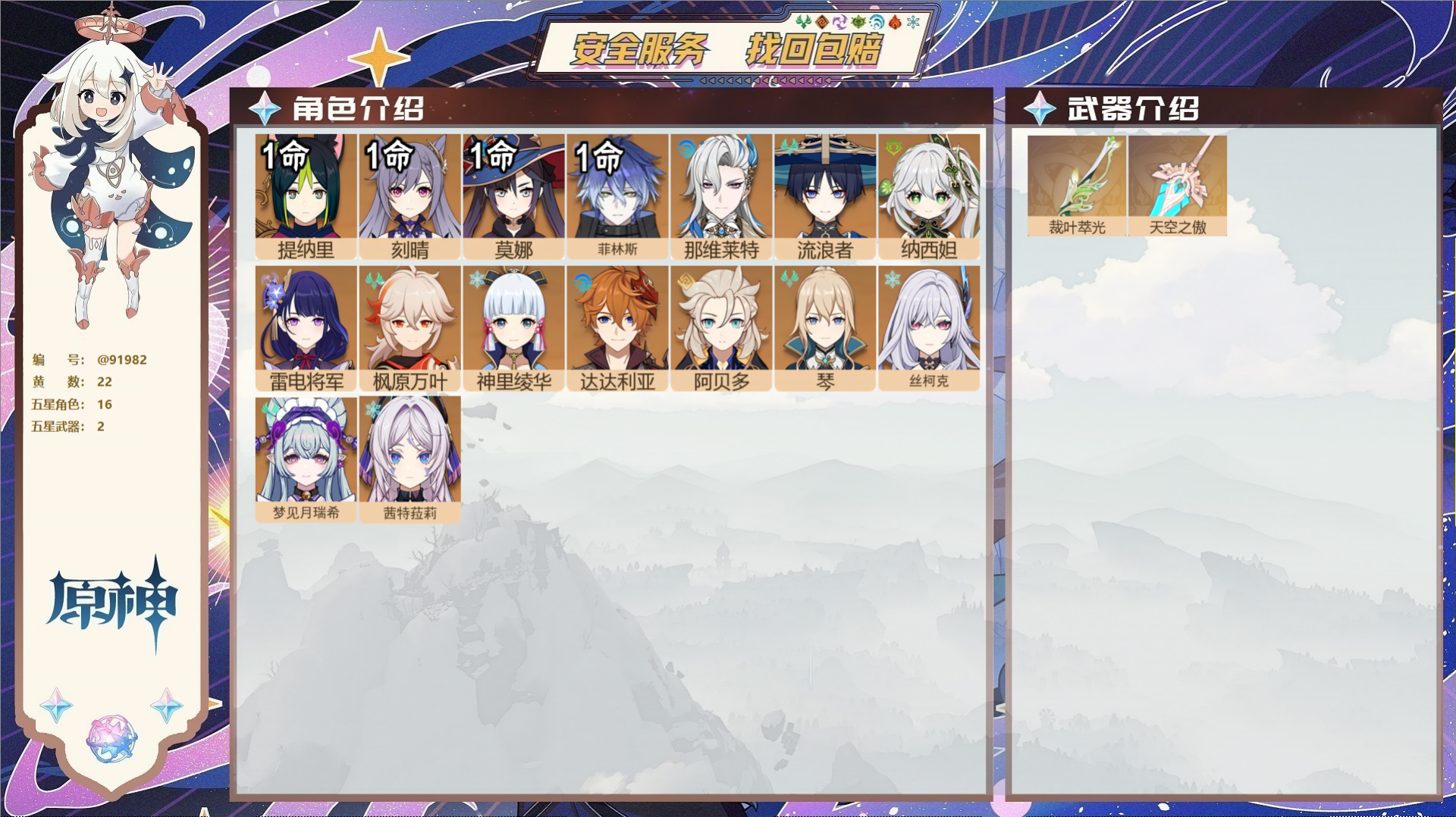 【2个五星武器】,精1裁叶萃光,精1天空之傲,