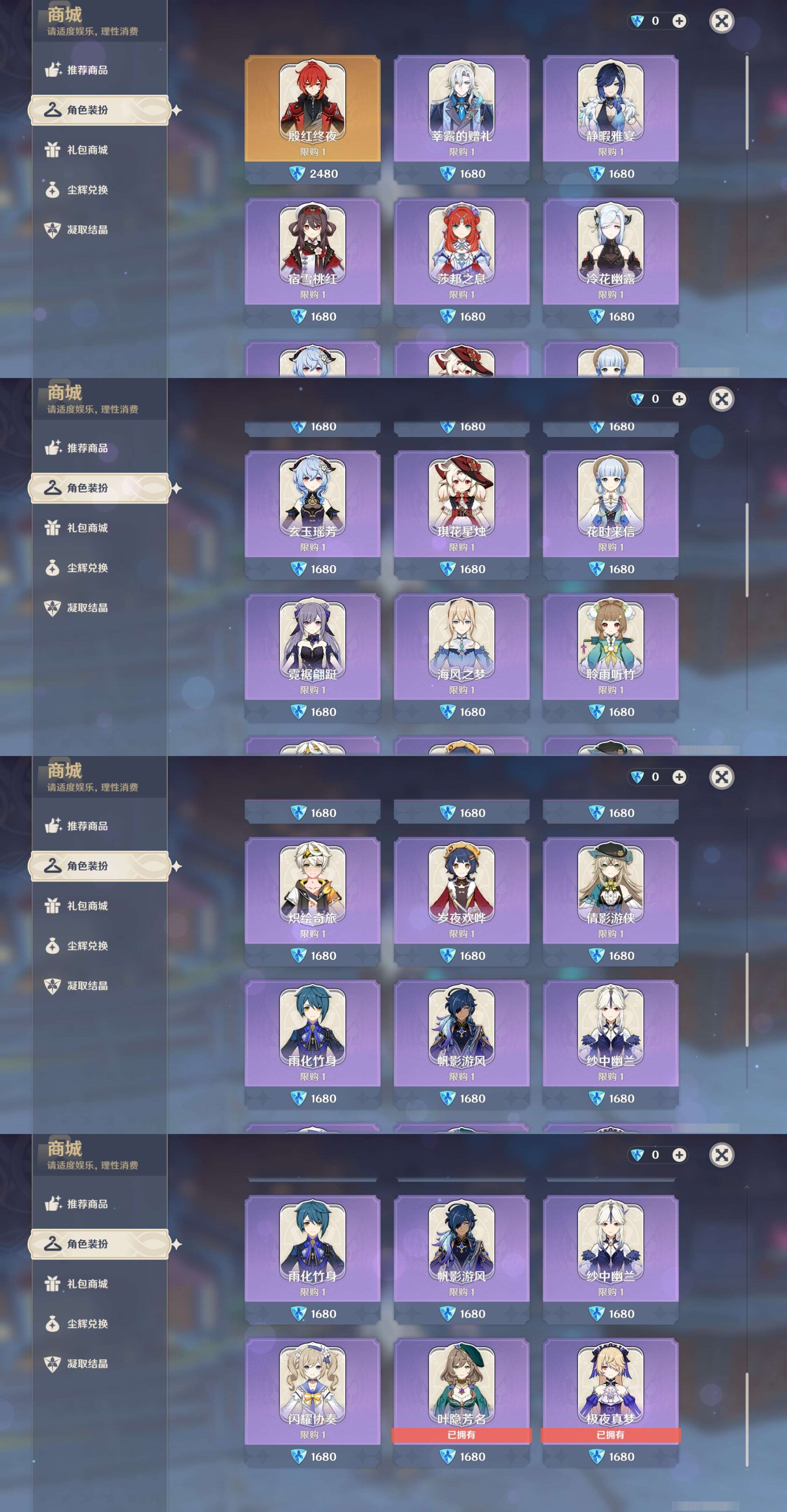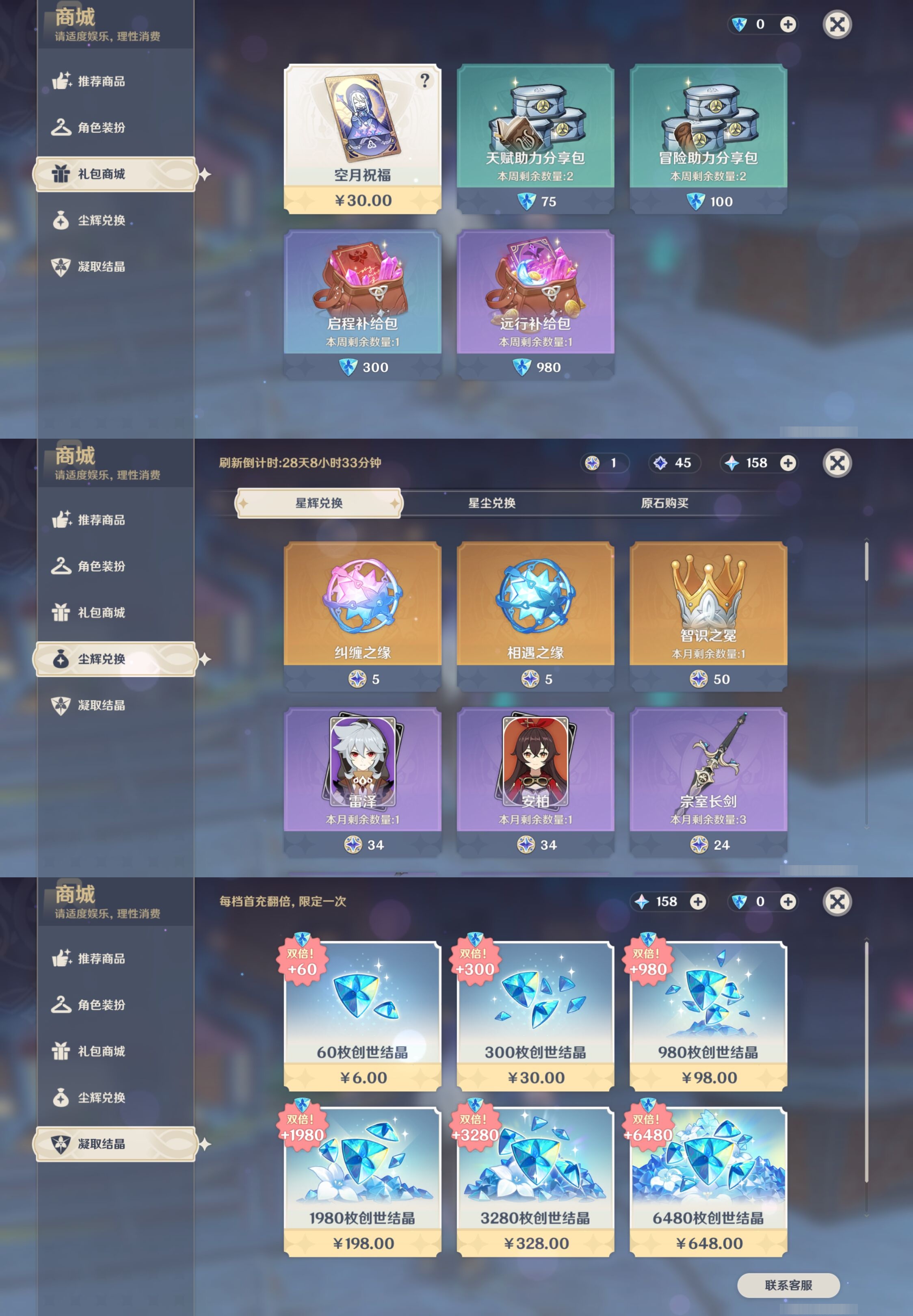 PX_2545070-,邮箱不出售,,冒险等级57级,男主,20黄,14个五星角色,4个五星武器,纠缠之源0--原石158--圣遗物888--【时装】,极夜真梦,叶隐芳名,