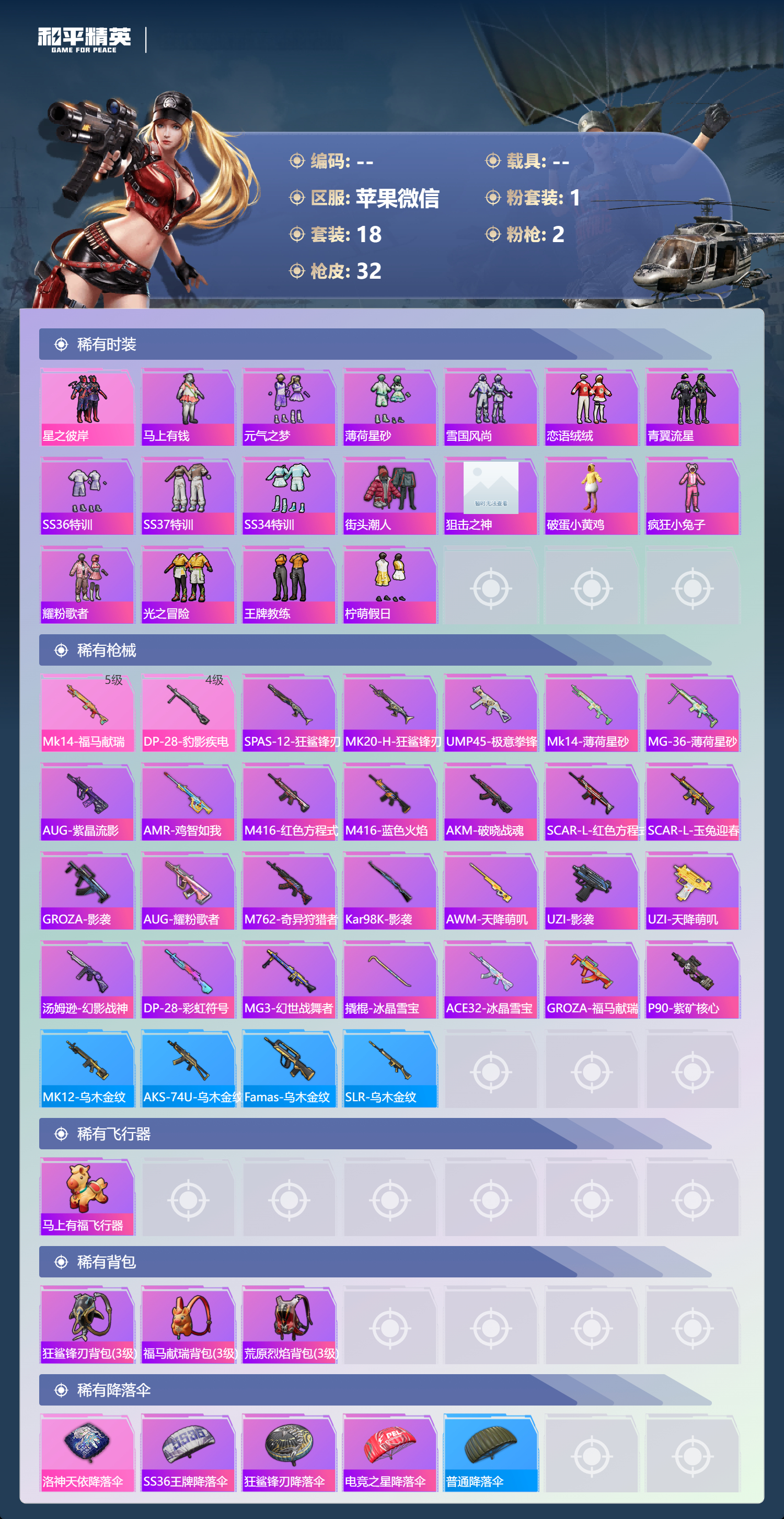 PX_2546407-,苹果微信-1王牌印记-1粉装-2特效枪-7996热力值-18套装-32枪皮