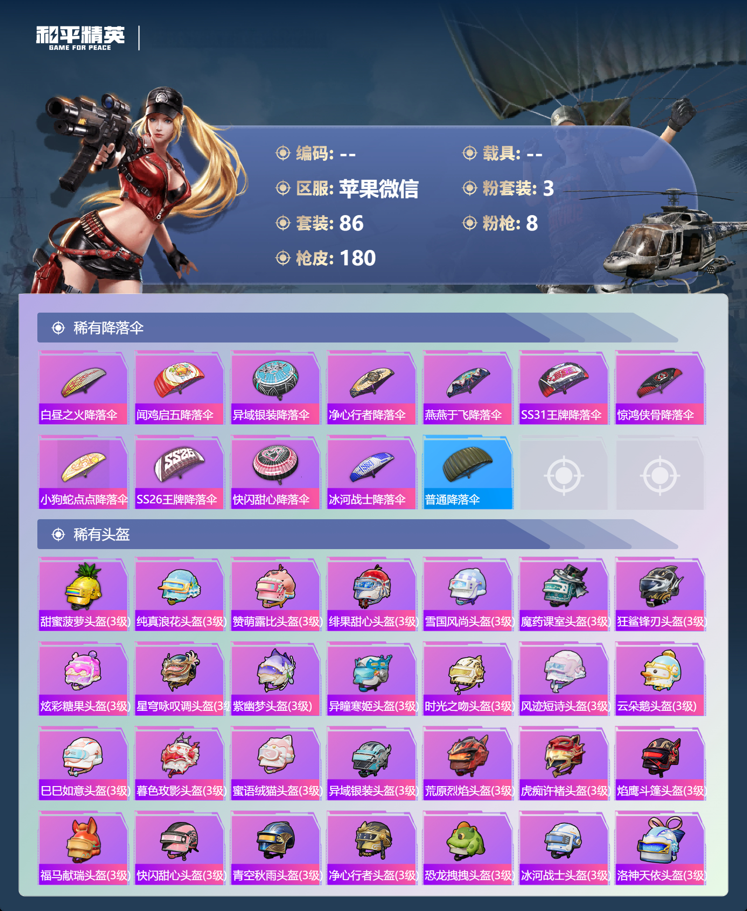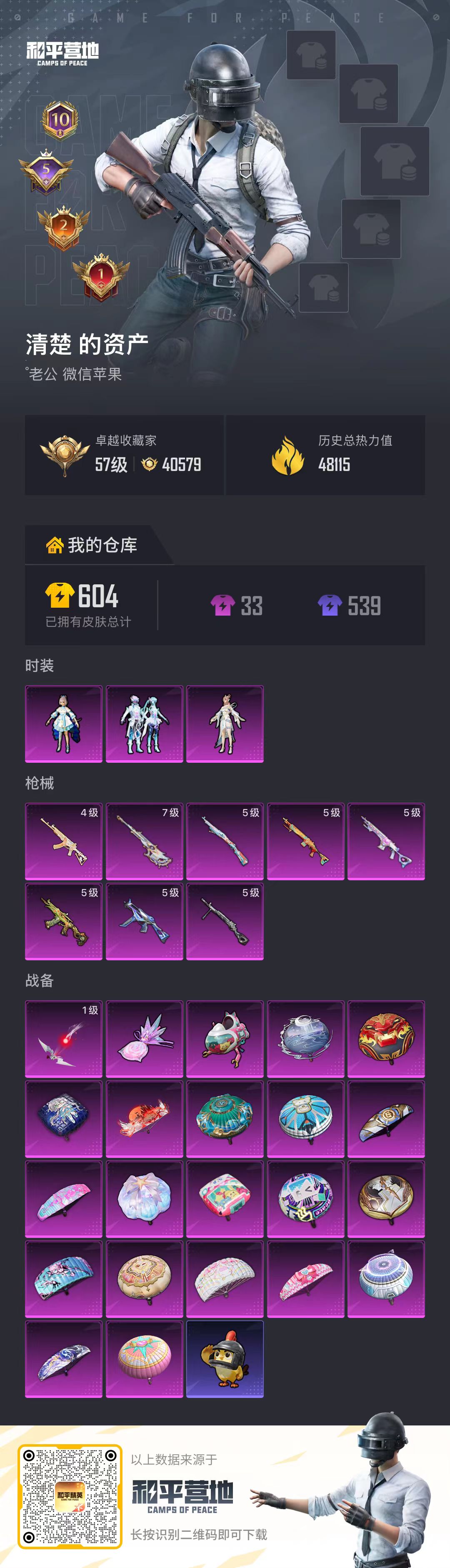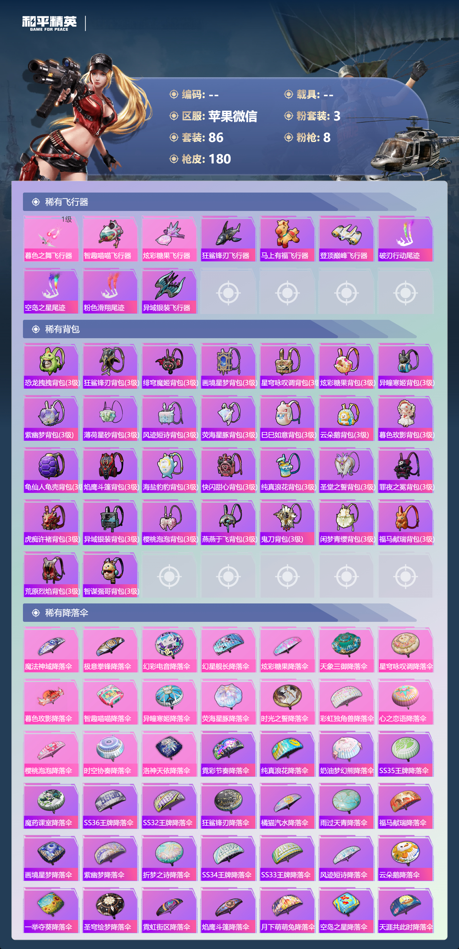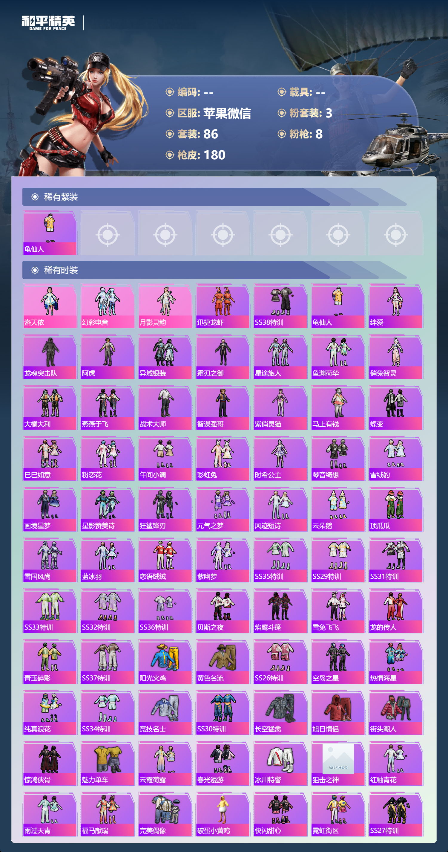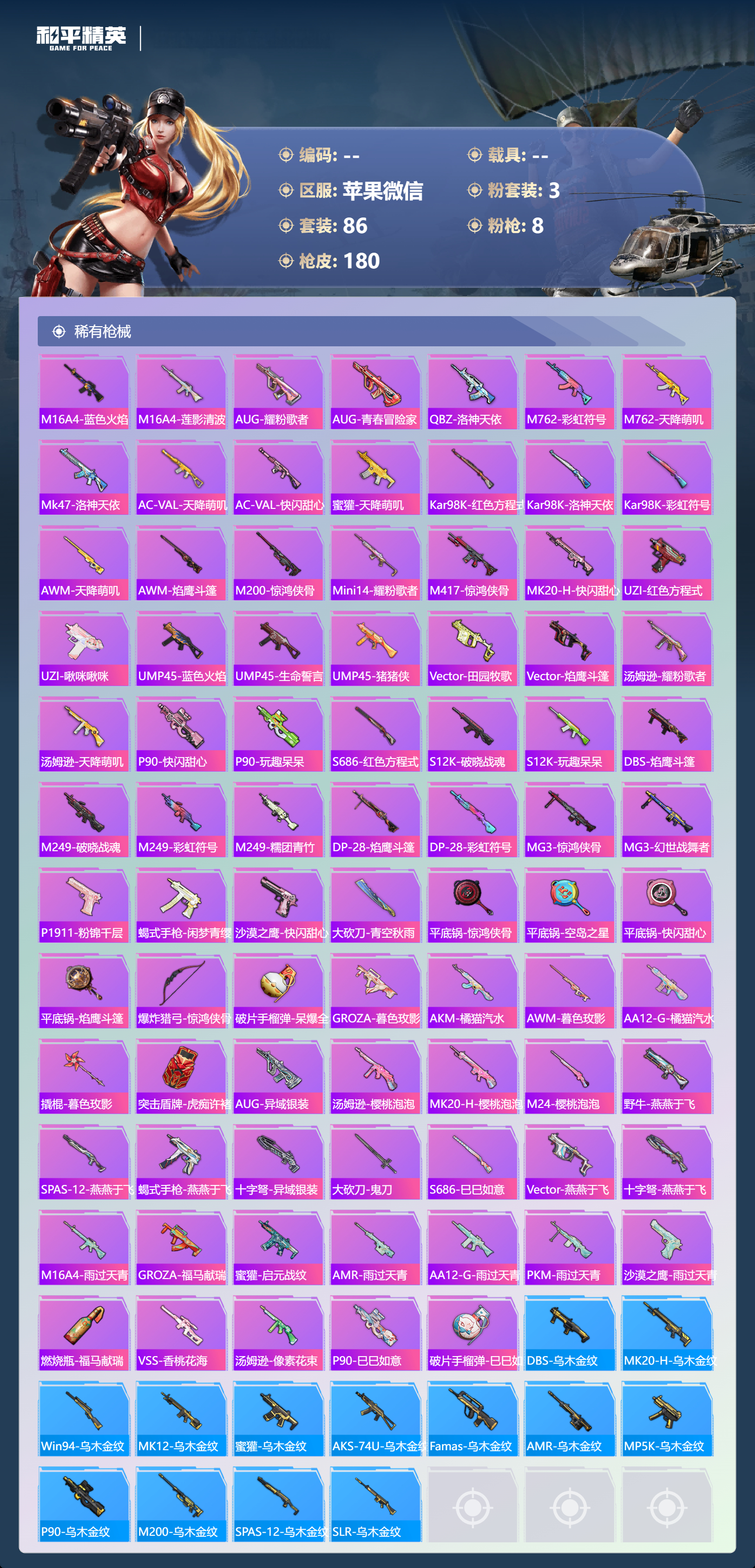 PX_2546459-,苹果微信-10王牌印记-3粉装-8特效枪-48881热力值-86套装-180枪皮-5卓越印记-2传奇印记