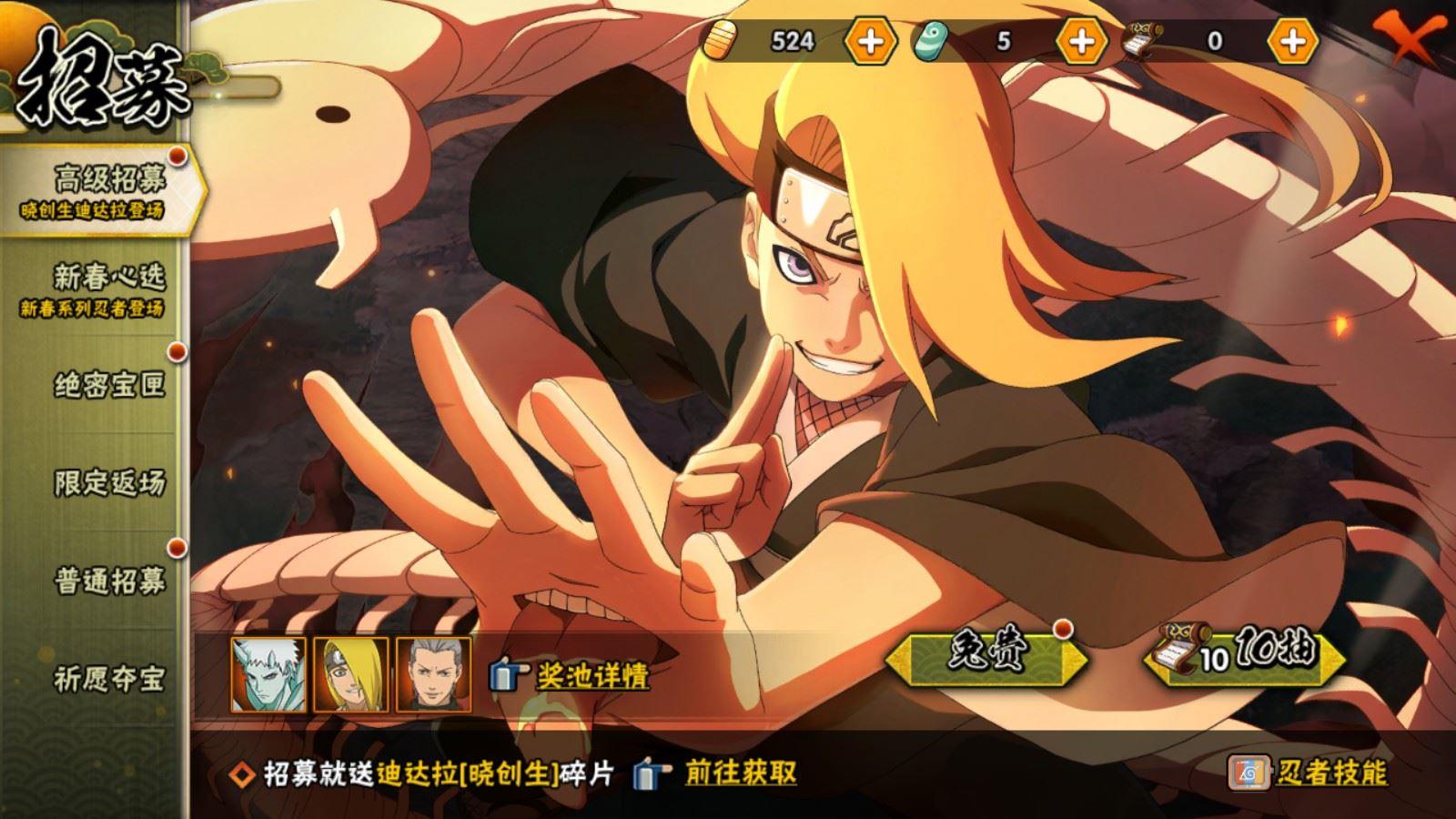 【A忍者】,小南「神驹佑将」,旗木卡卡西「神威对决」,机械鸣人「初始形态」,巳月「仙人模式」,迈特凯「青春爆炸」,长十郎「六代目水影」,不缘,日向宁次「忍界大战」,漩涡博人「桃式显现」,日向雏田「最终章」,宇智波泉奈,长门「青年」,艾「青年」,达鲁伊「五代目雷影」,神秘面具男「忍者之路」,波风水门「青年」,奇拉比「忍界大战」,黑土「四代目土影」,宇智波佐助「须佐能乎」,漩涡鸣人「九尾查克拉」,千代「近松十人卫」,我爱罗「忍界大战」,秋道丁次「忍界大战」,照美冥「五代目水影」,猿飞日斩「火影继承人」,宇智波佐助「万花筒写轮眼」,漩涡鸣人「仙人模式」,飞段「死司凭血」,飞段,迪达拉,我爱罗「疾风传」,蝎,干柿鬼鲛,猿飞阿斯玛,迈特凯,