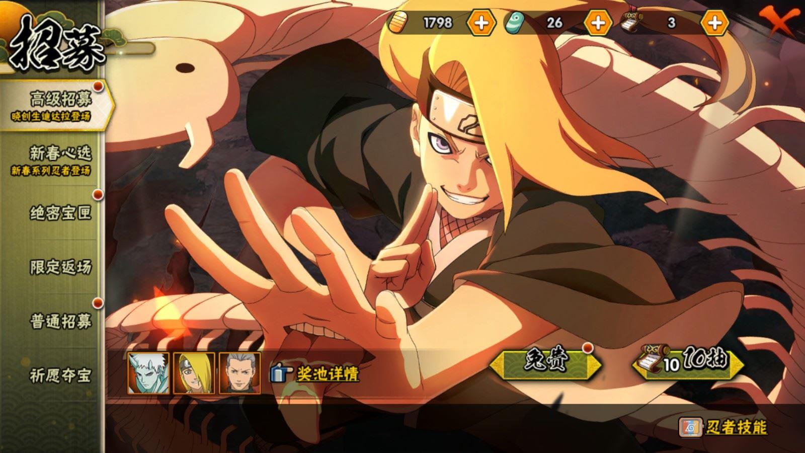 【A忍者】,小南「神驹佑将」,旗木卡卡西「神威对决」,机械鸣人「初始形态」,巳月「仙人模式」,迈特凯「青春爆炸」,土台「忍界大战」,不缘,漩涡博人「桃式显现」,日向雏田「最终章」,旗木卡卡西「幻之真容」,李洛克「忍界大战」,不动,宇智波泉奈,神农「羁绊」,神秘面具男「忍者之路」,宇智波佐助「须佐能乎」,迪达拉「秽土转生」,千代「近松十人卫」,药师兜「半蛇斗篷」,秋道丁次「忍界大战」,春野樱「百豪」,飞段「死司凭血」,飞段,迪达拉,我爱罗「疾风传」,蝎,干柿鬼鲛,宇智波鼬,猿飞阿斯玛,迈特凯,桃地再不斩,