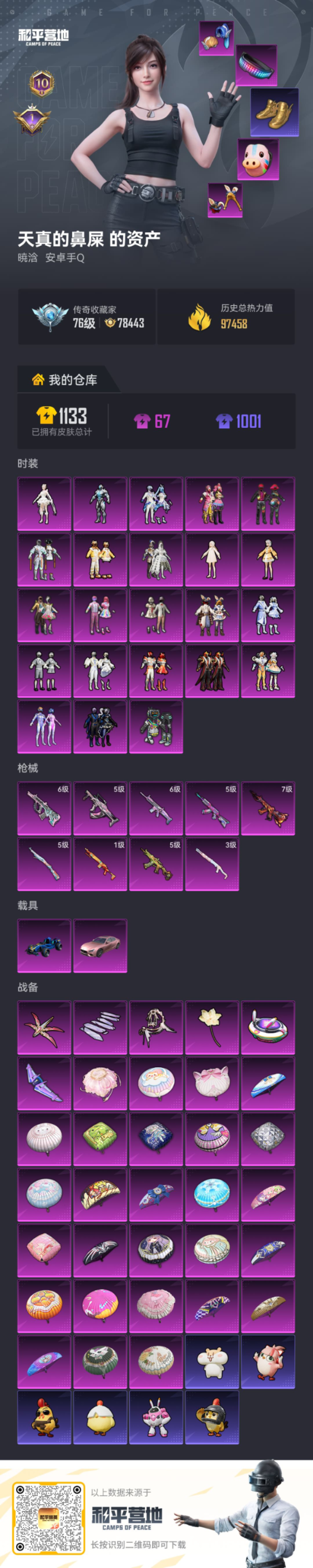 PX_2548354-2载具-240套装-269枪皮-5稀有2载具23粉装9特效枪24热门240套装269枪皮,97458热力值,10印记,历史卓越王牌13星,【5稀有】,奇异狩猎者,AKM-百万伏特,浪漫天命,派对舞王,派对舞王(金靴子),【2载具】,玛莎拉蒂粉色,合金龙骨蓝色,【23粉装】,梦幻火箭,蝶舞迷情,宝贝奶油派,天使彩虹糖,千金淑猫,未来歌姬,冰炎战车,白勺歌姬,呆萌星弥,智能音符,缤纷油彩,放客神游,快乐主宰,幻梦音符,童趣迷兔,冰霜白皇,暖熊萌萌,霁雪冰心,霞光圣骑,炙焰牛王,岚岚物语,暗夜玫瑰,寒光使者,【10特效枪】,SCAR-L-梦幻火箭,(6级),AKM-炫紫旋律,(5级),AKS-74U-森灵之息,(5级),Kar98K-巳巳如意,(5级),SPAS-12-蜜语绒猫,(3级),AUG-超新星,(6级),GROZA-镜光银凌,(5级),M416-风花雪月,(7级),AKS-74U-森灵之息,(5级),Mk14-福马献瑞,(1级),【24热门】,龟仙人,青涩年华,幸运萌趣趣,雪山精英,晶辉守护,糯粉咩咩,鹰眼刺客,奶芙汪汪,深海小丑鱼,醒狮腾龙,团圆交子,瑞龙福将,粉红小猪,狂沙舞者,漫步者,梦之呓语,军刀雅典娜,AKM-奇异狩猎者,M762-奇异狩猎者,M762-瑞龙福将,M24-奇异狩猎者,M249-古堡领主,S686-奇异狩猎者,Vector-风花雪月,【2飞行器】,梦幻火箭飞行器,太空嘟嘟飞行器,【4头盔】,童趣迷兔头盔,梦幻火箭头盔,金曜白虎头盔,甜心宝贝头盔,【4背包】,精灵迷巫背包,梦幻火箭背包,深海曼妙背包,神秘黑猫背包,营地ID: