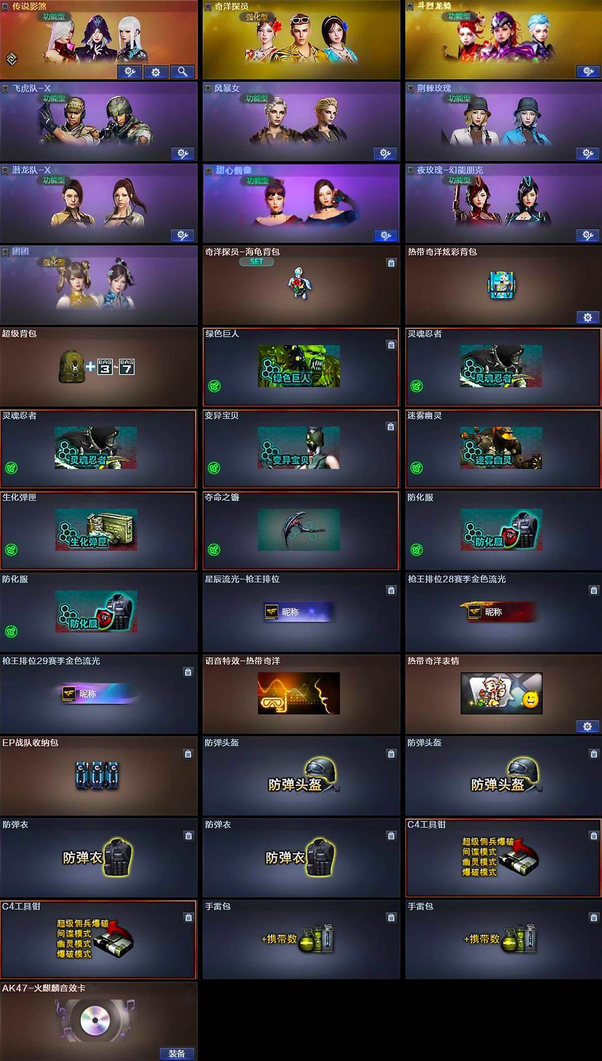 【角色】:奇洋探员,斗烈龙骑,飞虎队-X,风暴女,荆棘玫瑰,潜龙队-X,甜心偶像,兔囡囡,夜玫瑰-幻能朋克,团团