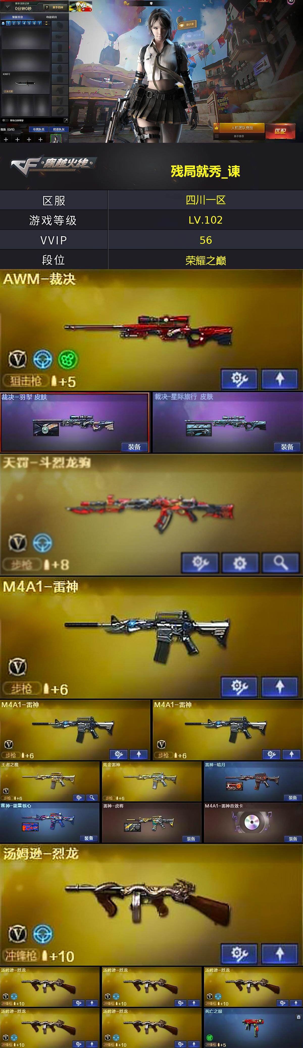 【热门武器】:M4A1-青龙,死亡之眼,Cat-刀锋,M4A1-黑骑士*2,汤姆逊-烈龙*6,沙鹰-修罗*6,金刚伞