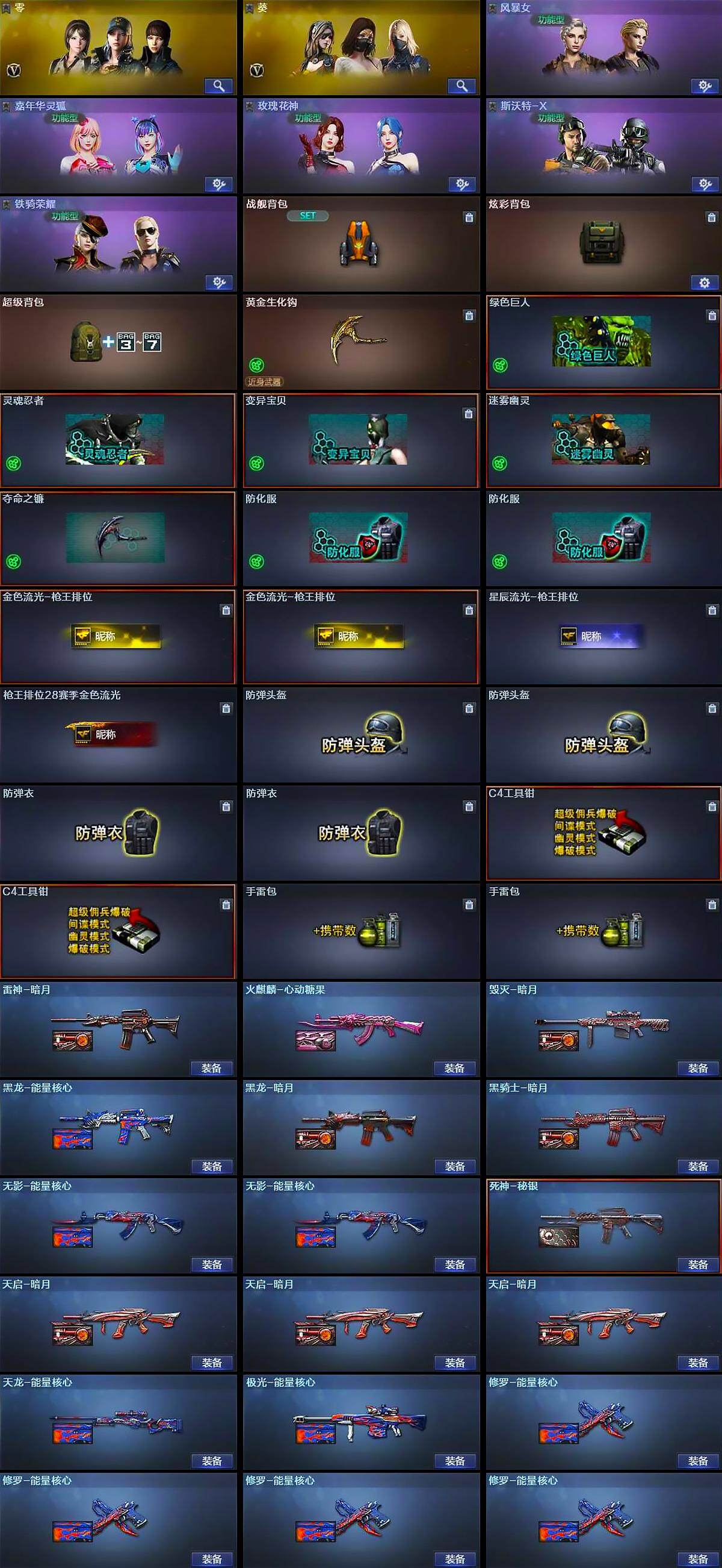 【皮肤】:雷神-暗月,火麒麟-心动糖果,毁灭-暗月,黑龙-能量核心,黑龙-暗月,黑骑士-暗月,无影-能量核心*2,死神-秘银,天启-暗月*3,天龙-能量核心,极光-能量核心,修罗-能