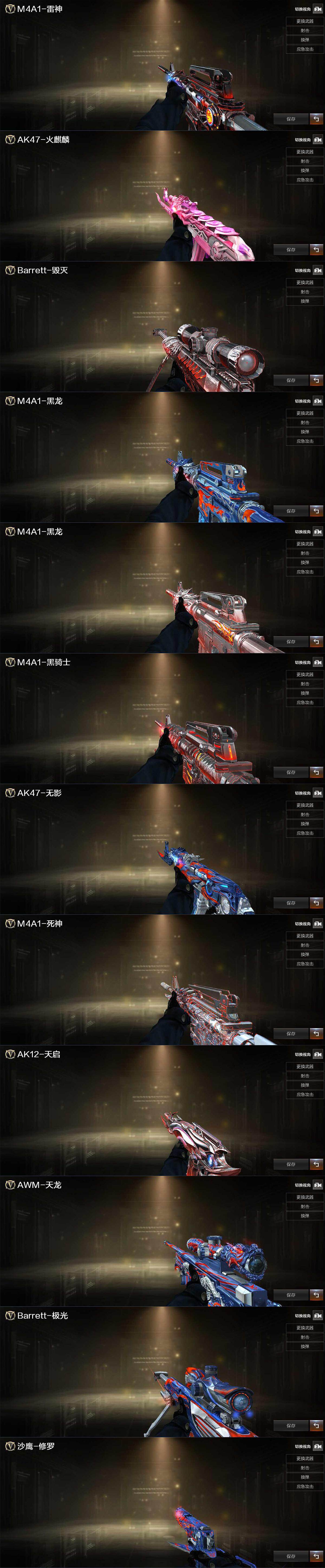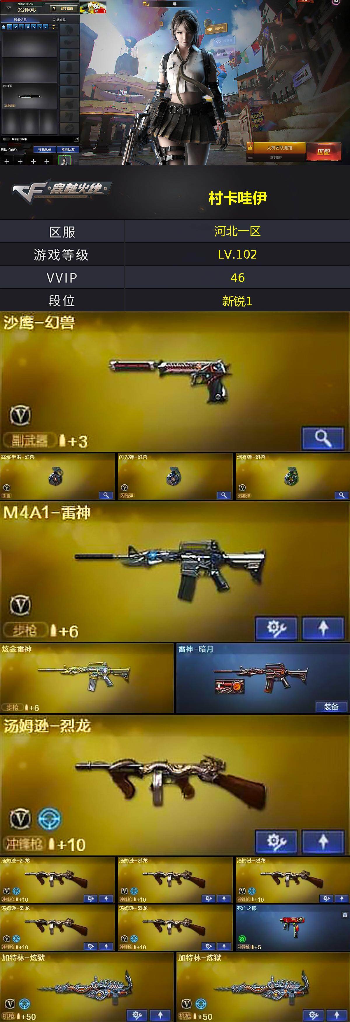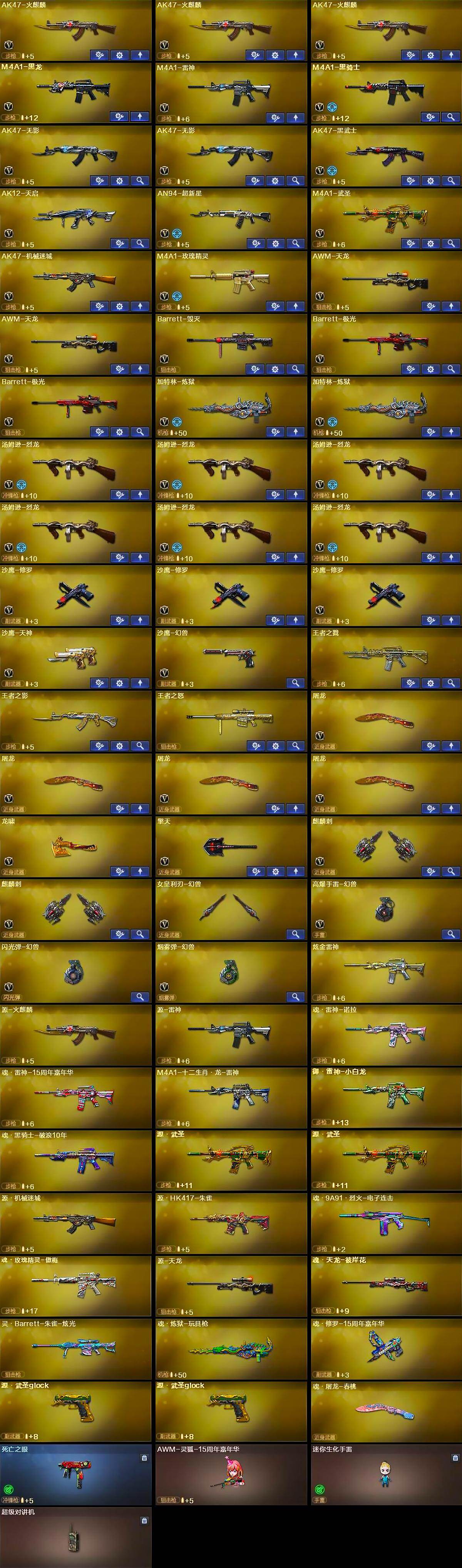 【热门武器】:死亡之眼,M4A1-黑骑士,汤姆逊-烈龙*6,加特林-炼狱*2,沙鹰-修罗*3,高爆手雷-幻兽