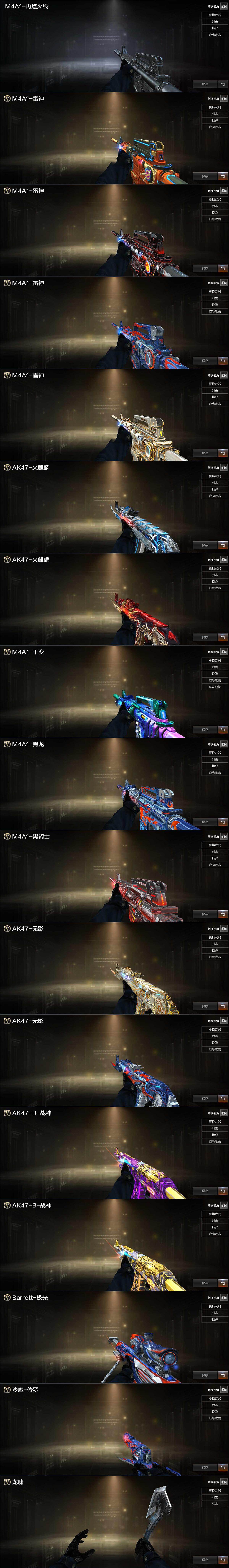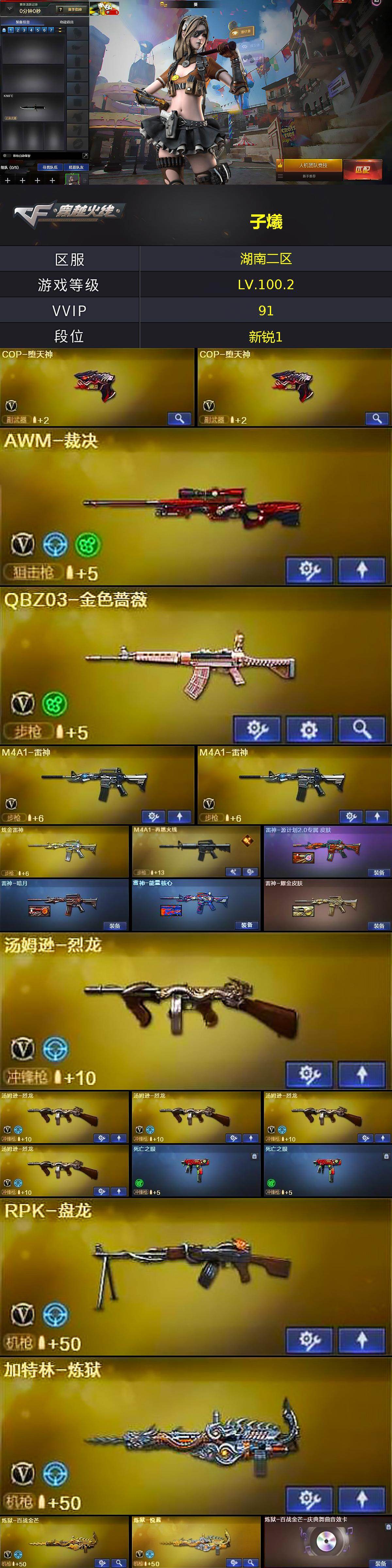 【热门武器】:QBZ03-金色蔷薇,死亡之眼*2,汤姆逊-烈龙*5,RPK-盘龙,加特林-炼狱,COP-堕天神*2,沙鹰-修罗*2