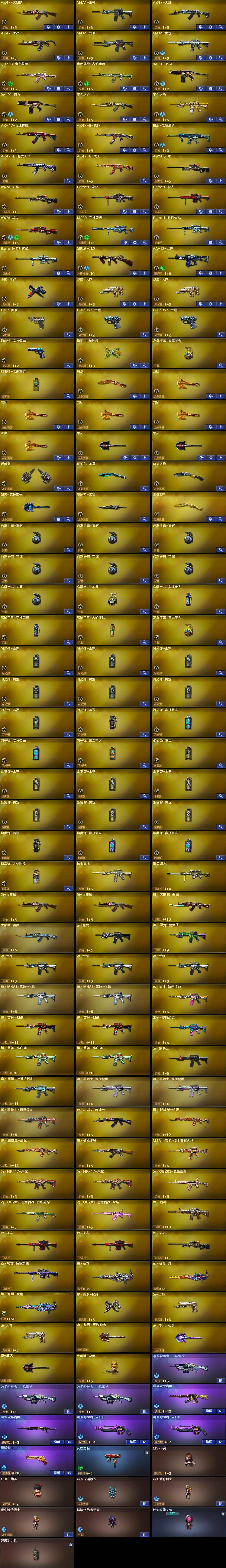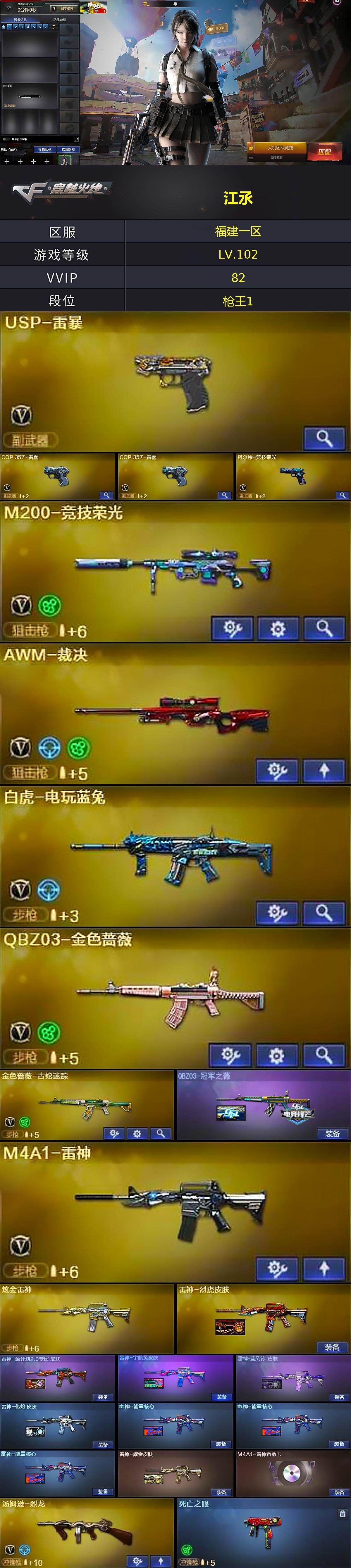 【热门武器】:QBZ03-金色蔷薇,金色蔷薇-古蛇迷踪,修罗-古蛇迷踪,M200-竞技荣光,死亡之眼,白虎-电玩蓝兔,金色小号,汤姆逊-烈龙,USP-雷暴,沙鹰-修罗