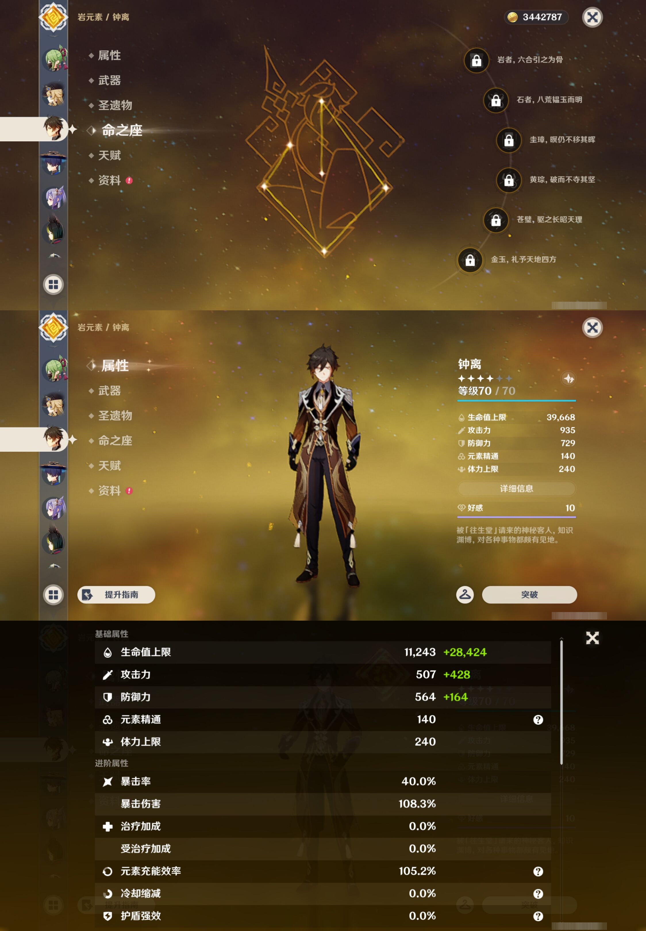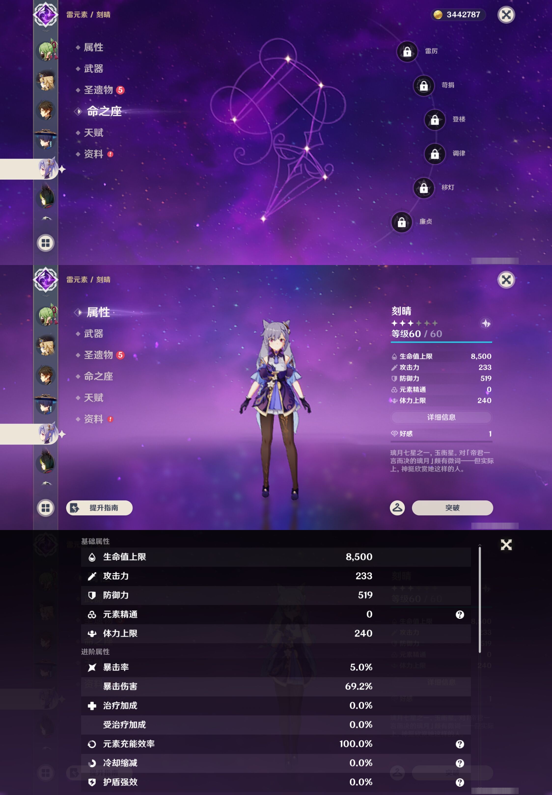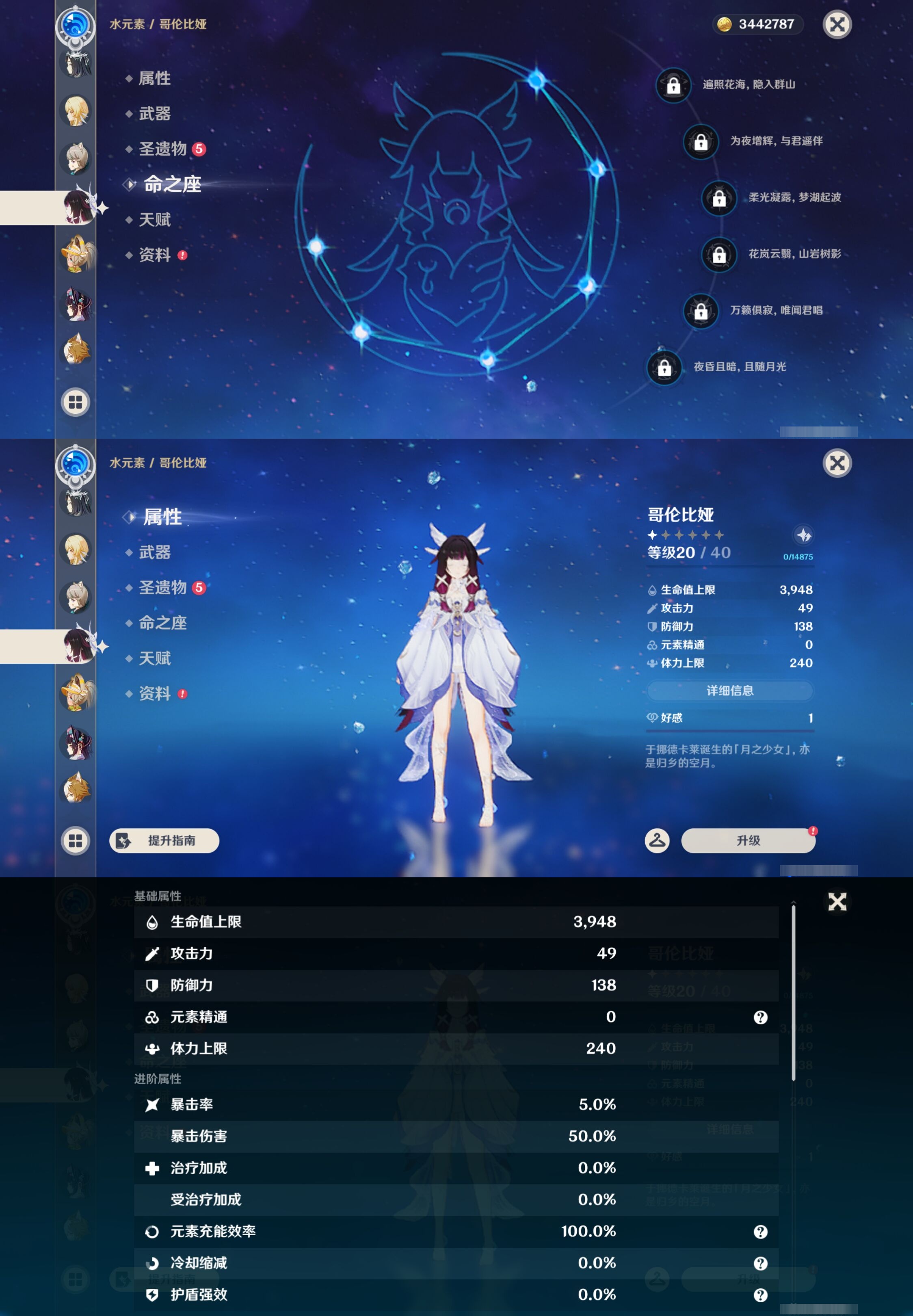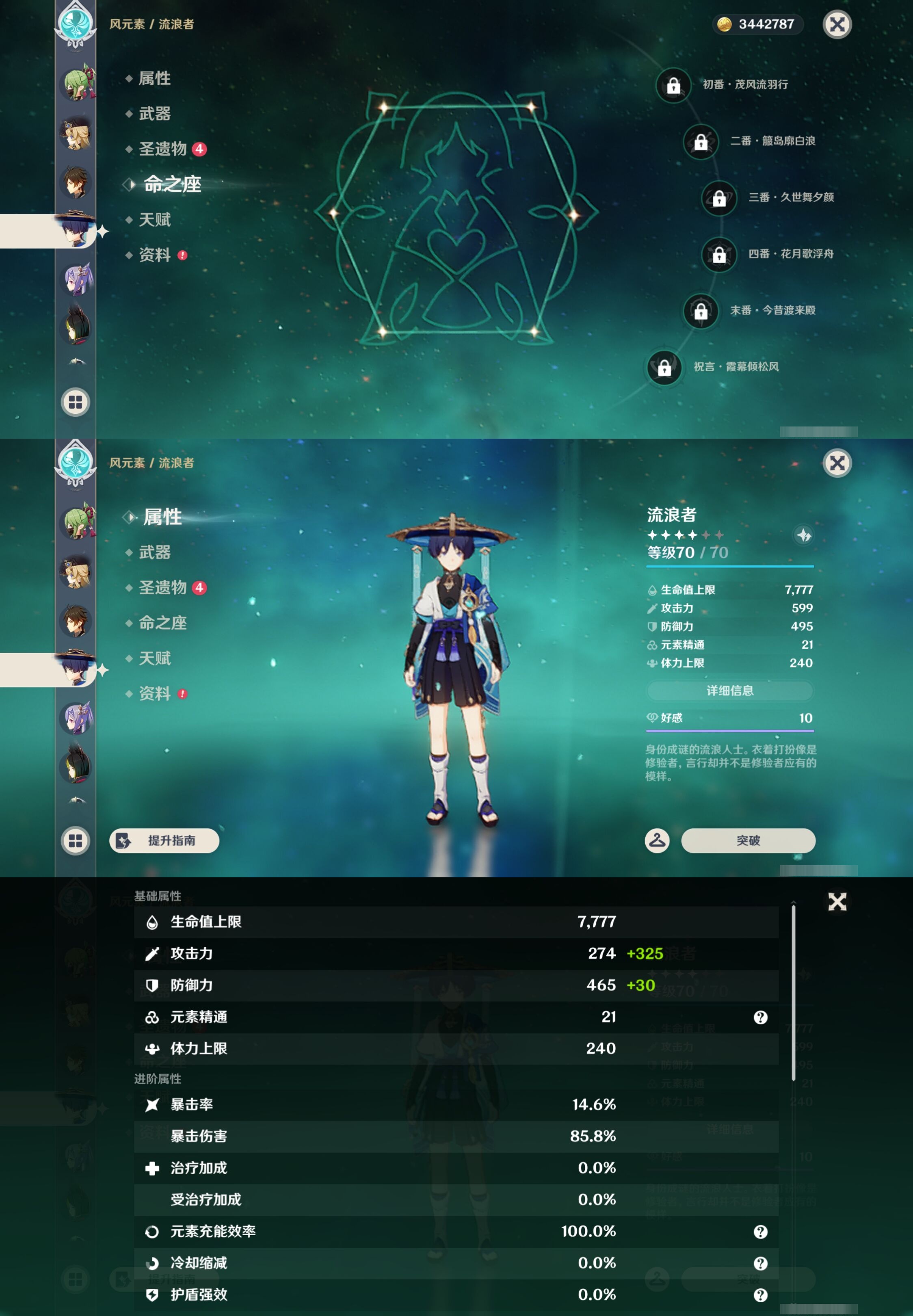 【13个五星角色】,2命阿蕾奇诺,1命纳西妲,1命提纳里,1命琴,1命迪卢克,0命希诺宁,0命茜特菈莉,0命那维莱特,0命娜维娅,0命钟离,0命流浪者,0命刻晴,0命哥伦比娅,