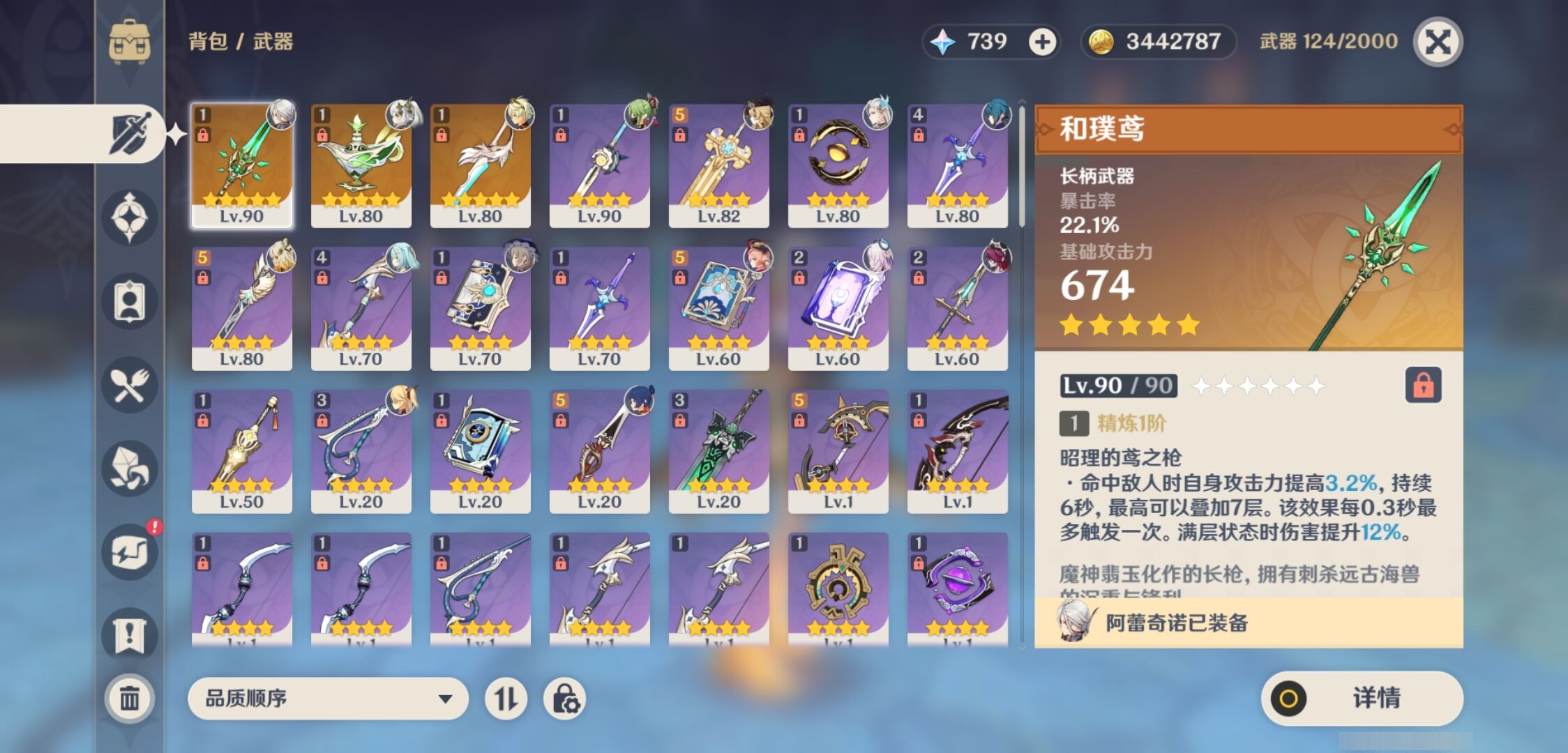 【3个五星武器】,精1和璞鸢,精1千夜浮梦,精1风鹰剑,2套,