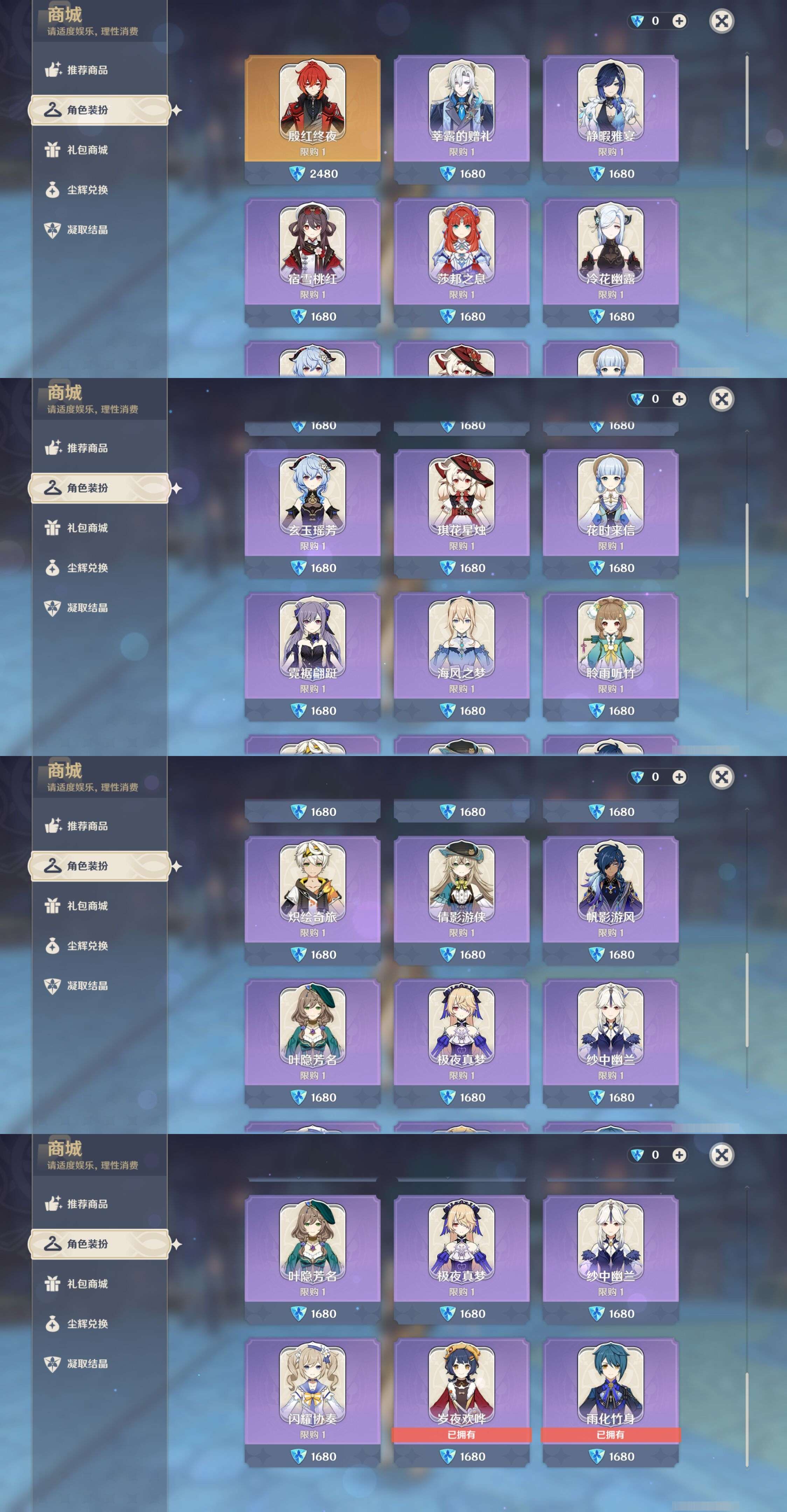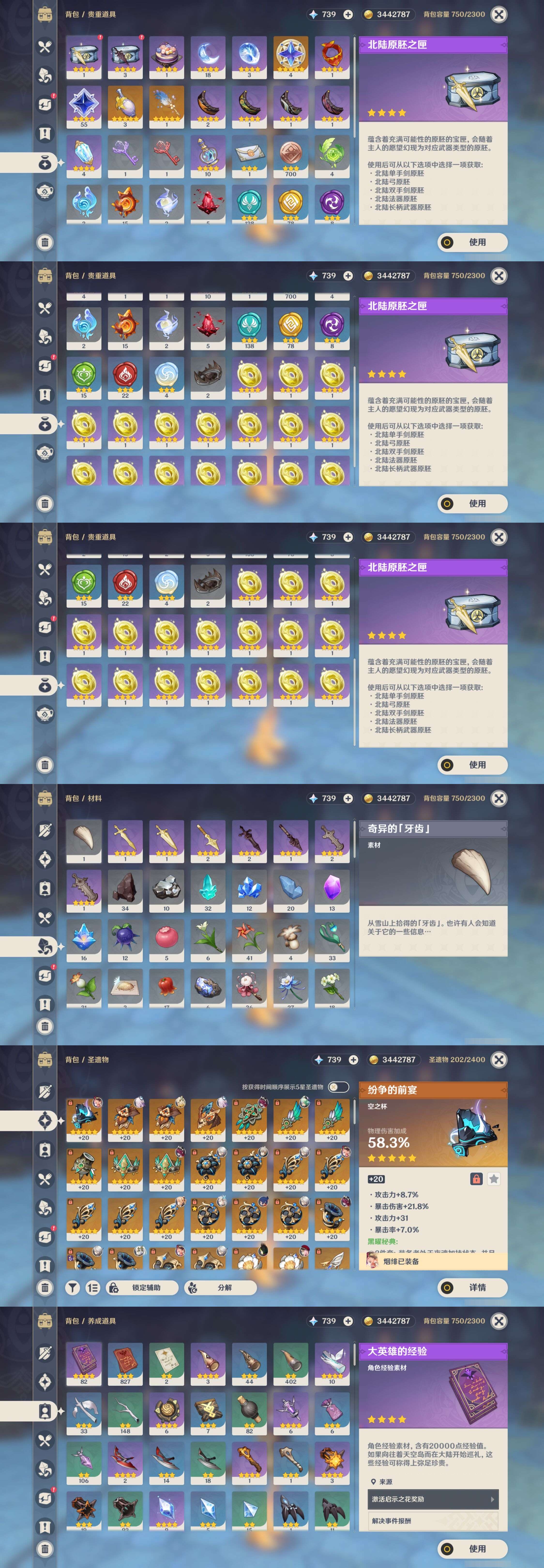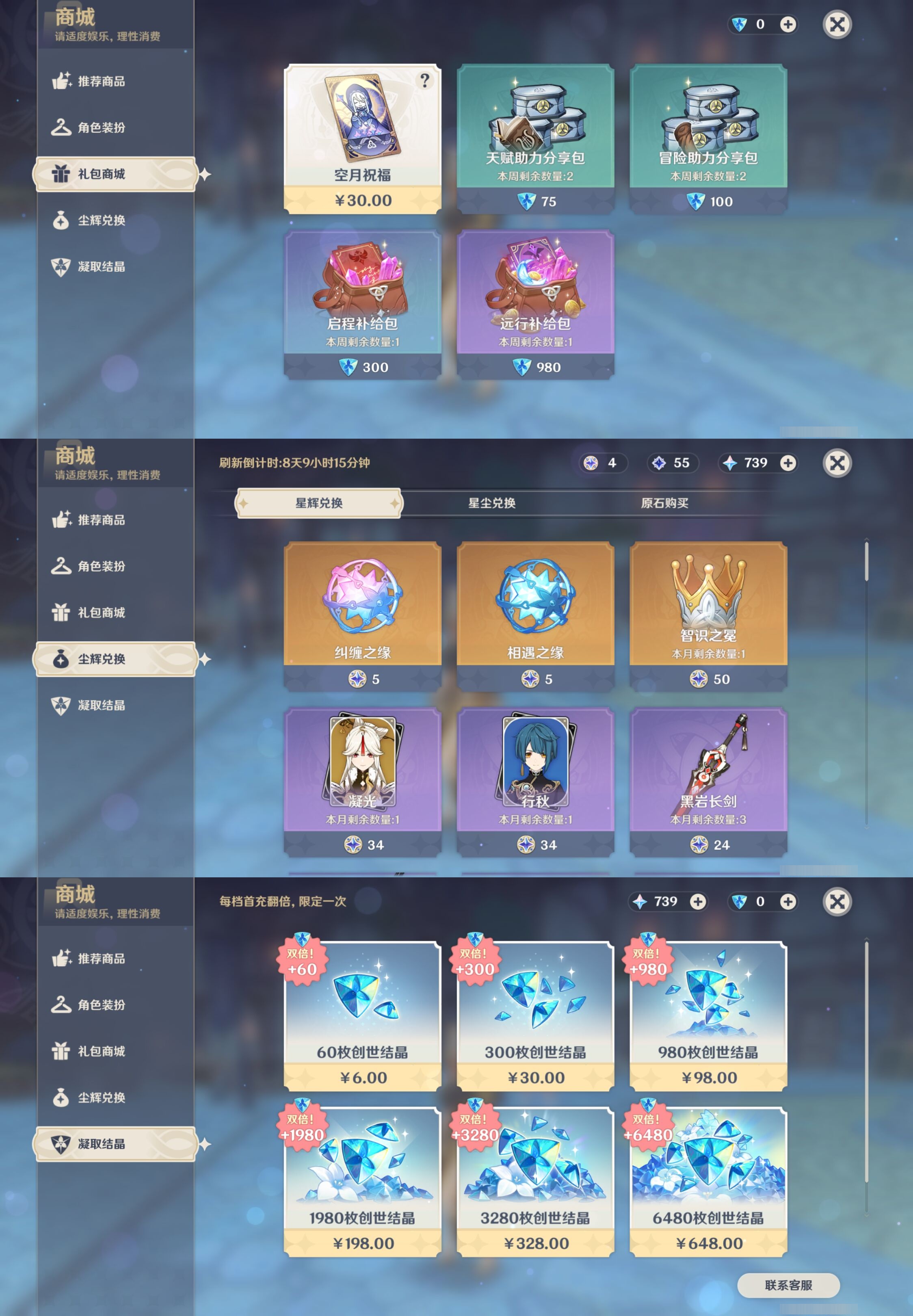 PX_2523899-,邮箱不出售,,冒险等级56级,女主,22黄,13个五星角色,3个五星武器,纠缠之源0--原石739--圣遗物202--【时装】,雨化竹身,岁夜欢哗,