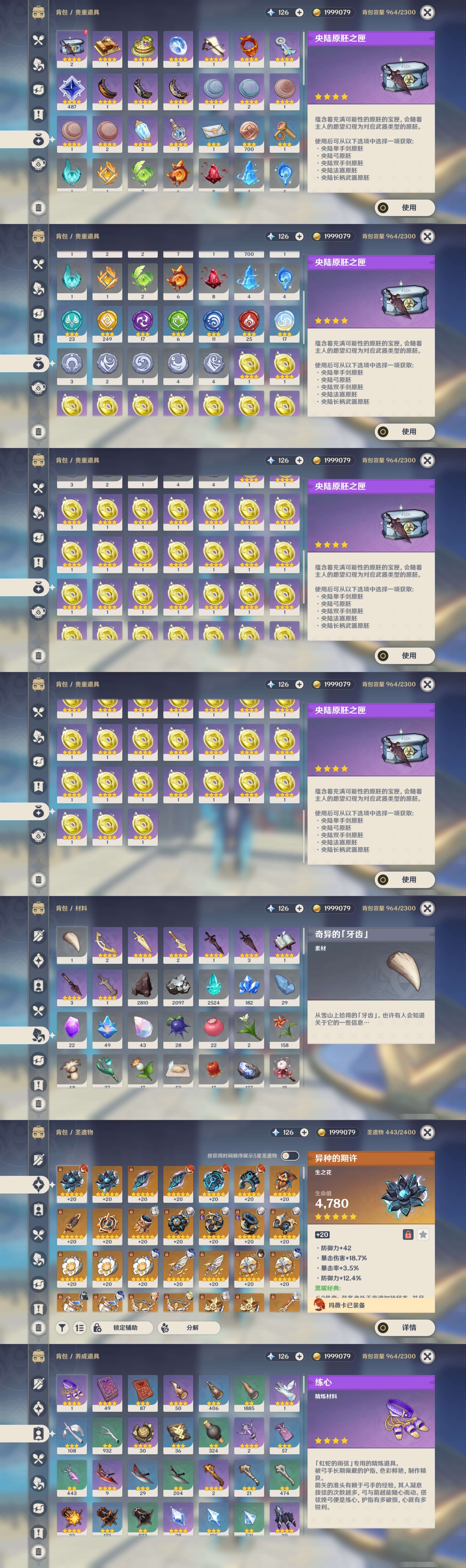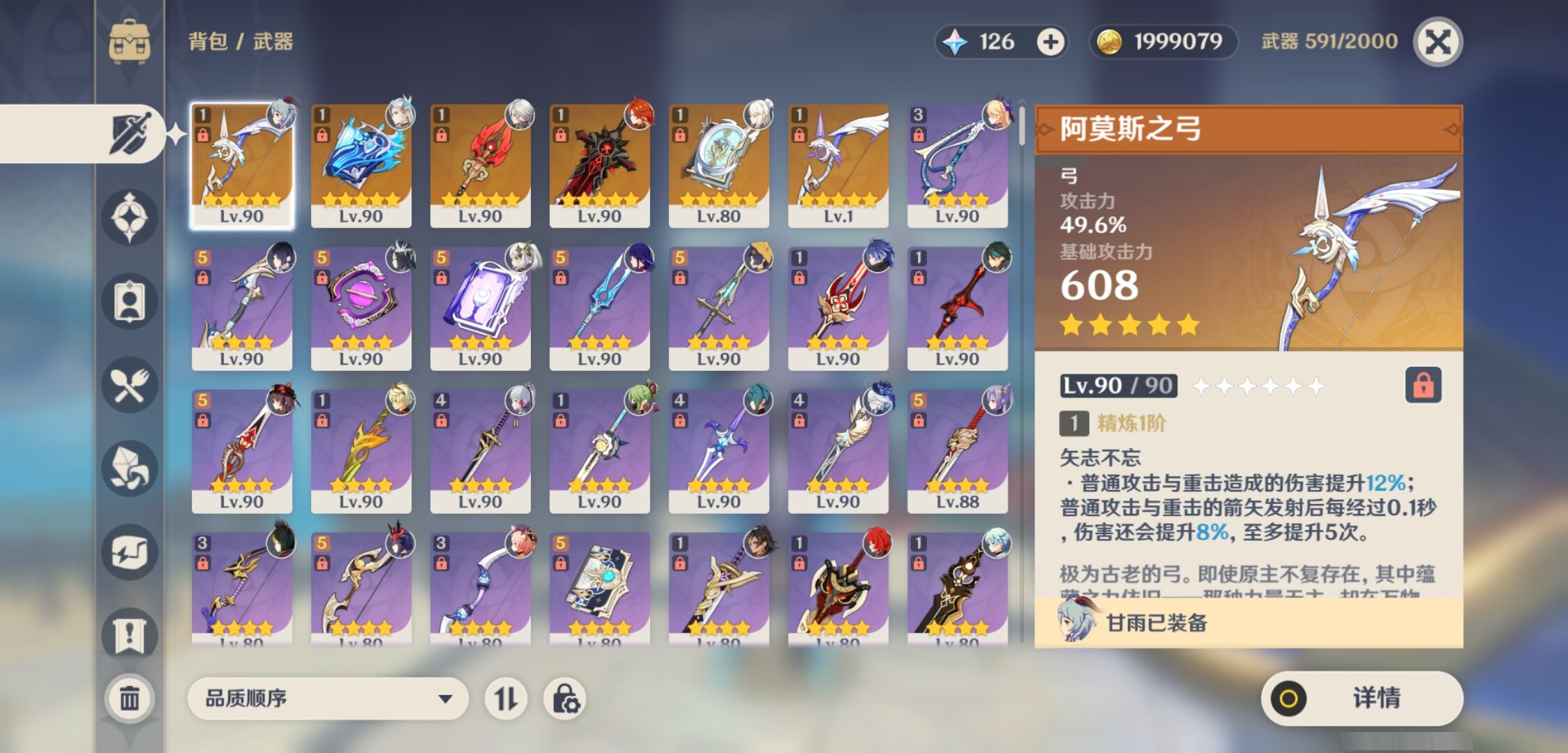 【6个五星武器】,精1阿莫斯之弓,精1万世流涌大典,精1护摩之杖,精1狼的末路,精1四风原典,精1阿莫斯之弓,5套,