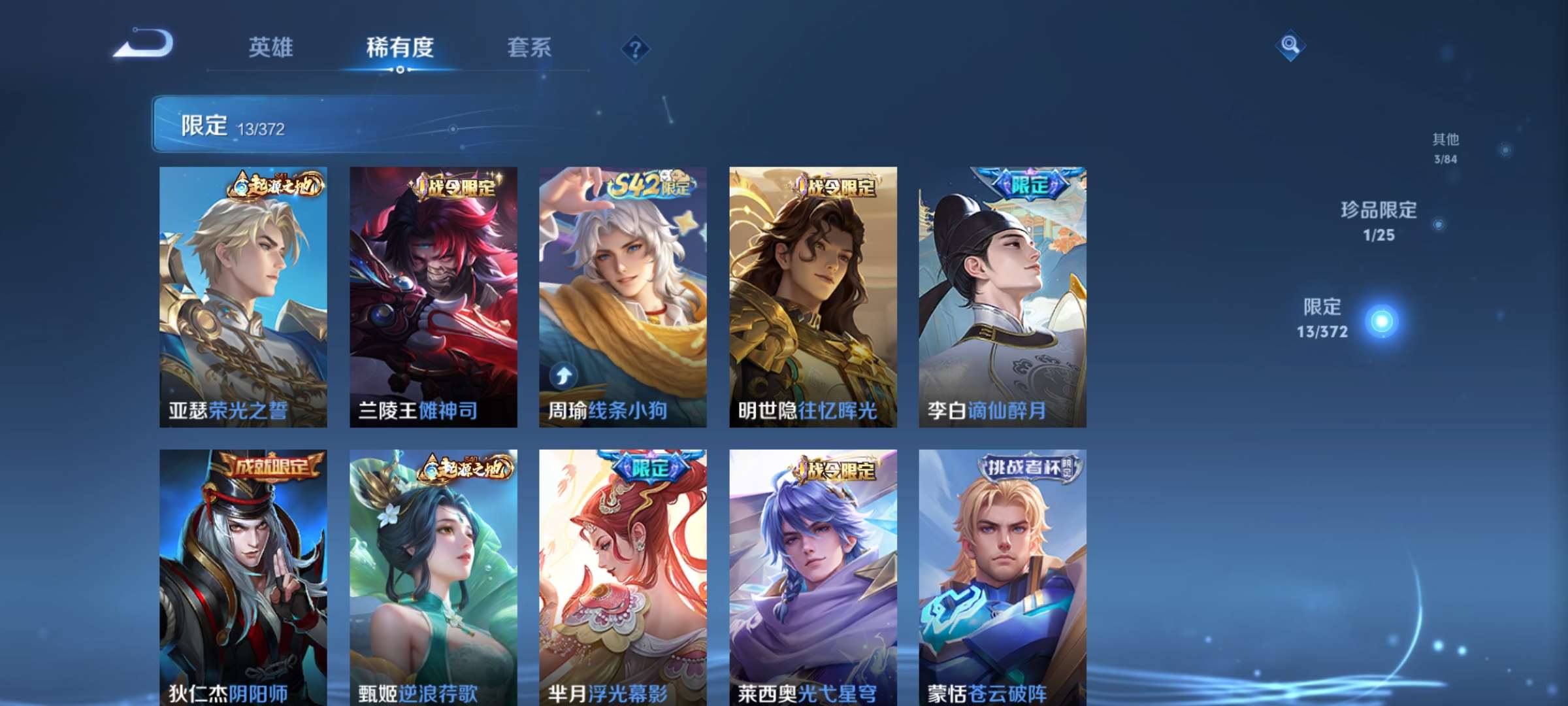 W10022【安卓区V8】可二次实名,英雄104,皮肤161,典藏:李白鸣剑.曳