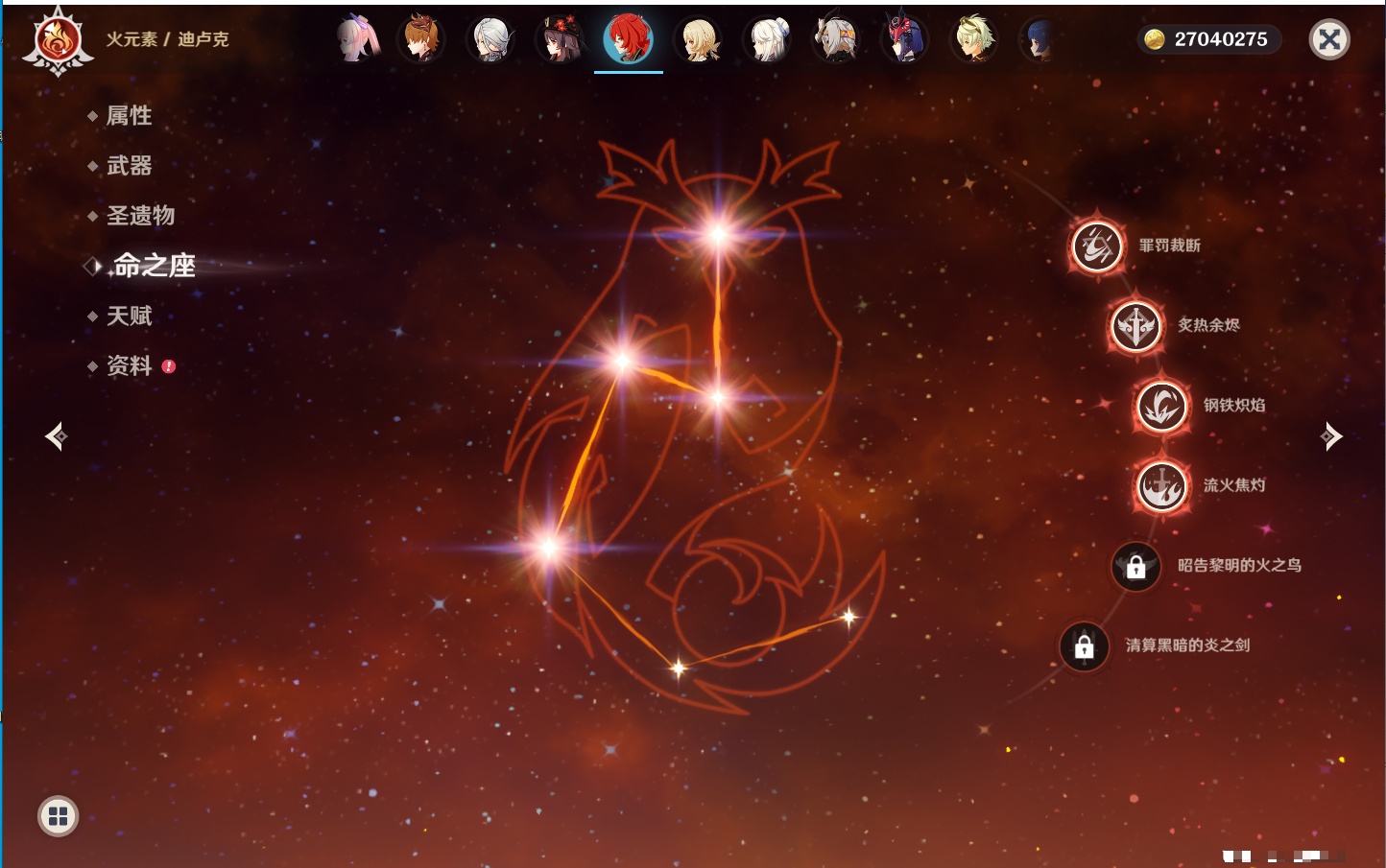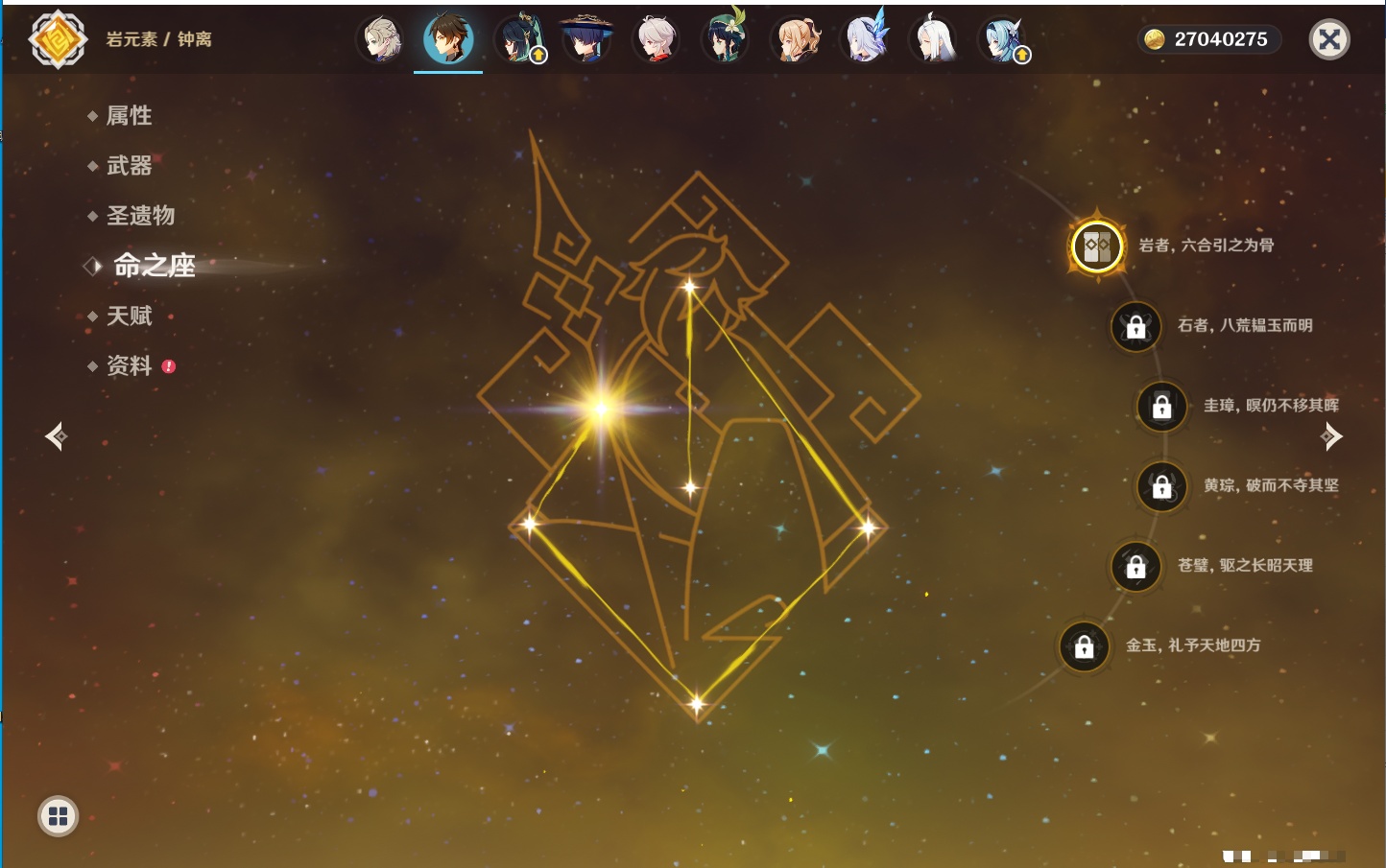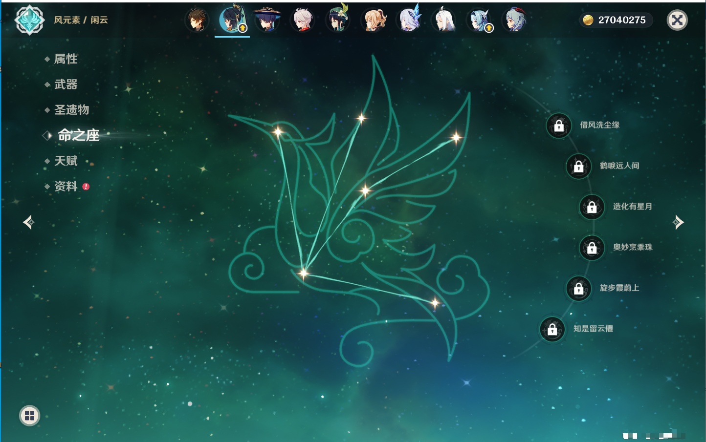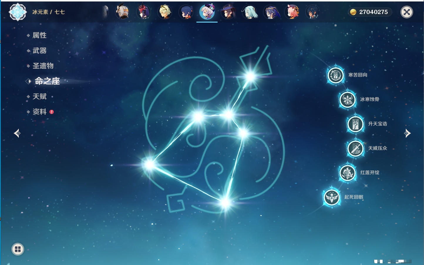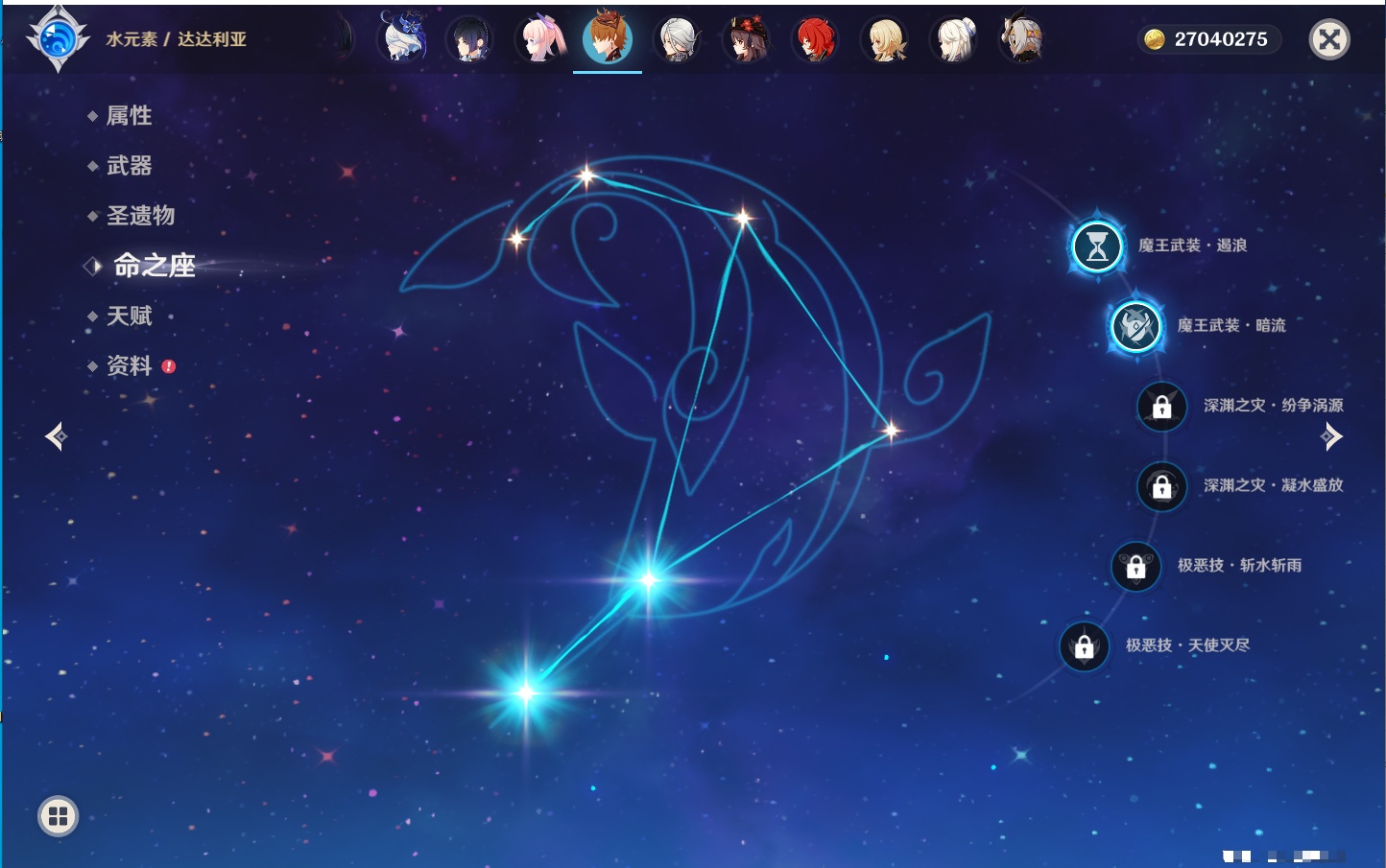 【37个五星角色】,满命那维莱特,满命赛诺,满命夜兰,满命神里绫华,满命刻晴,满命七七,满命琴,满命莫娜,满命基尼奇,5命提纳里,4命迪卢克,3命雷电将军,2命克洛琳德,2命达达利亚,1命纳西妲,1命钟离,1命胡桃,1命温迪,1命菲林斯,0命阿蕾奇诺,0命闲云,0命芙宁娜,0命白术,0命艾尔海森,0命流浪者,0命八重神子,0命申鹤,0命优菈,0命枫原万叶,0命甘雨,0命阿贝多,0命珊瑚宫心海,0命伊涅芙,0命哥伦比娅,0命希诺宁,0命丝柯克,0命梦见月瑞希,