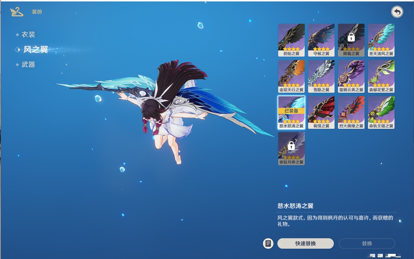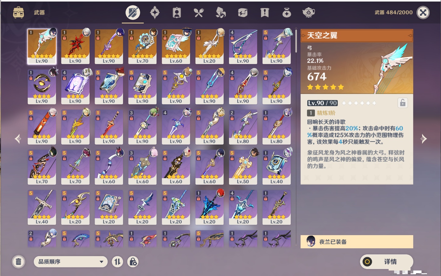 【6个五星武器】,精1天空之翼,精1赤月之形,精1薙草之稻光,精1支离轮光,精1天空之卷,精1风鹰剑,