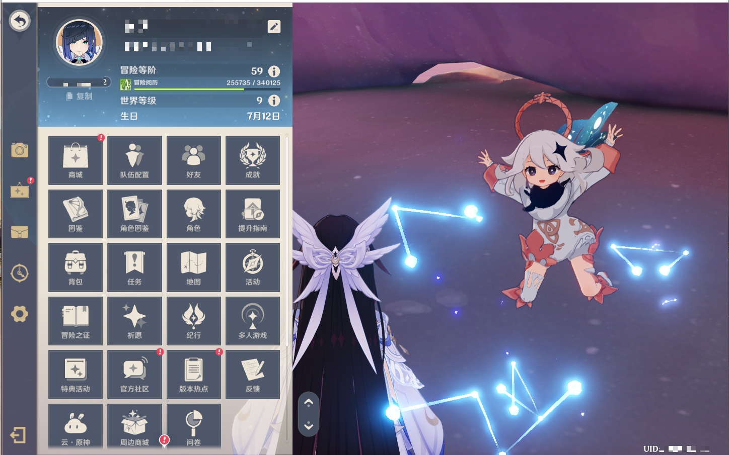 PX_2509017-,邮箱不出售,,冒险等级59级,女主,41黄,21个五星角色,6个五星武器,纠缠之源0--原石0--圣遗物829--【时装】,聆雨听竹,岁夜欢哗,雨化竹身,叶隐芳名,帆影游风,