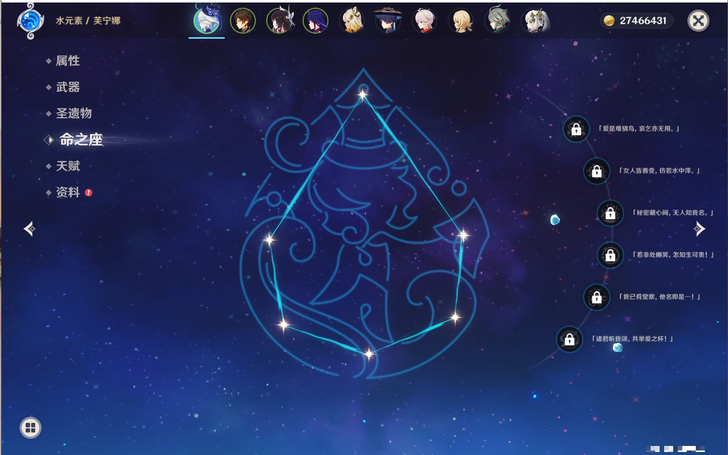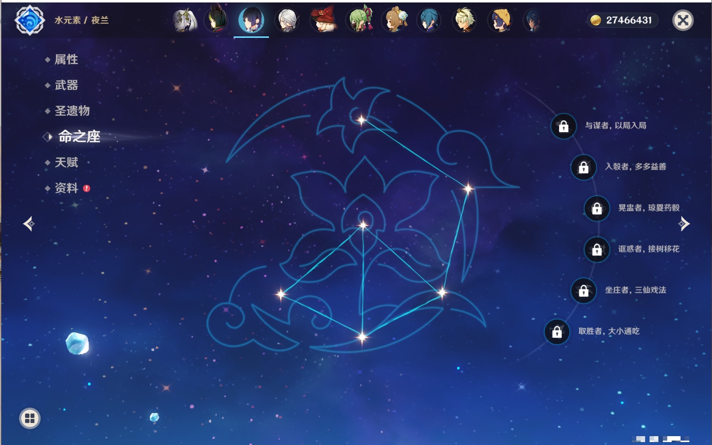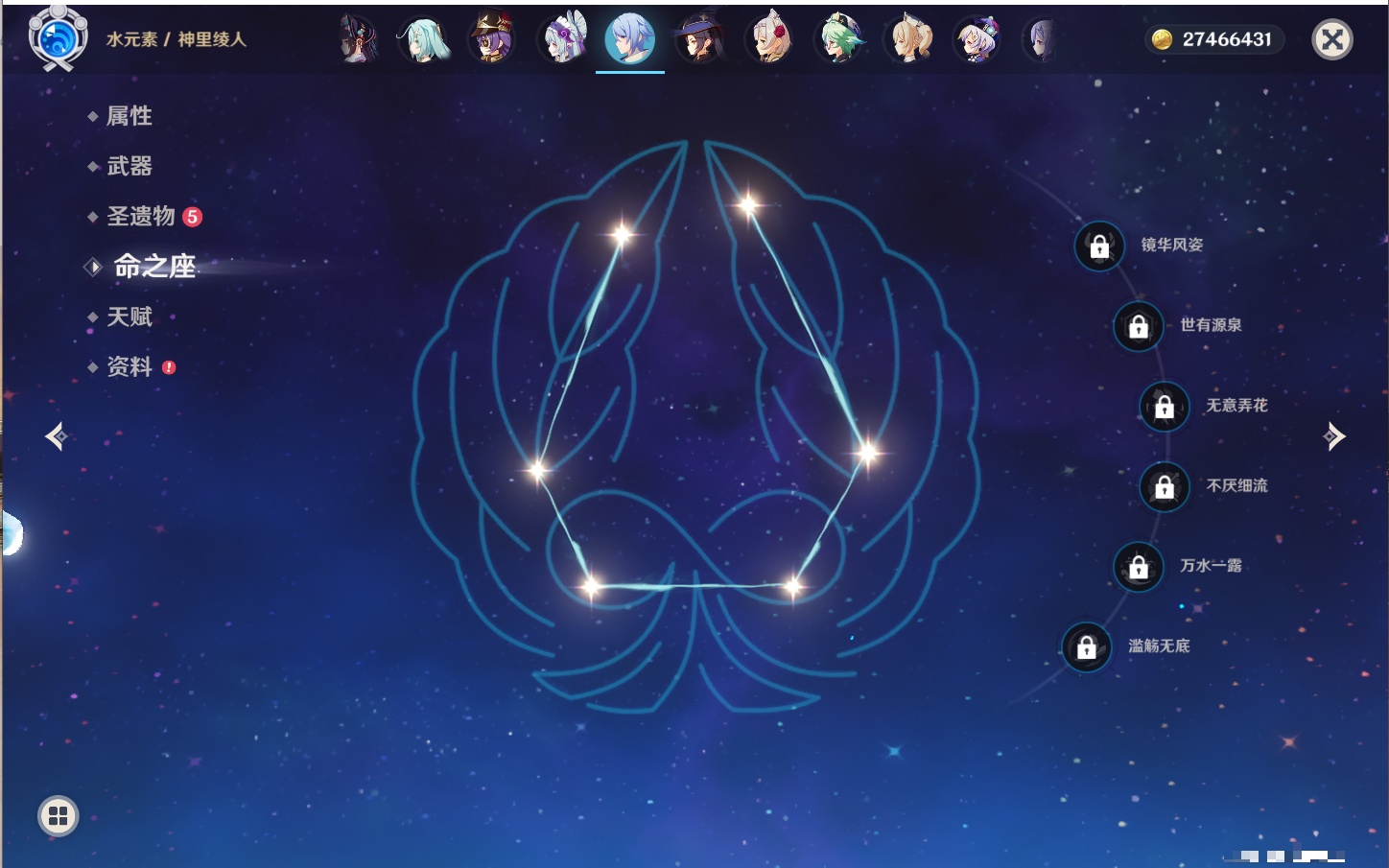 【21个五星角色】,3命琴,2命阿蕾奇诺,2命刻晴,2命哥伦比娅,1命迪希雅,1命流浪者,1命提纳里,1命雷电将军,1命莫娜,0命芙宁娜,0命艾尔海森,0命纳西妲,0命夜兰,0命神里绫人,0命枫原万叶,0命钟离,0命可莉,0命七七,0命迪卢克,0命希诺宁,0命梦见月瑞希,