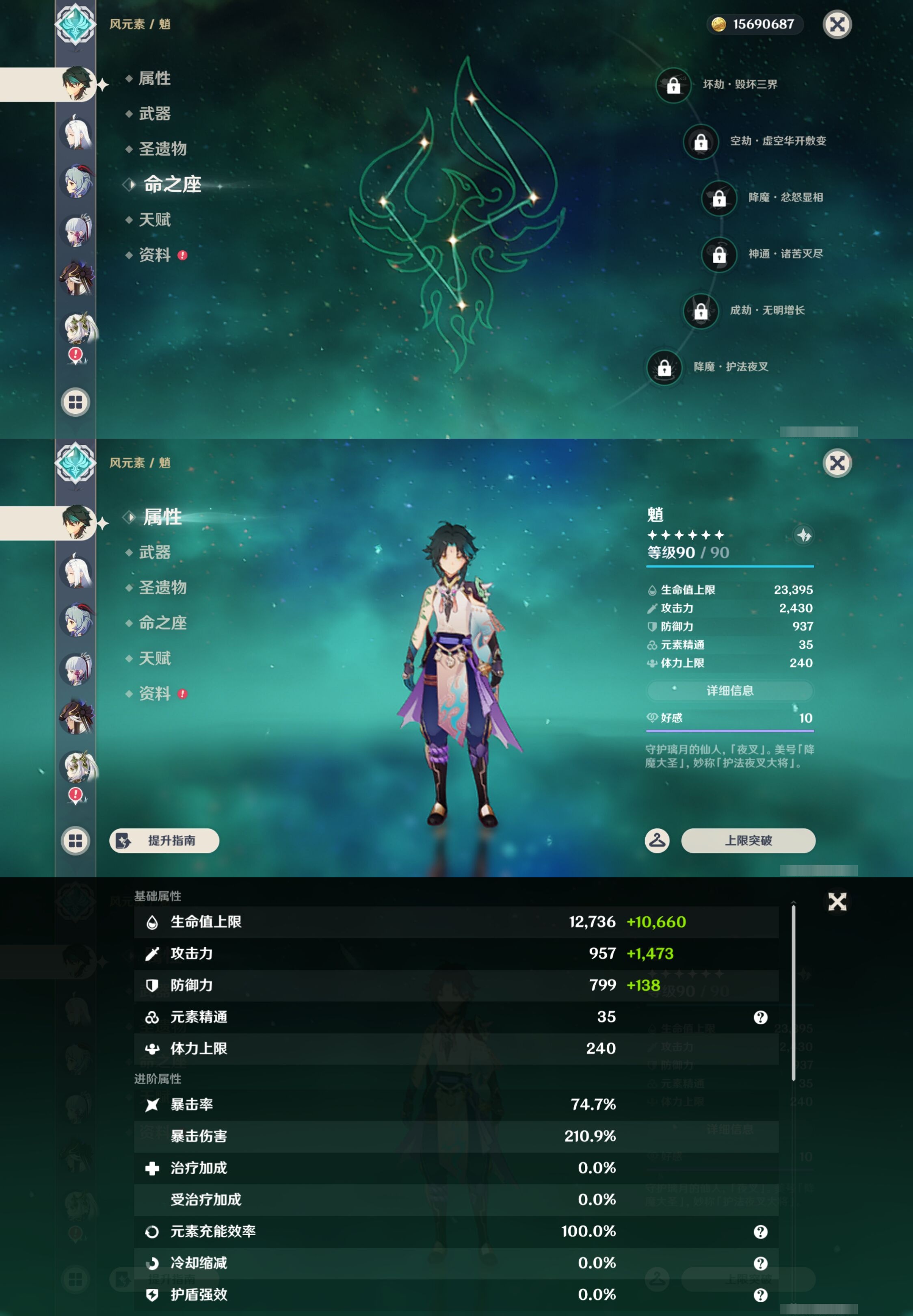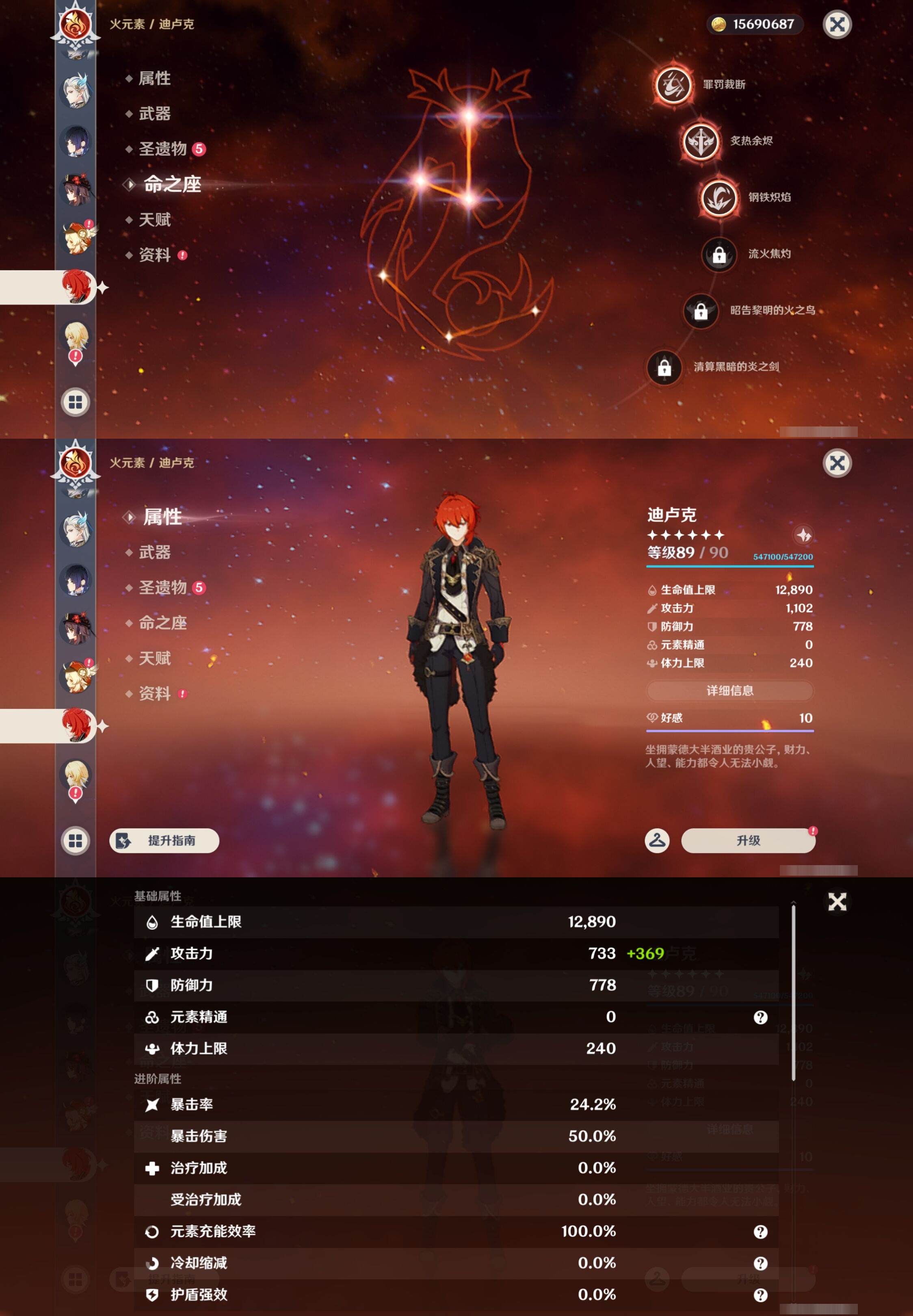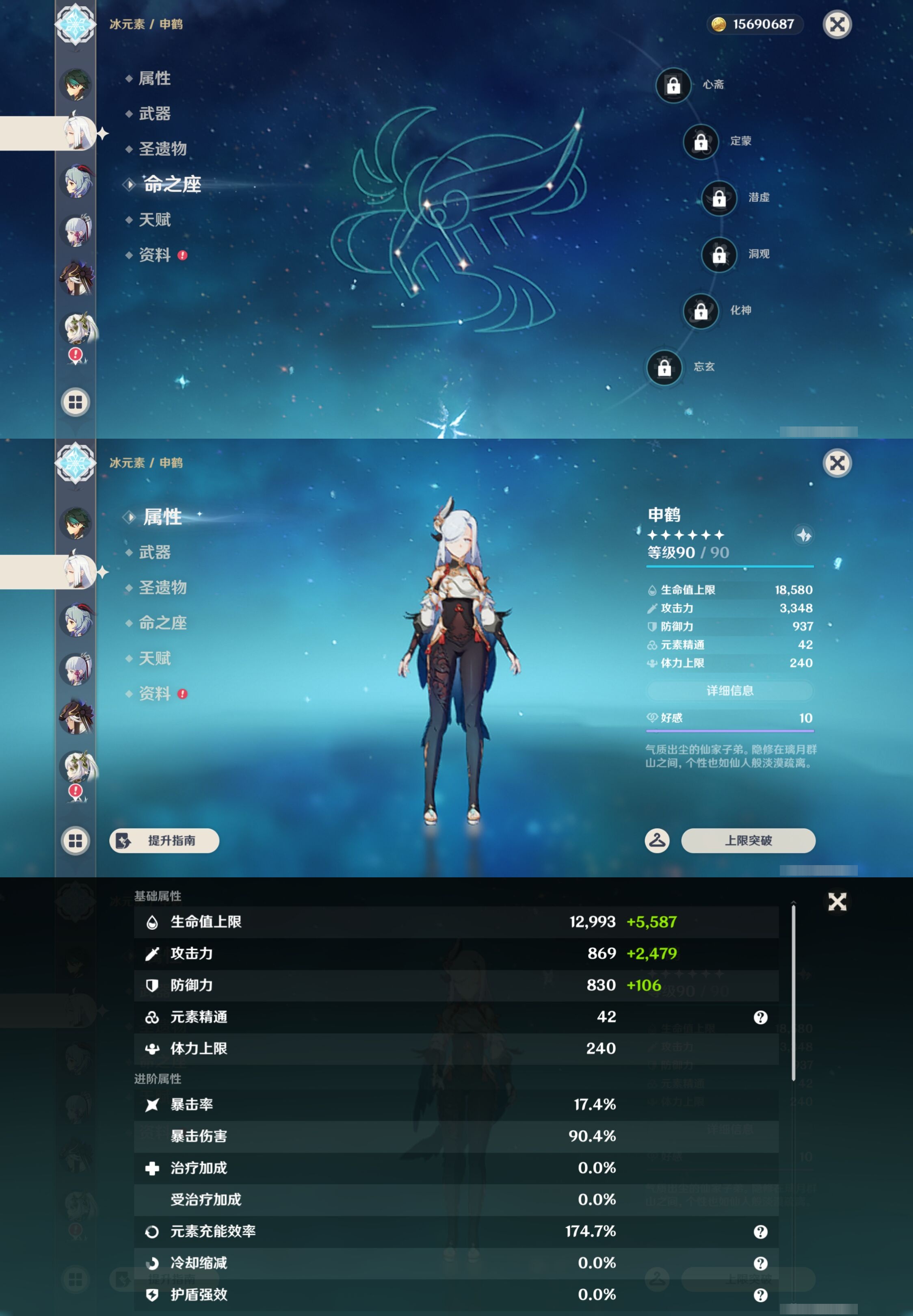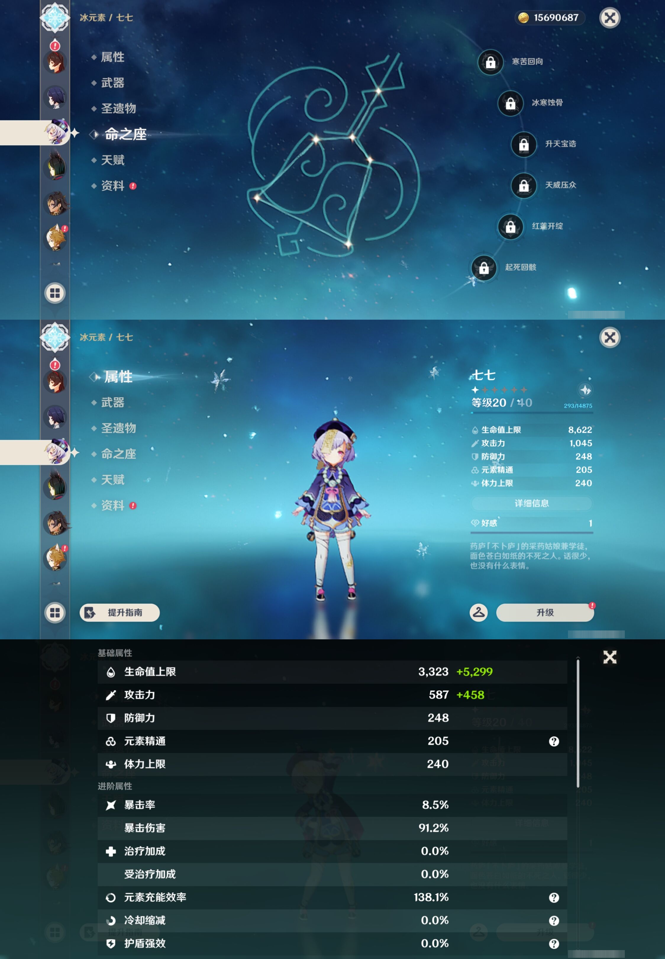 【17个五星武器】,精2裁断,精2天空之傲,精2风鹰剑,精1若水,精1护摩之杖,精1苍古自由之誓,精1无工之剑,精1若水,精1天空之翼,精1狼的末路,精1万世流涌大典,精1雾切之回光,精1图莱杜拉的回忆,精1赤沙之杖,精1阿莫斯之弓,精1护摩之杖,精1不灭月华,四星角色:5命班尼特,6套,