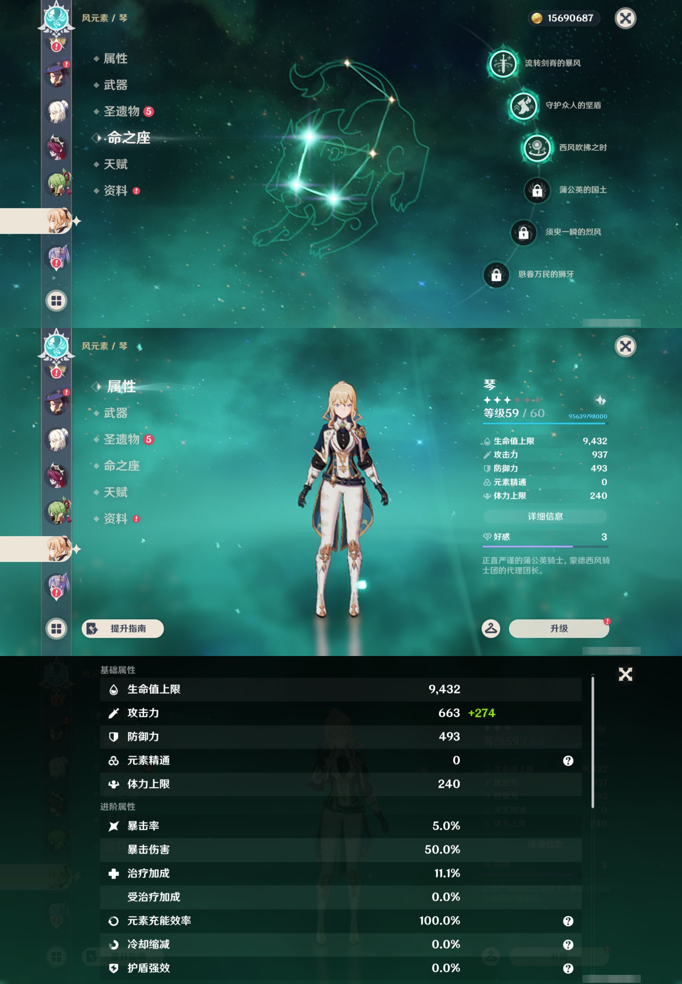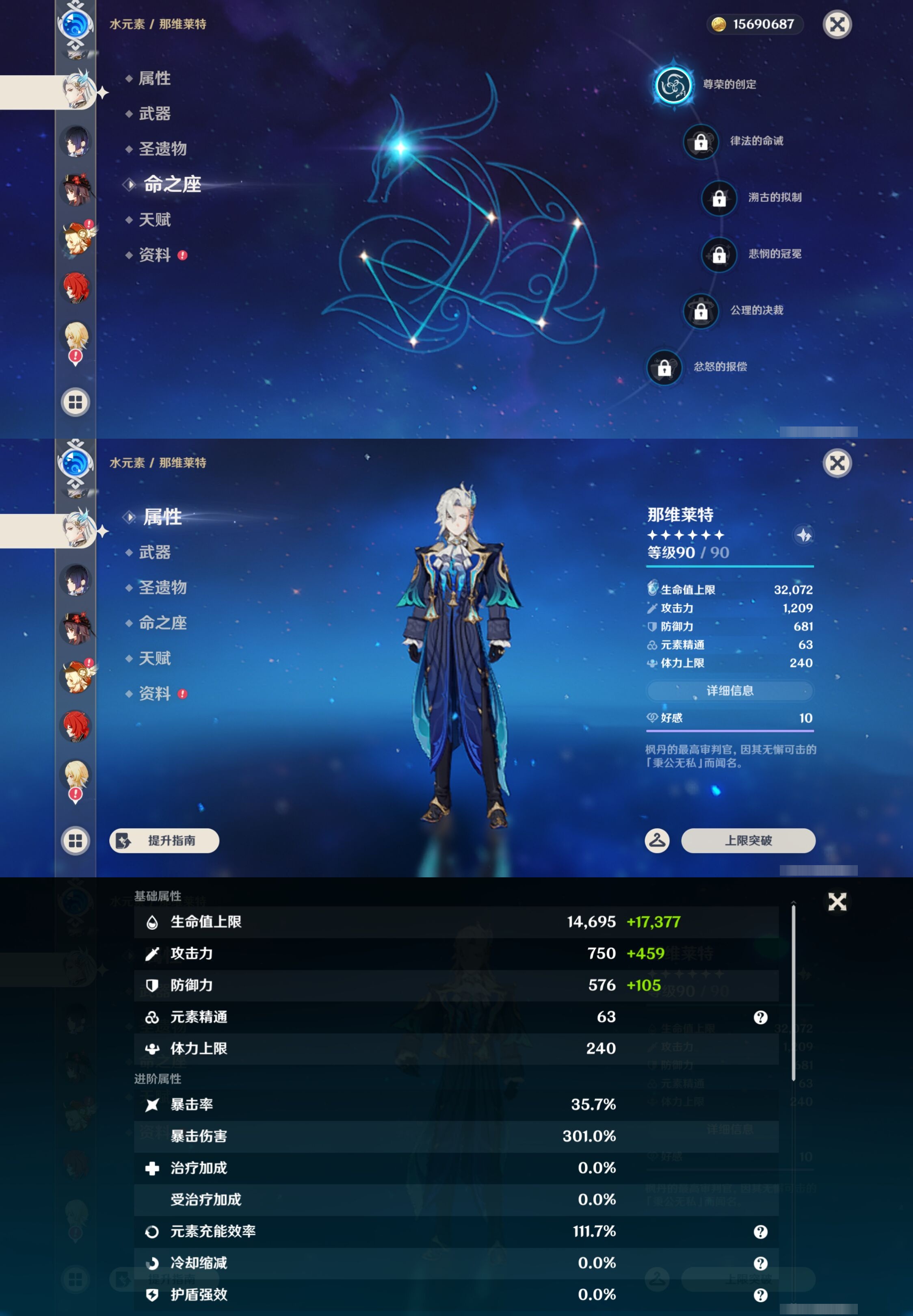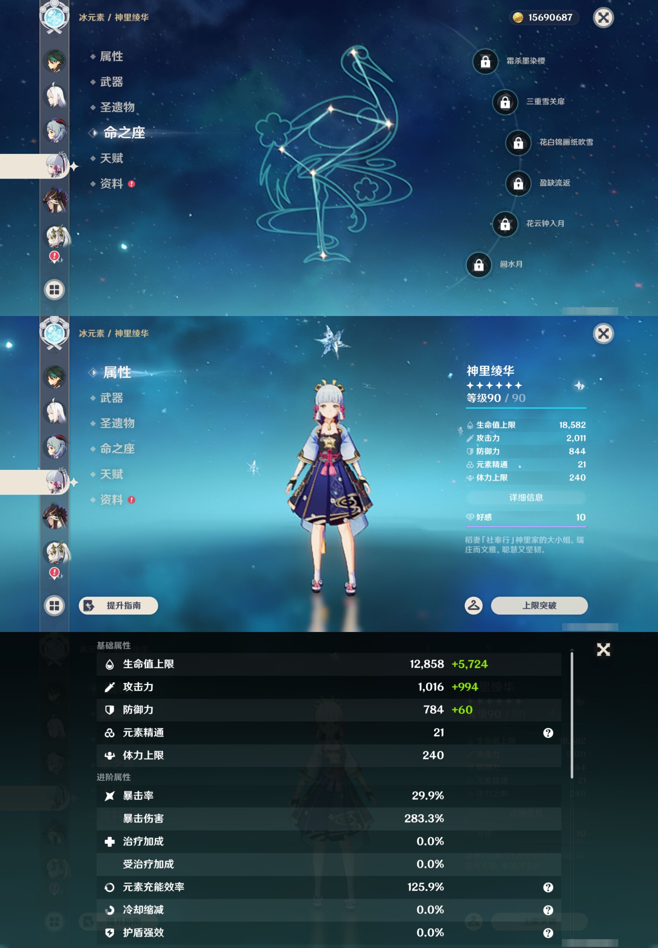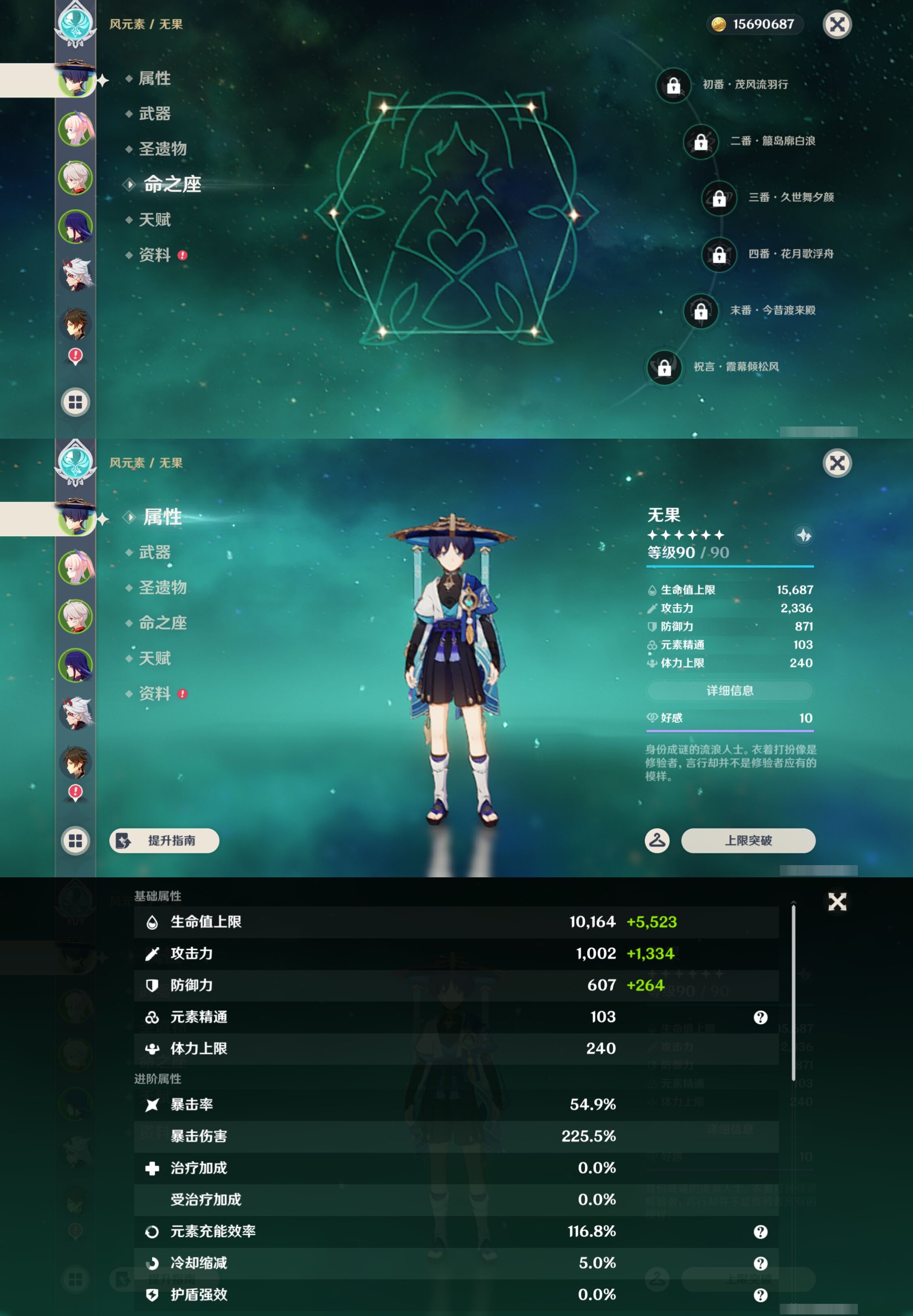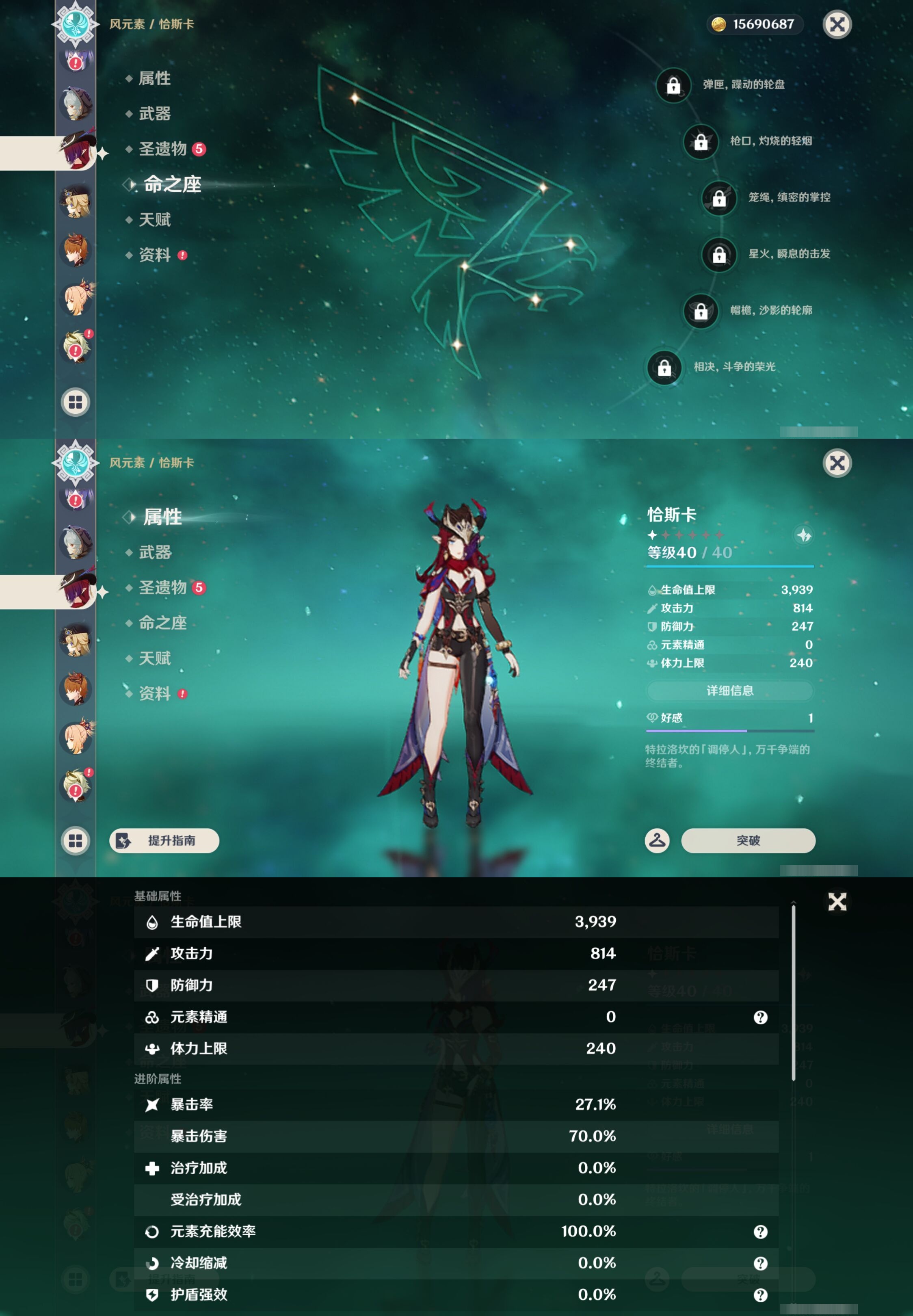 【17个五星武器】,精2裁断,精2天空之傲,精2风鹰剑,精1若水,精1护摩之杖,精1苍古自由之誓,精1无工之剑,精1若水,精1天空之翼,精1狼的末路,精1万世流涌大典,精1雾切之回光,精1图莱杜拉的回忆,精1赤沙之杖,精1阿莫斯之弓,精1护摩之杖,精1不灭月华,四星角色:5命班尼特,6套,