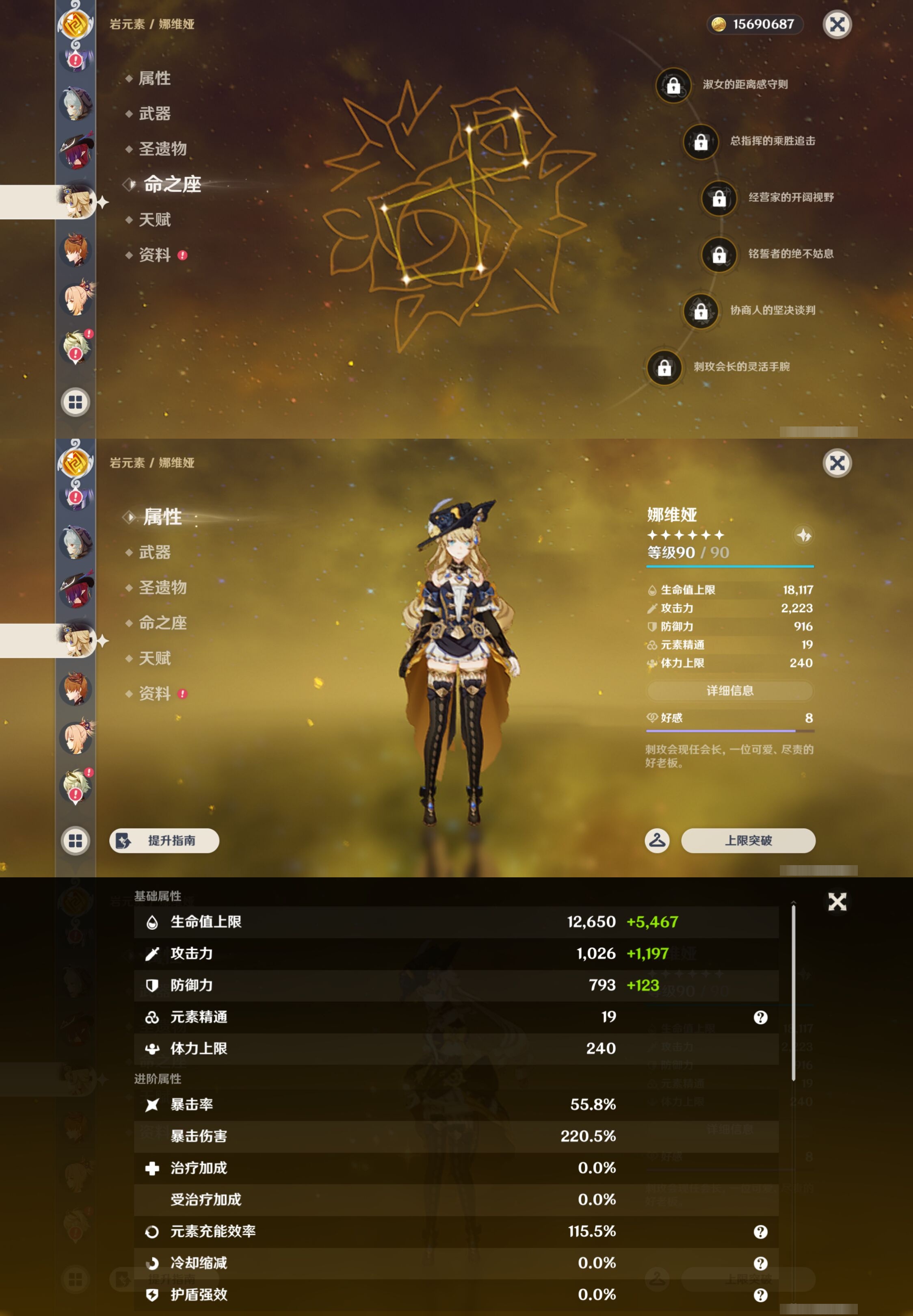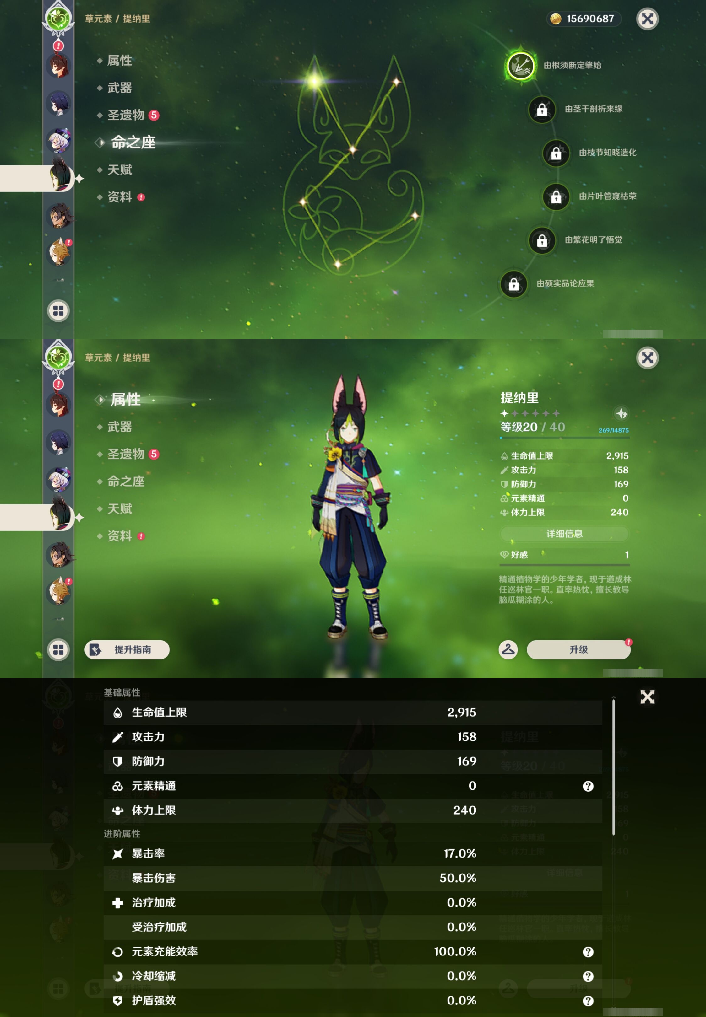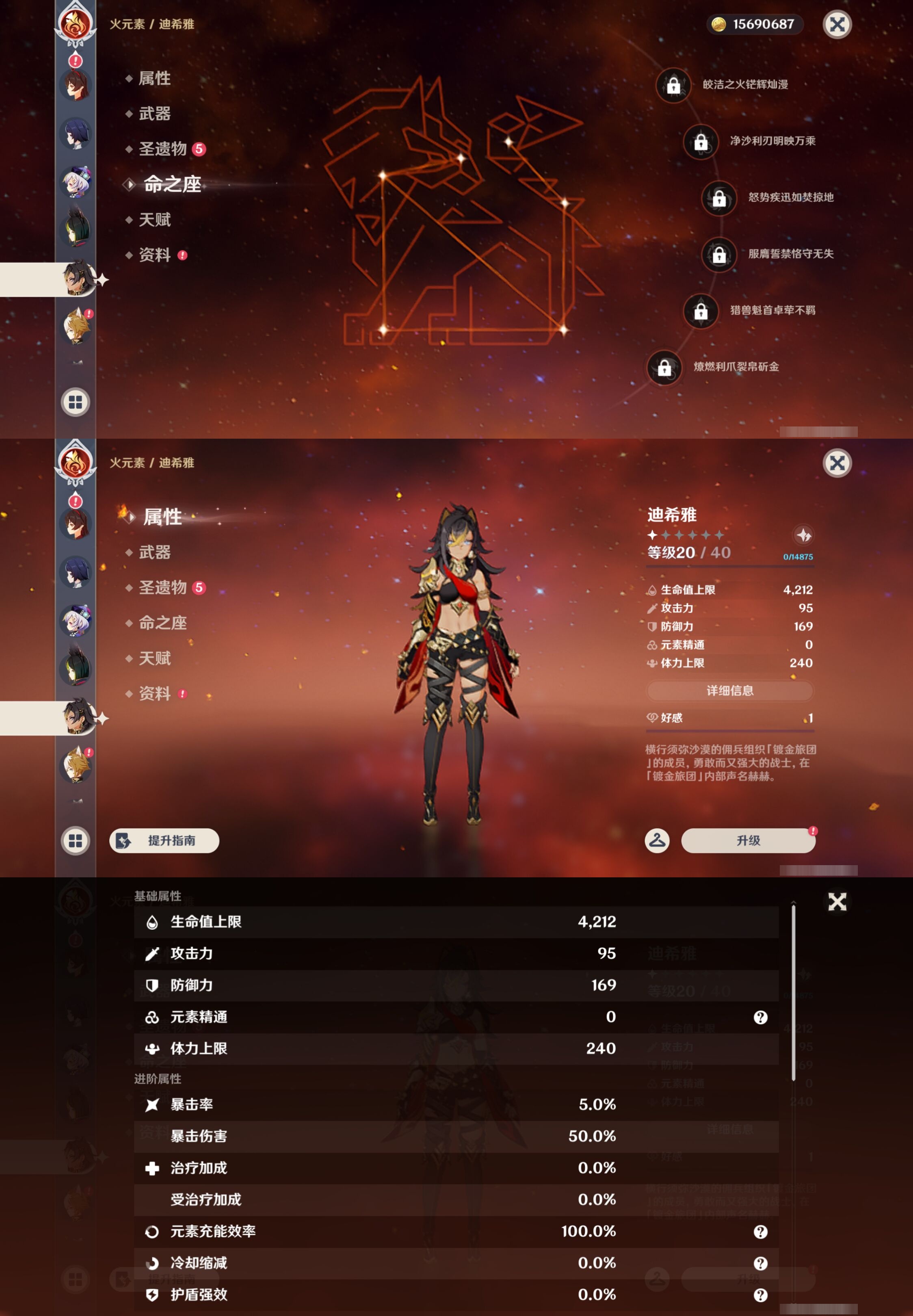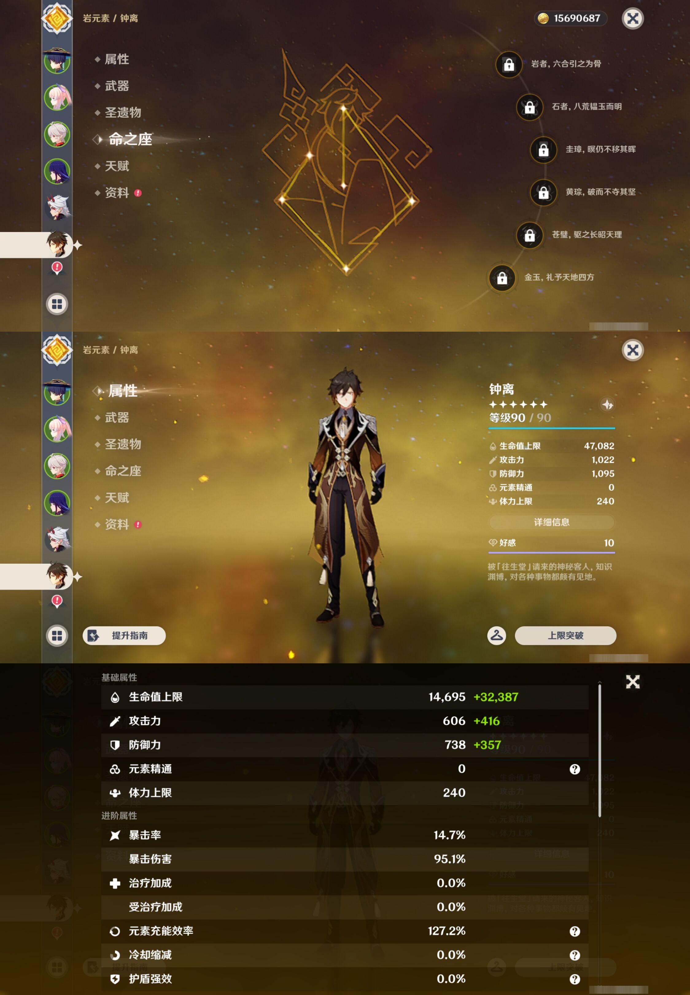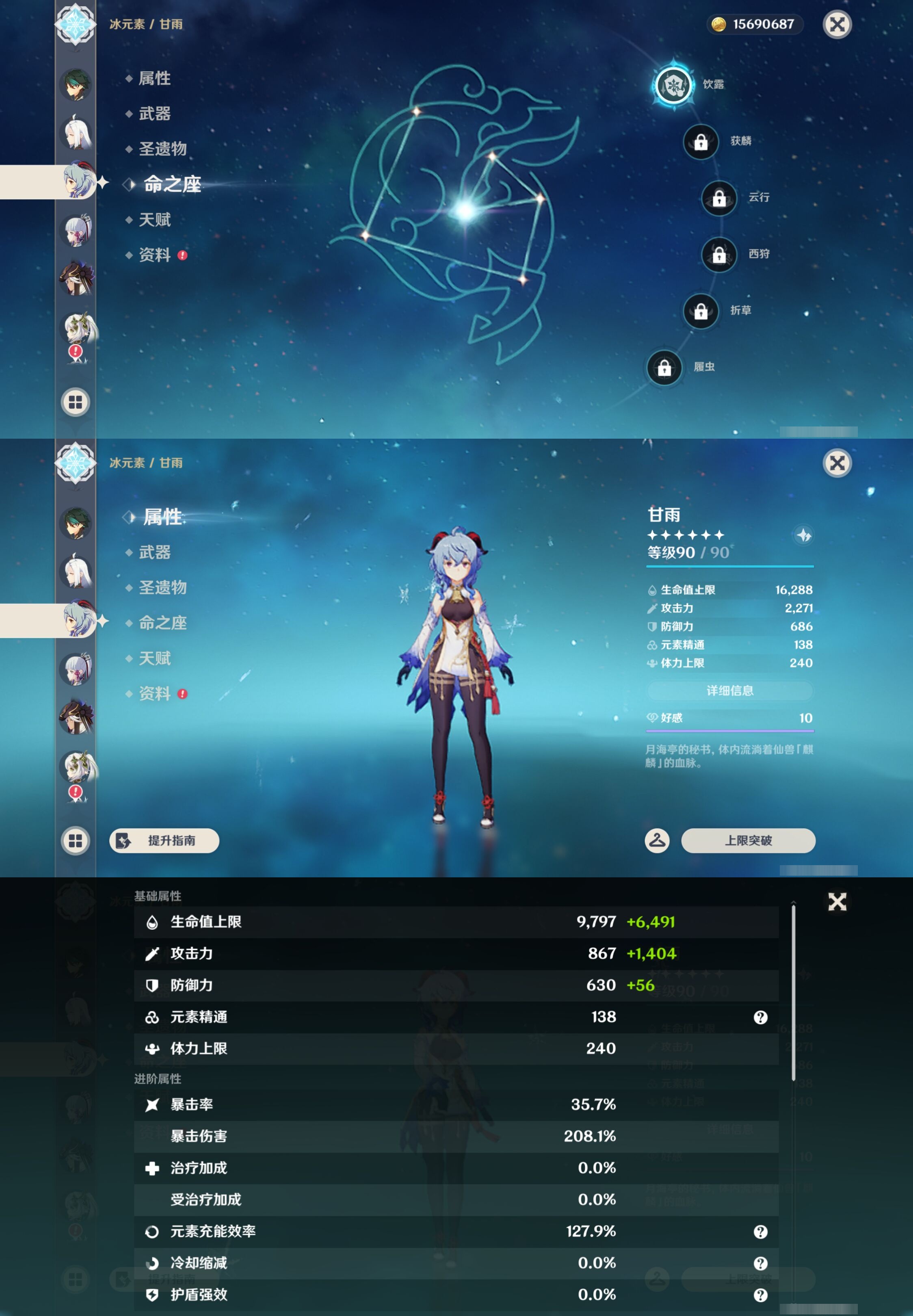 【17个五星武器】,精2裁断,精2天空之傲,精2风鹰剑,精1若水,精1护摩之杖,精1苍古自由之誓,精1无工之剑,精1若水,精1天空之翼,精1狼的末路,精1万世流涌大典,精1雾切之回光,精1图莱杜拉的回忆,精1赤沙之杖,精1阿莫斯之弓,精1护摩之杖,精1不灭月华,四星角色:5命班尼特,6套,