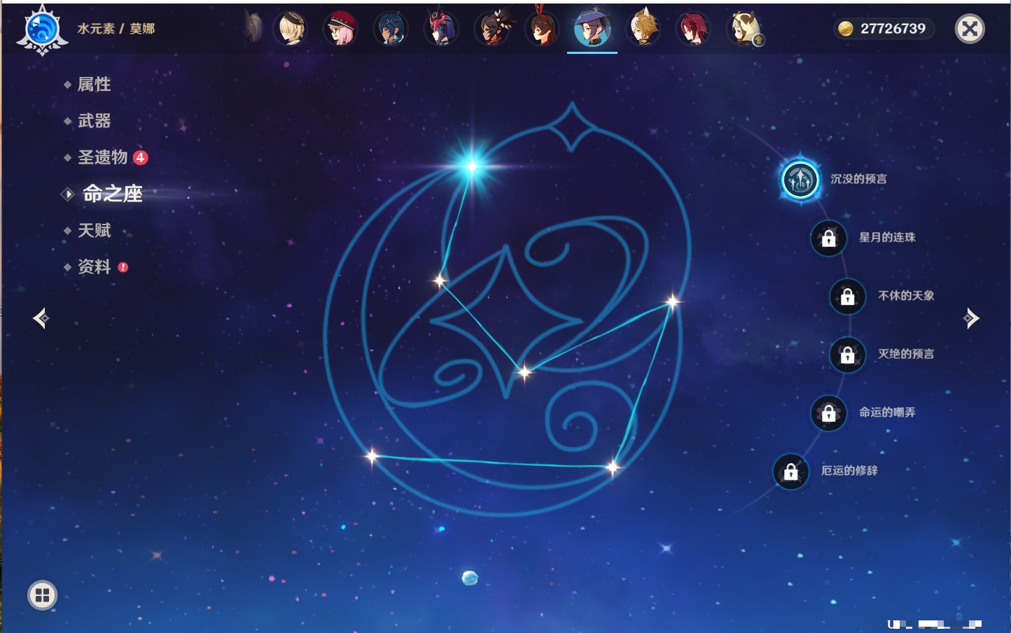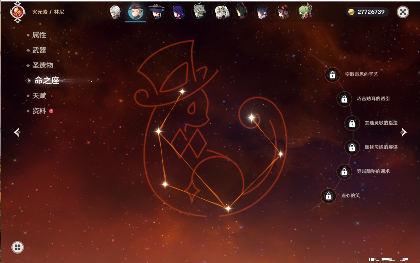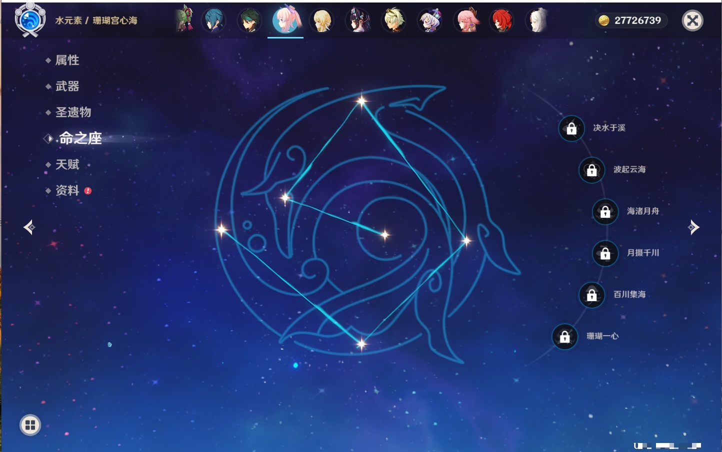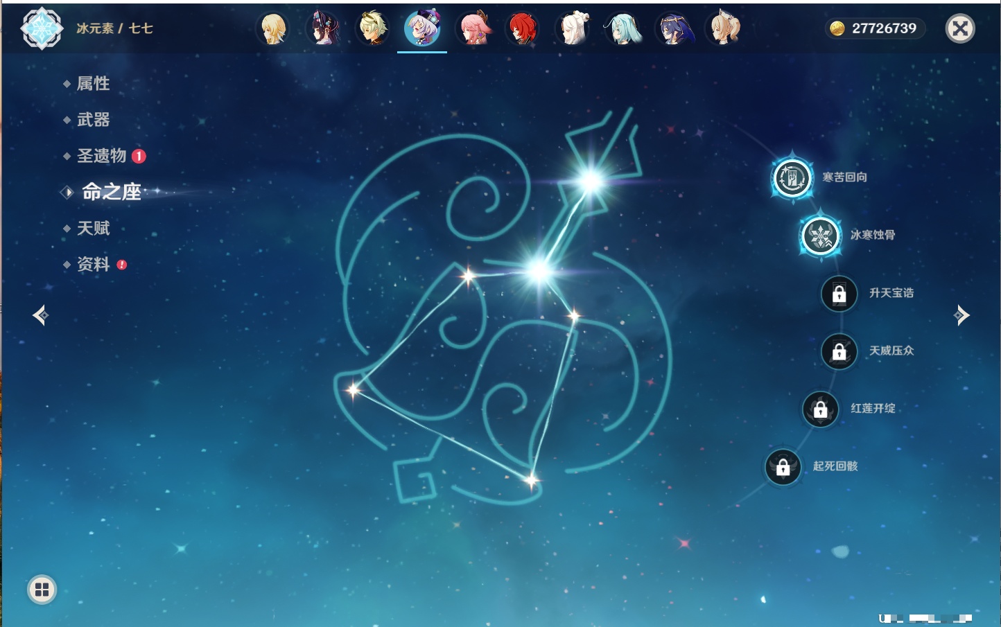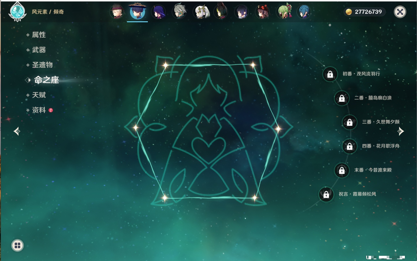 【24个五星角色】,2命钟离,2命七七,1命刻晴,1命莫娜,1命迪卢克,0命阿蕾奇诺,0命芙宁娜,0命莱欧斯利,0命那维莱特,0命林尼,0命迪希雅,0命艾尔海森,0命流浪者,0命纳西妲,0命提纳里,0命夜兰,0命八重神子,0命雷电将军,0命胡桃,0命魈,0命珊瑚宫心海,0命琴,0命梦见月瑞希,0命菲林斯,