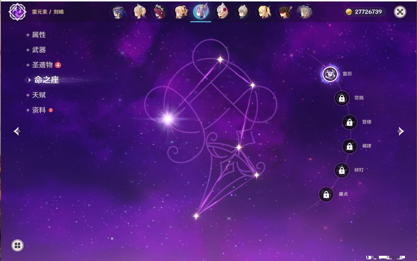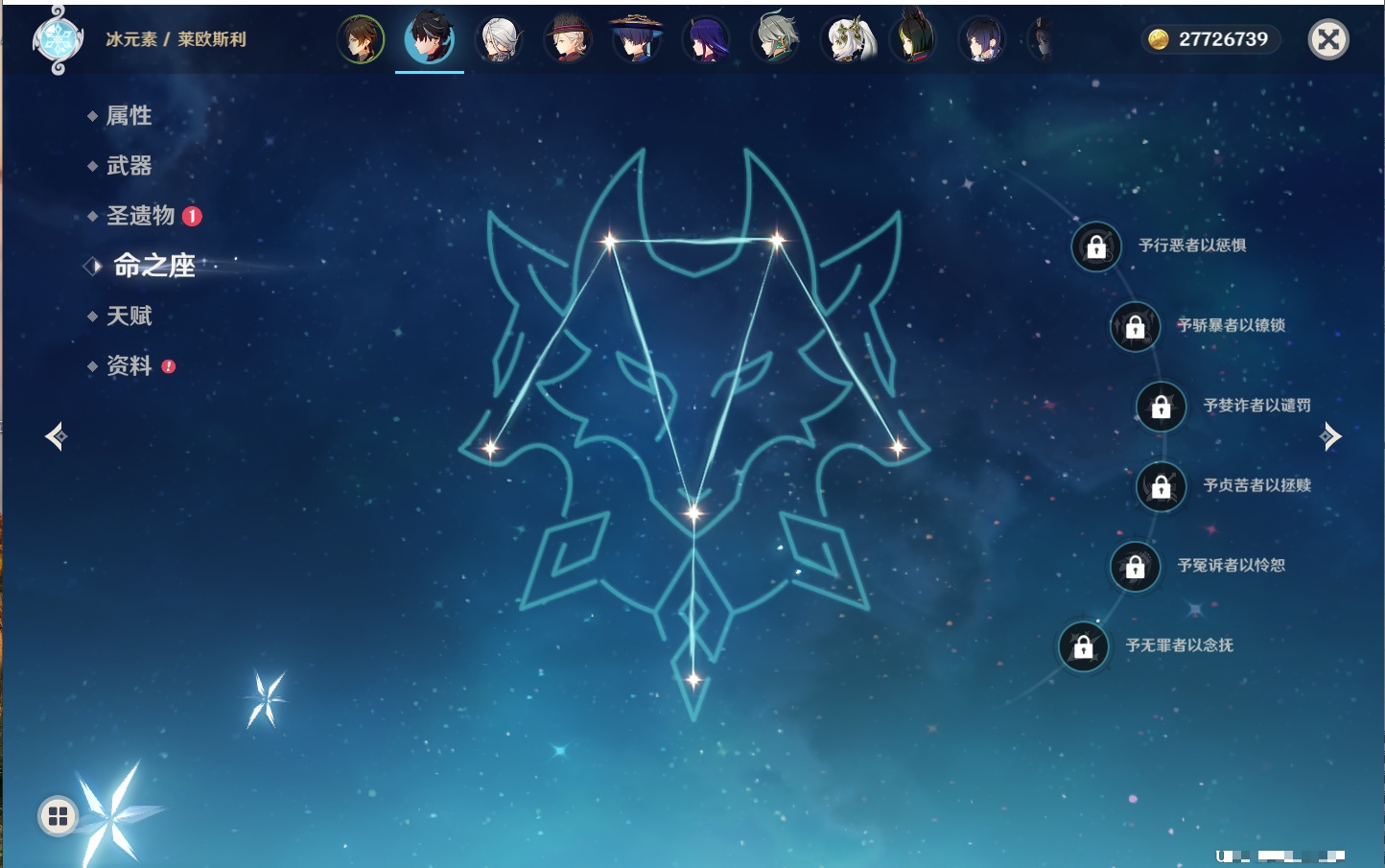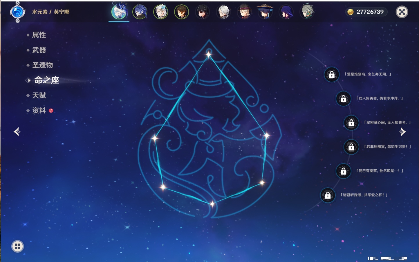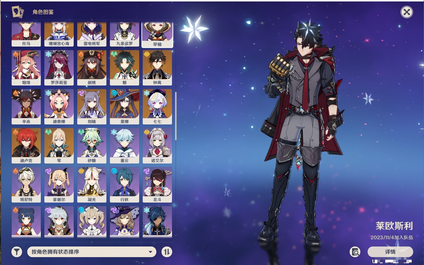 【24个五星角色】,2命钟离,2命七七,1命刻晴,1命莫娜,1命迪卢克,0命阿蕾奇诺,0命芙宁娜,0命莱欧斯利,0命那维莱特,0命林尼,0命迪希雅,0命艾尔海森,0命流浪者,0命纳西妲,0命提纳里,0命夜兰,0命八重神子,0命雷电将军,0命胡桃,0命魈,0命珊瑚宫心海,0命琴,0命梦见月瑞希,0命菲林斯,