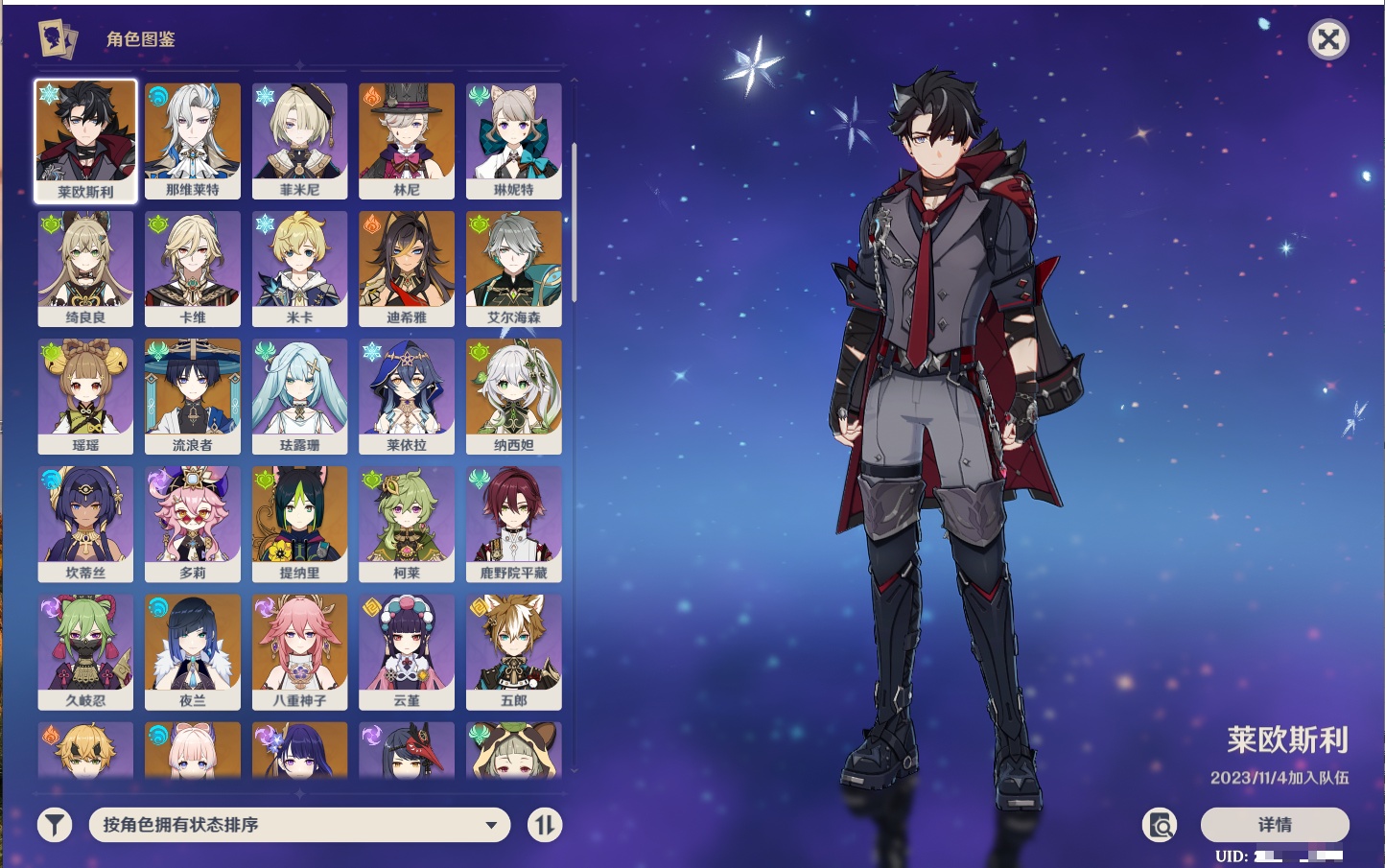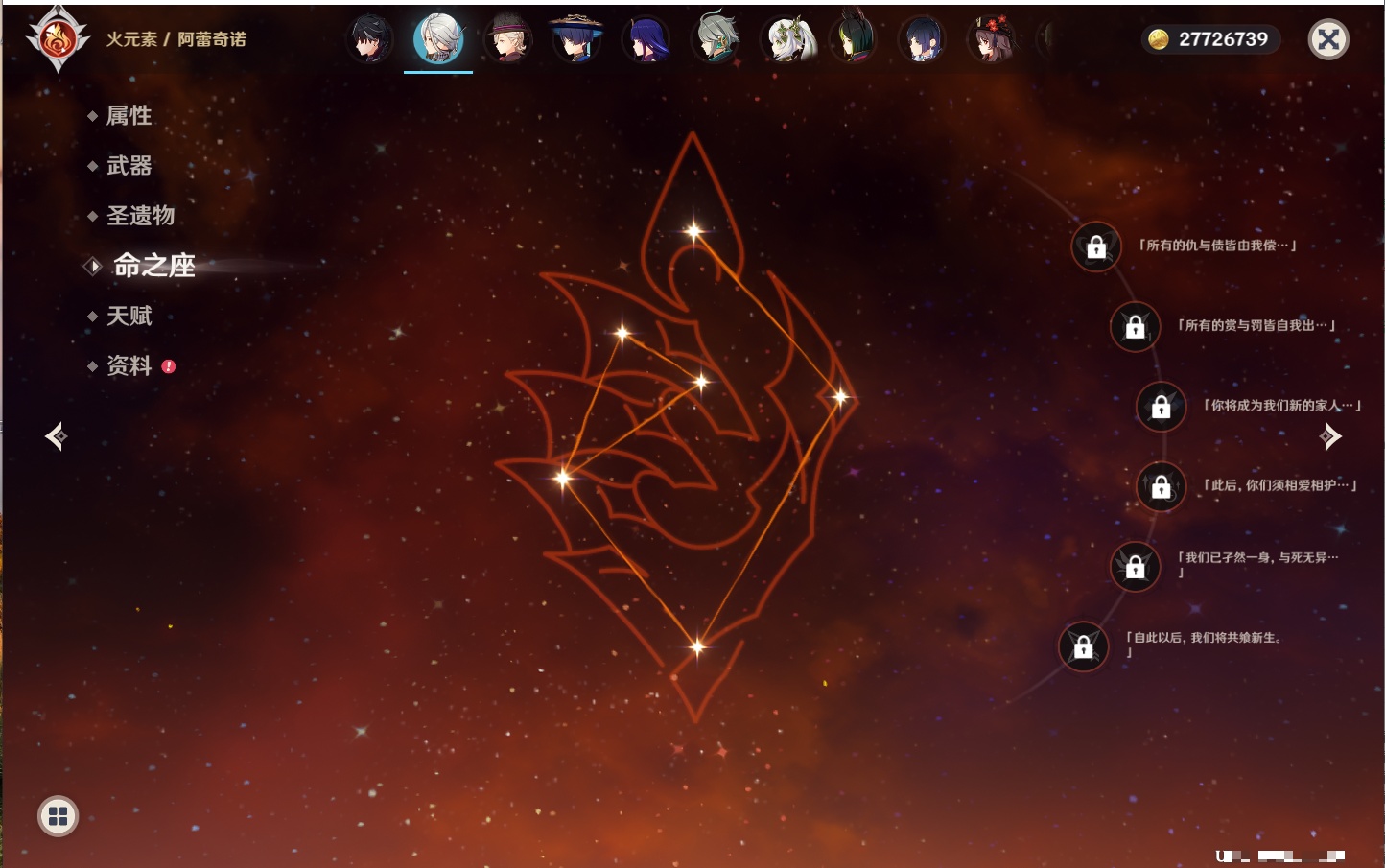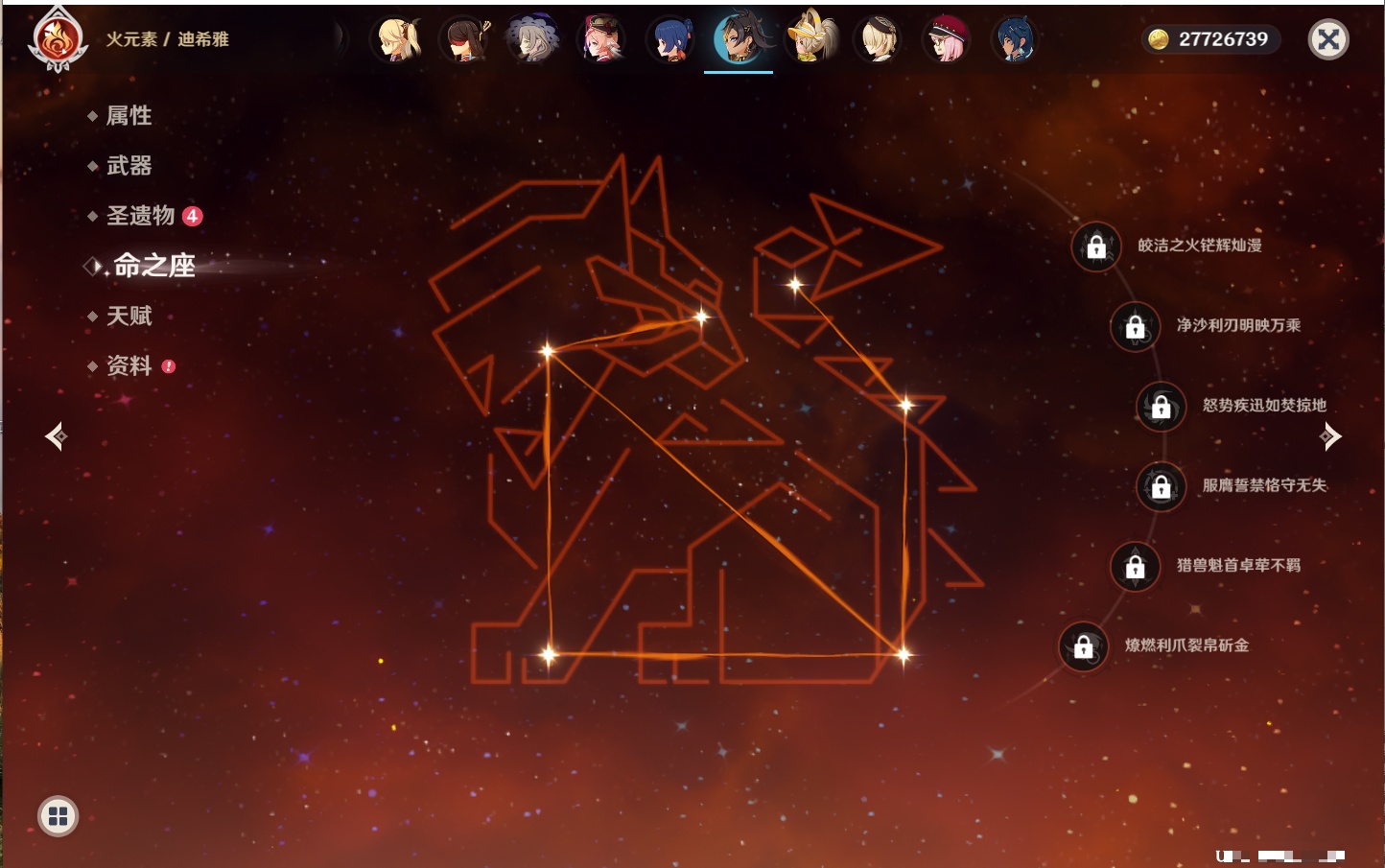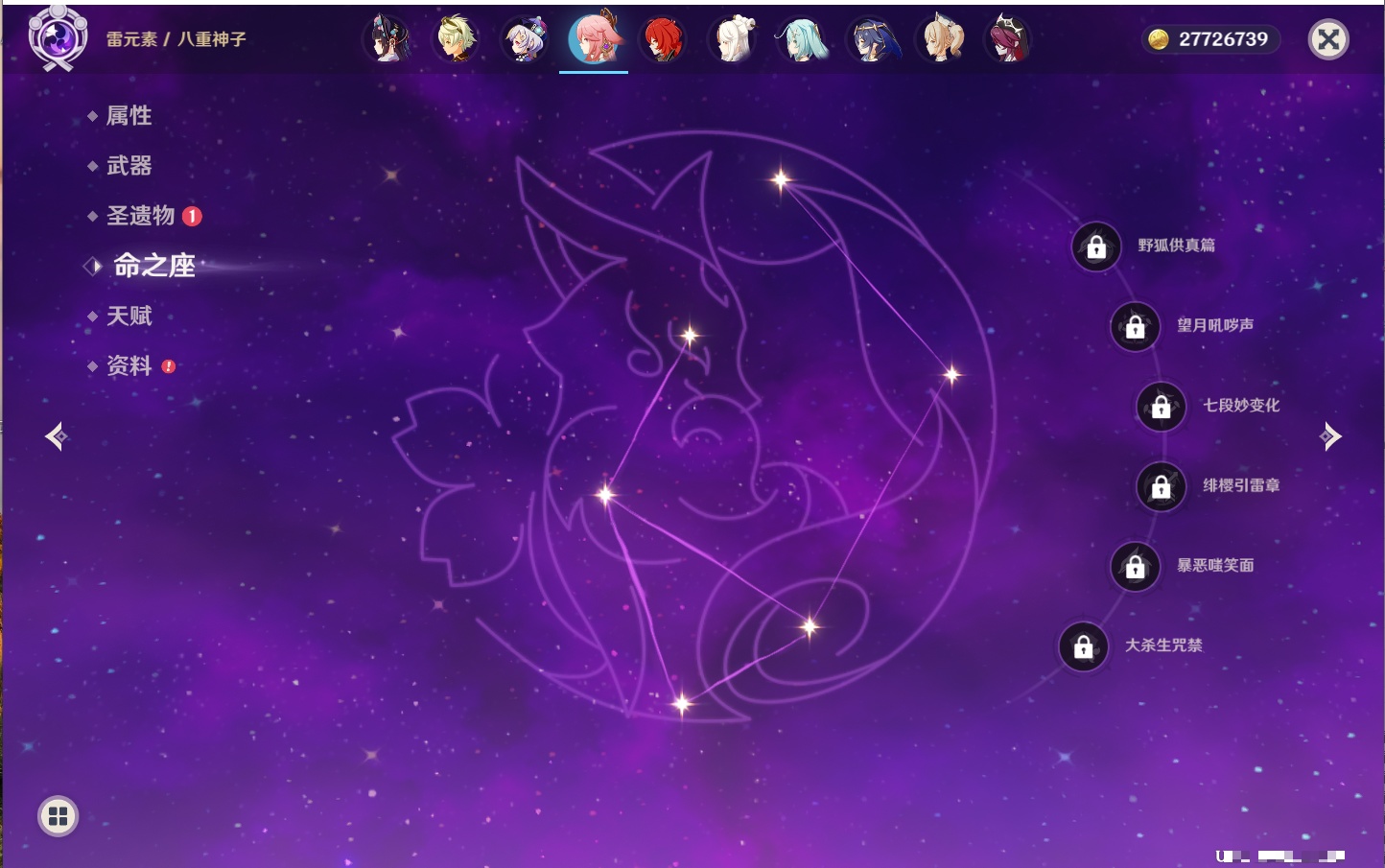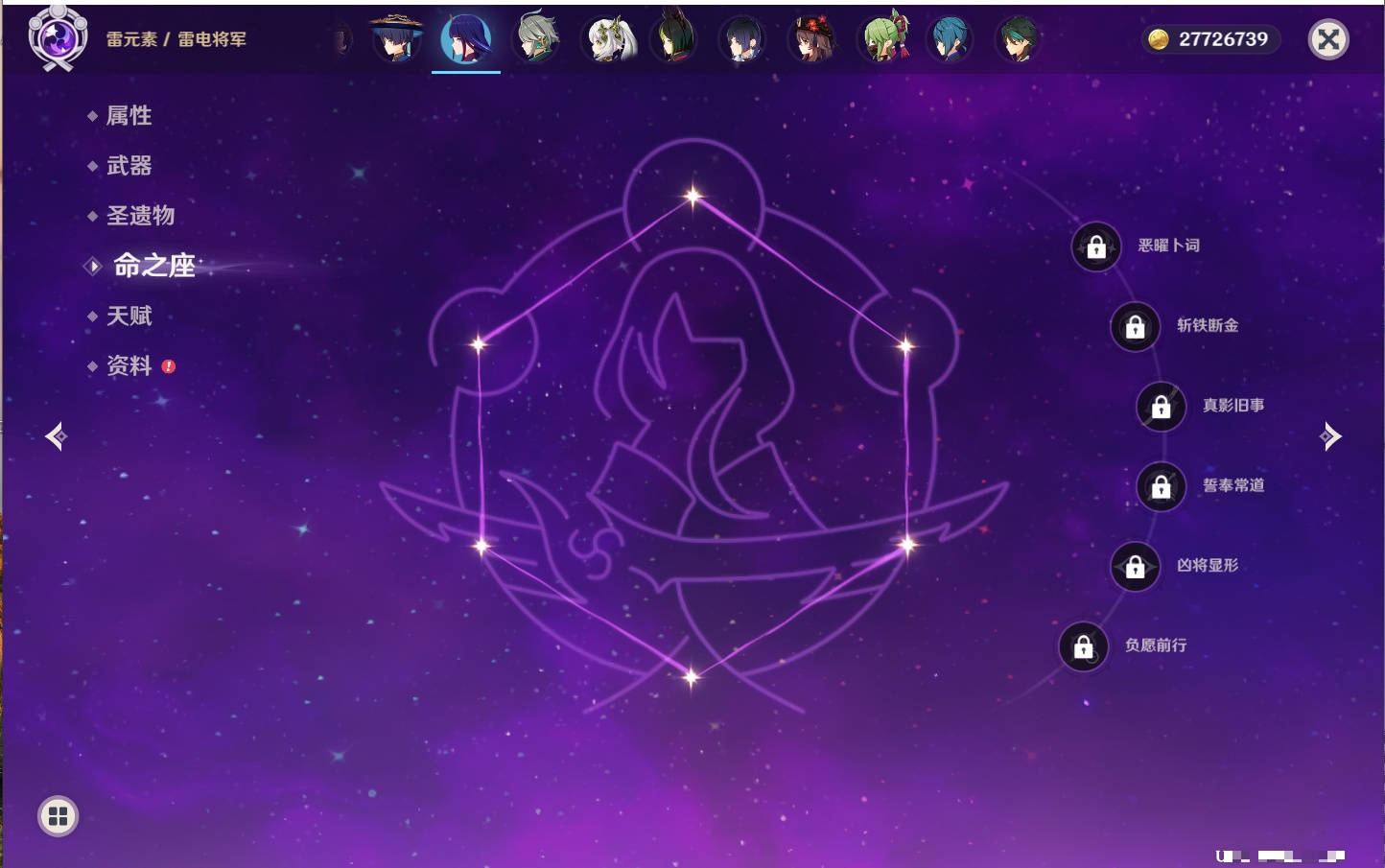 【24个五星角色】,2命钟离,2命七七,1命刻晴,1命莫娜,1命迪卢克,0命阿蕾奇诺,0命芙宁娜,0命莱欧斯利,0命那维莱特,0命林尼,0命迪希雅,0命艾尔海森,0命流浪者,0命纳西妲,0命提纳里,0命夜兰,0命八重神子,0命雷电将军,0命胡桃,0命魈,0命珊瑚宫心海,0命琴,0命梦见月瑞希,0命菲林斯,