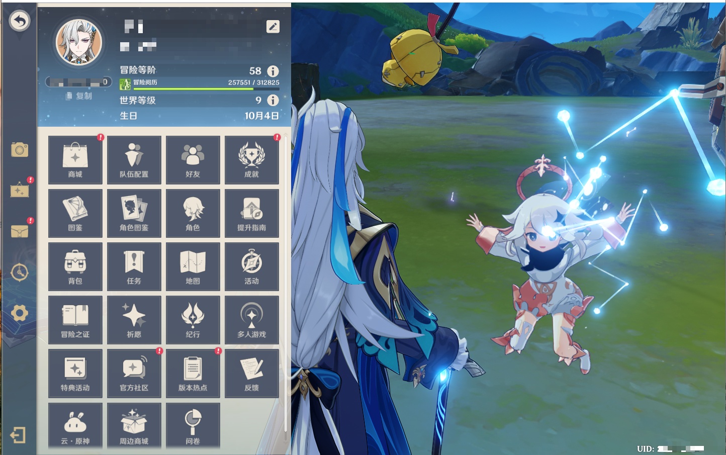 PX_2520852-,送未实名邮箱,,冒险等级58级,女主,50黄,24个五星角色,18个五星武器,纠缠之源0--原石390--圣遗物155--【时装】,雨化竹身,