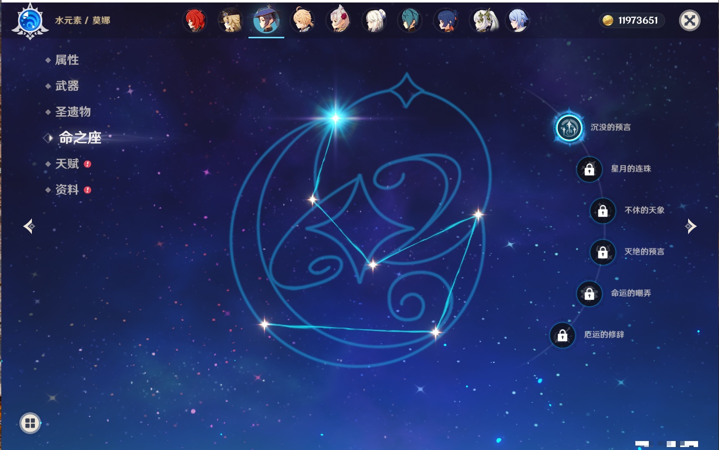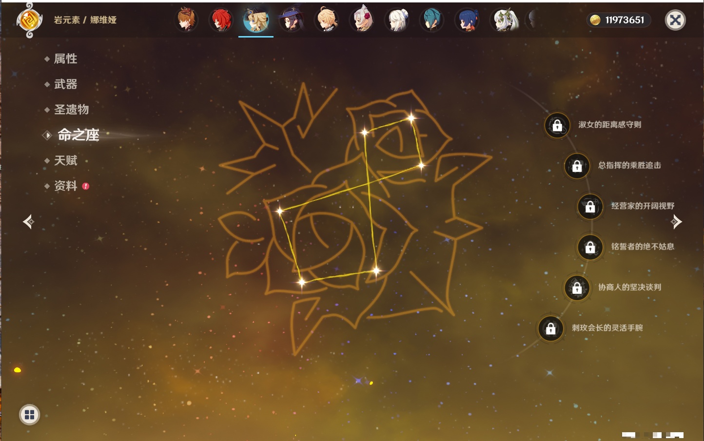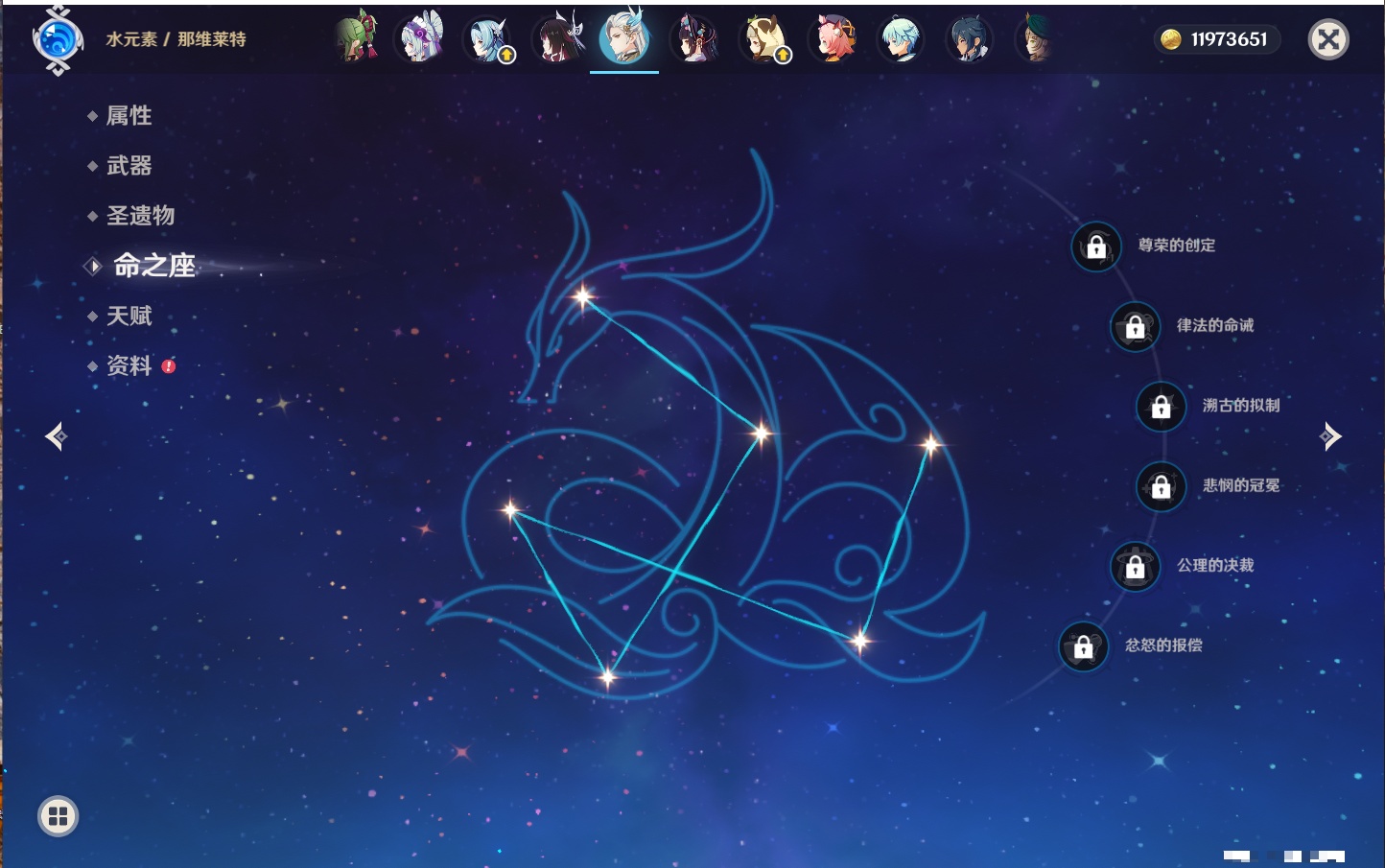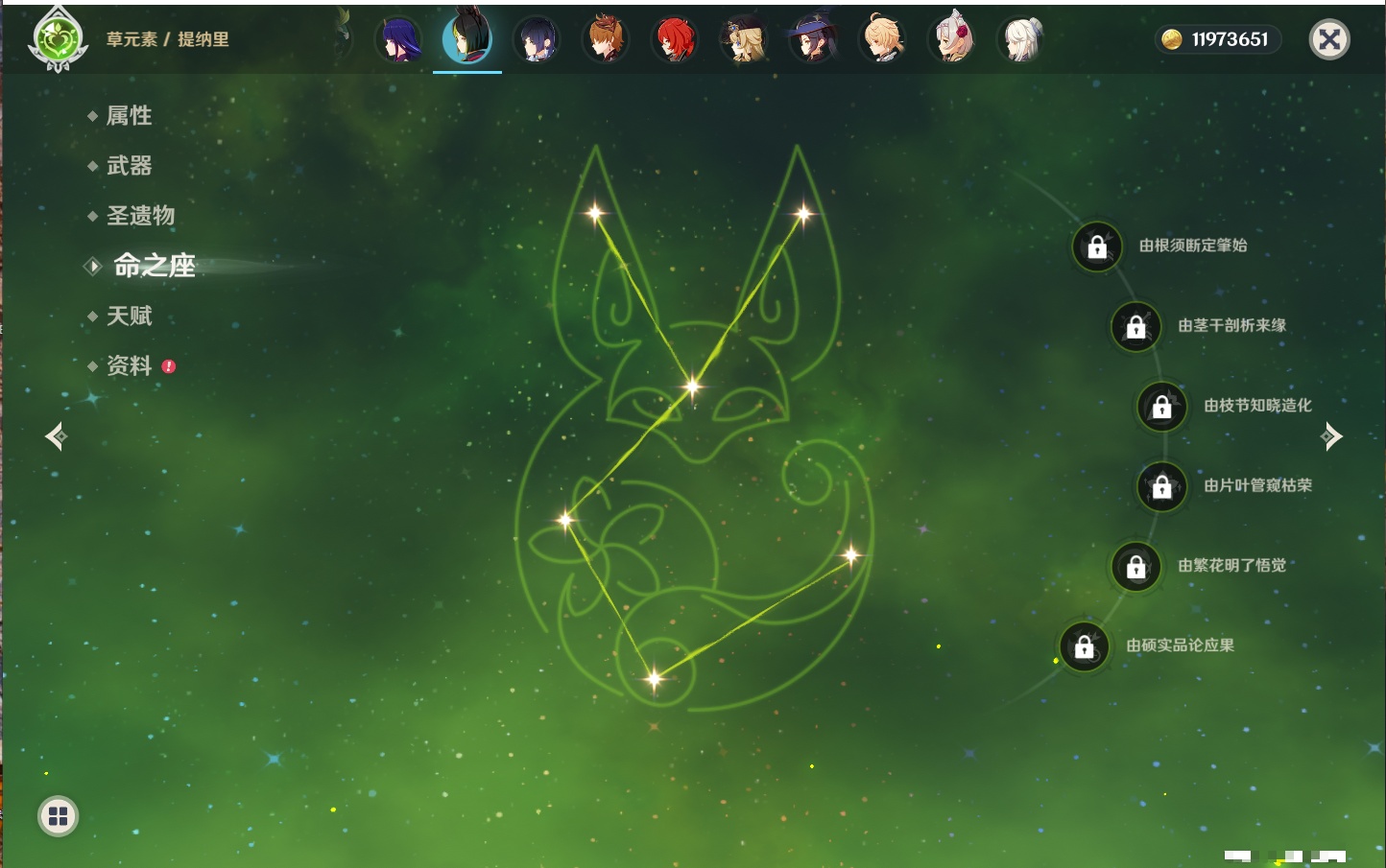 【22个五星角色】,2命钟离,2命七七,1命赛诺,1命夜兰,1命莫娜,1命迪卢克,1命梦见月瑞希,0命那维莱特,0命纳西妲,0命提纳里,0命神里绫人,0命优菈,0命雷电将军,0命魈,0命宵宫,0命温迪,0命达达利亚,0命刻晴,0命琴,0命菲林斯,0命娜维娅,0命哥伦比娅,