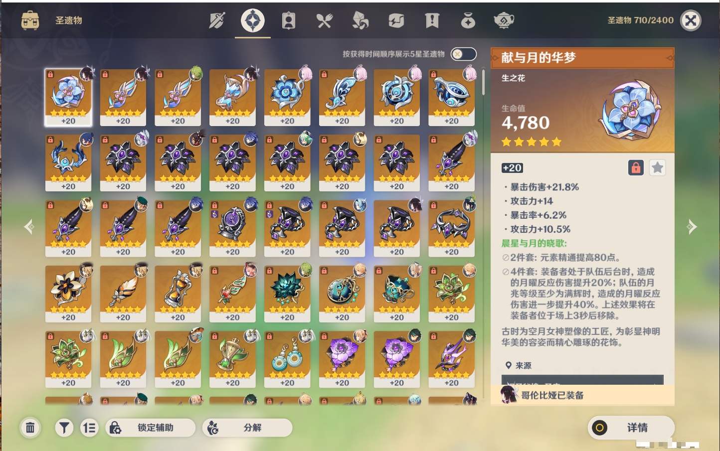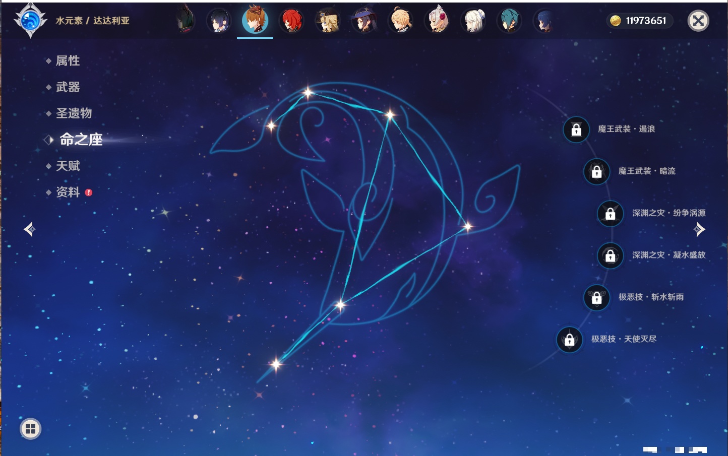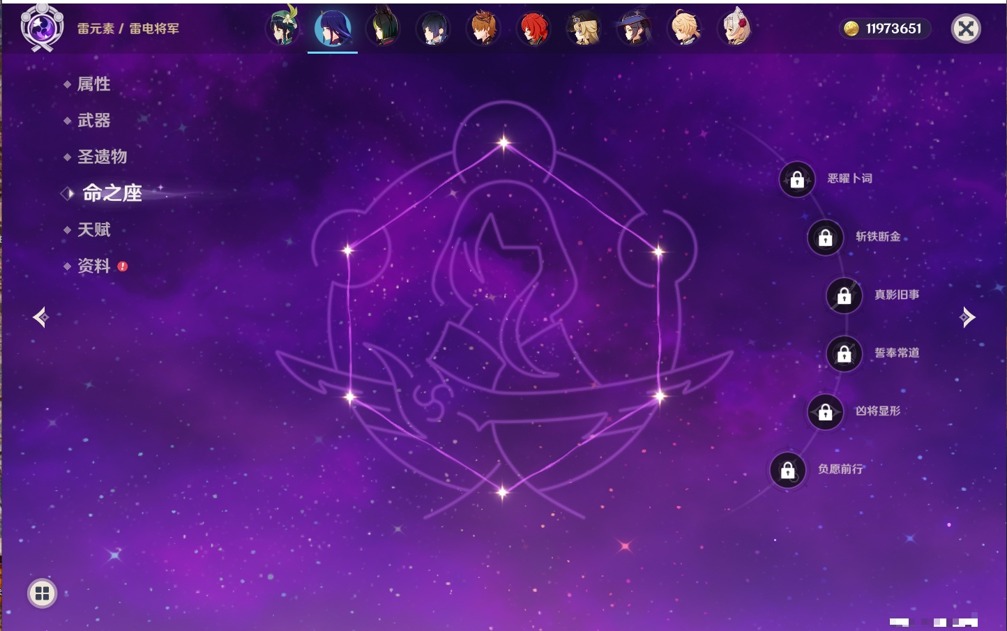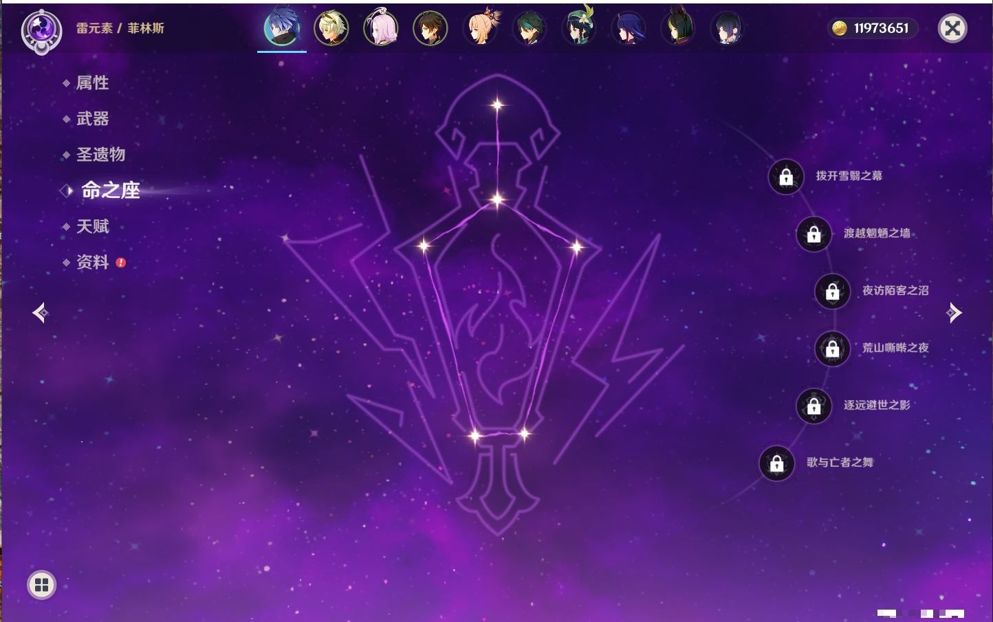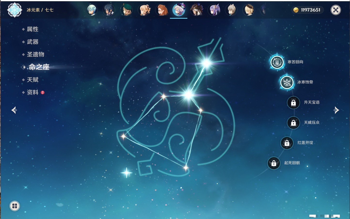【22个五星角色】,2命钟离,2命七七,1命赛诺,1命夜兰,1命莫娜,1命迪卢克,1命梦见月瑞希,0命那维莱特,0命纳西妲,0命提纳里,0命神里绫人,0命优菈,0命雷电将军,0命魈,0命宵宫,0命温迪,0命达达利亚,0命刻晴,0命琴,0命菲林斯,0命娜维娅,0命哥伦比娅,