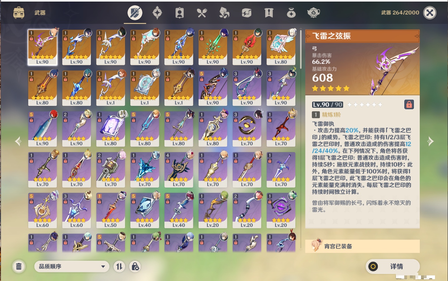 【13个五星武器】,精1飞雷之弦振,精1若水,精1阿莫斯之弓,精1天空之翼,精1血染荒城,精1和璞鸢,精1护摩之杖,精1天空之卷,精1赤沙之杖,精1波乱月白经津,精1四风原典,