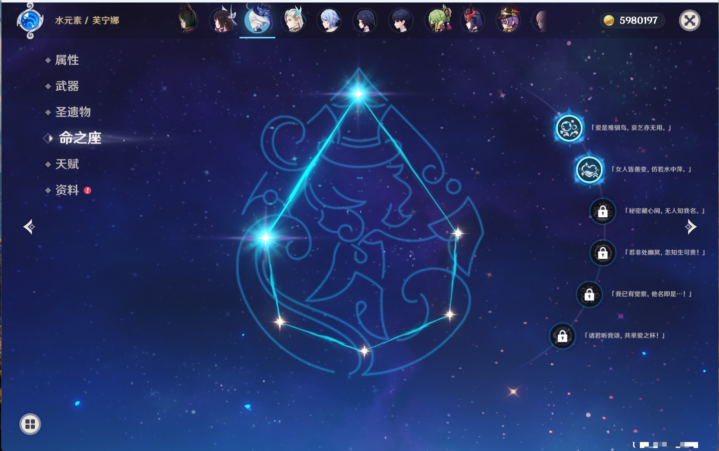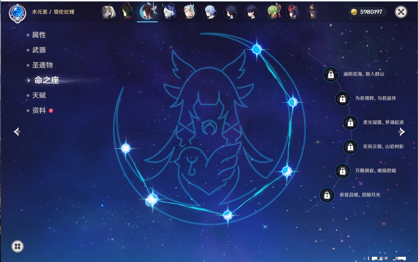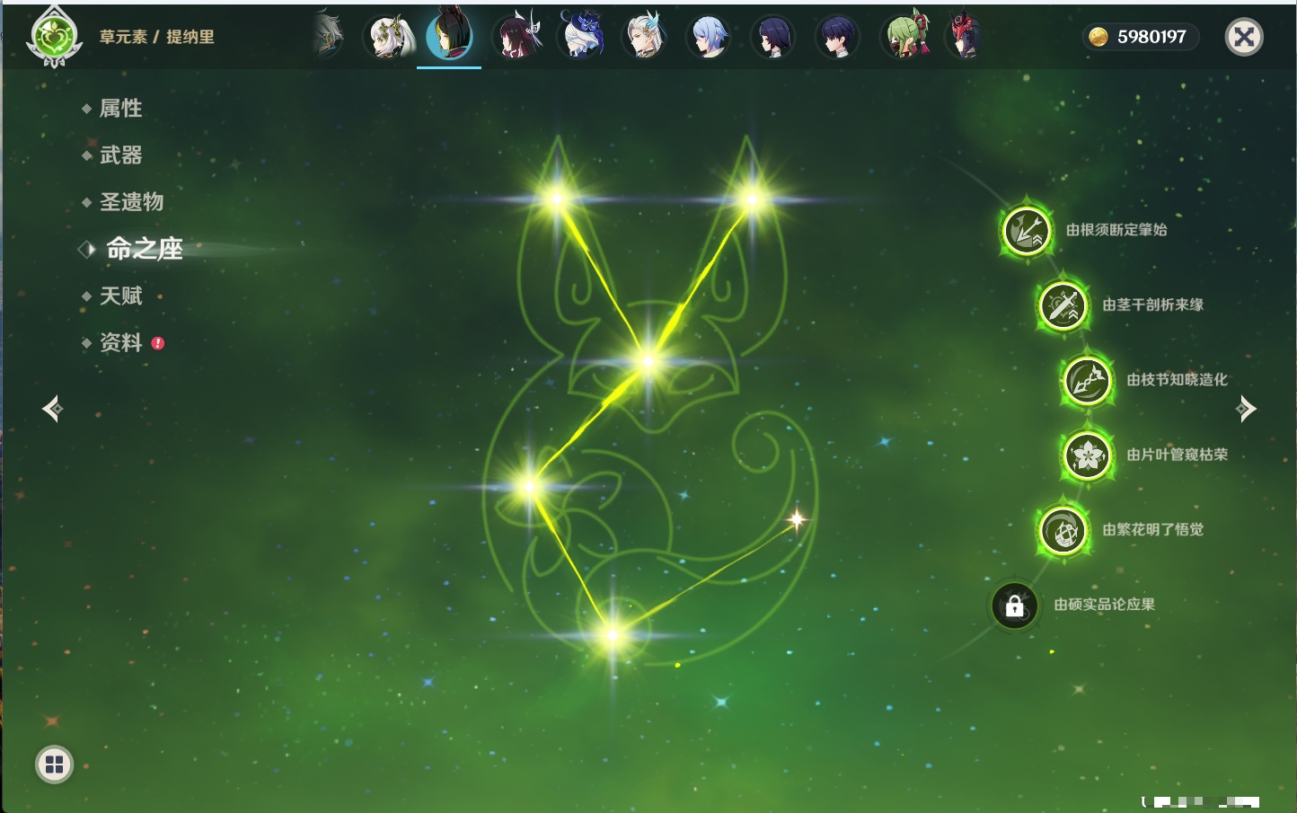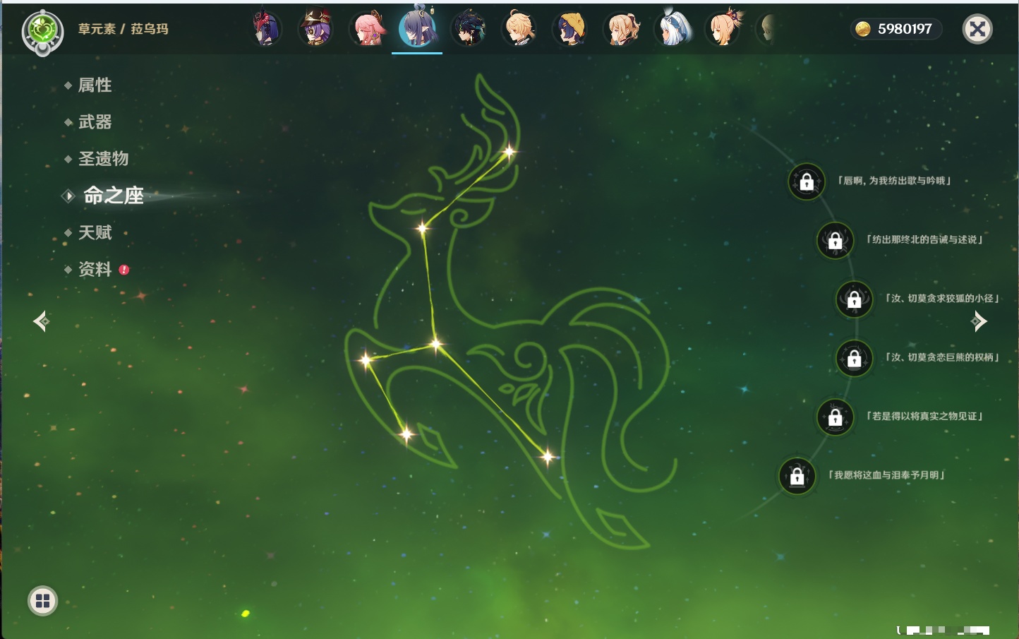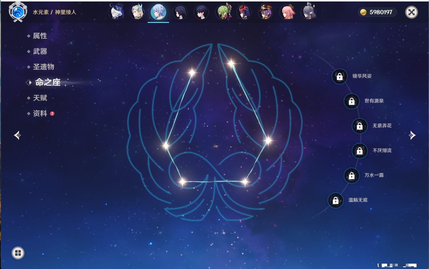 【26个五星角色】,5命提纳里,3命雷电将军,3命七七,2命芙宁娜,2命那维莱特,2命莫娜,1命阿蕾奇诺,1命刻晴,1命琴,0命白术,0命艾尔海森,0命纳西妲,0命神里绫人,0命八重神子,0命枫原万叶,0命钟离,0命宵宫,0命迪卢克,0命希诺宁,0命茜特菈莉,0命伊涅芙,0命哥伦比娅,0命菈乌玛,0命基尼奇,0命玛拉妮,0命爱可菲,