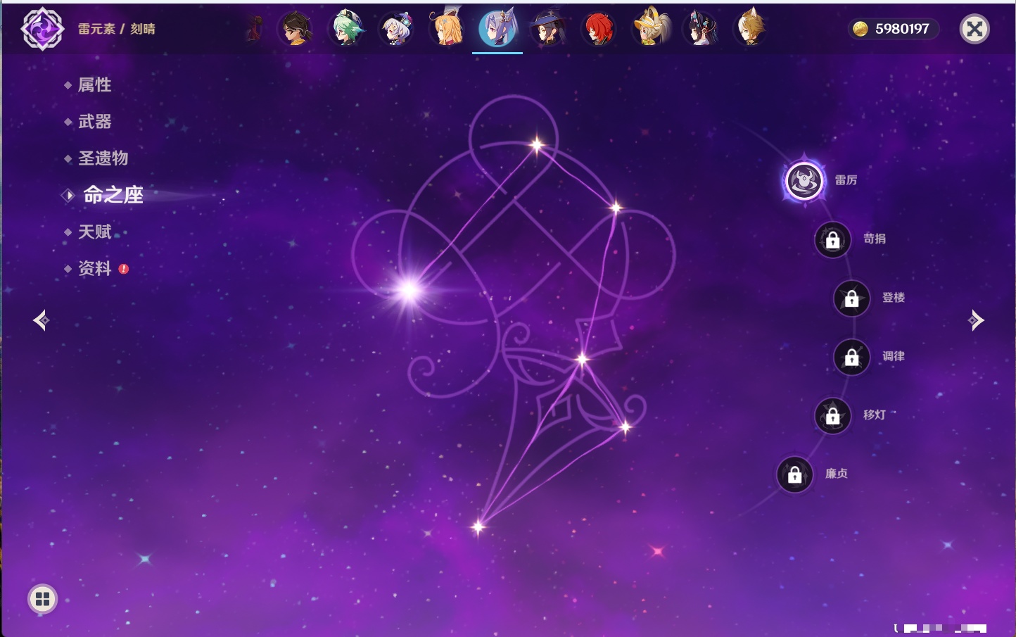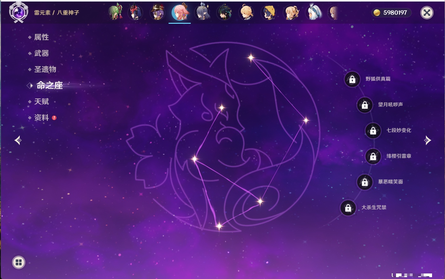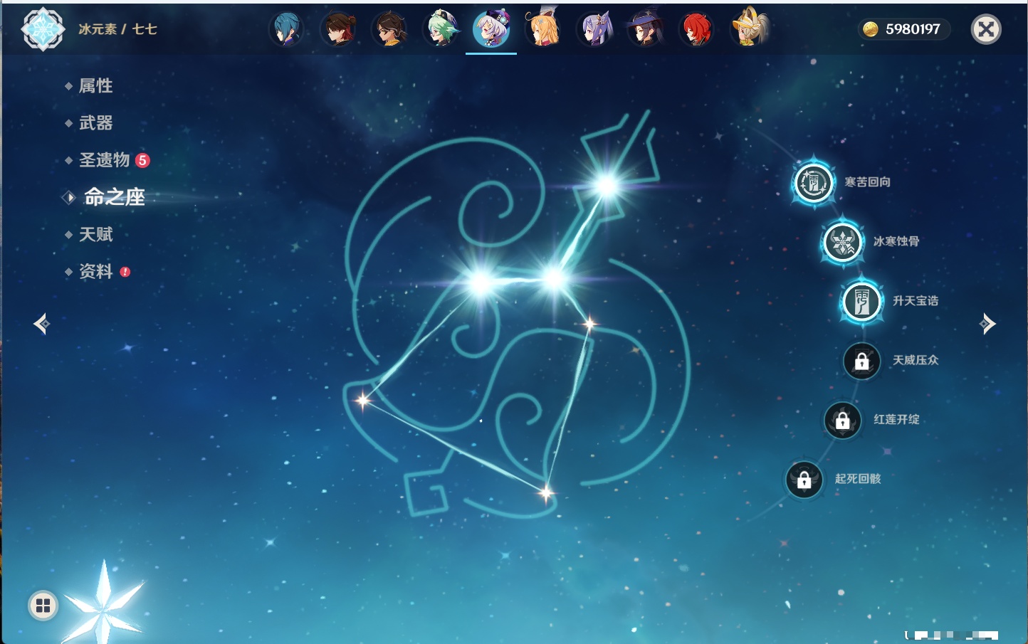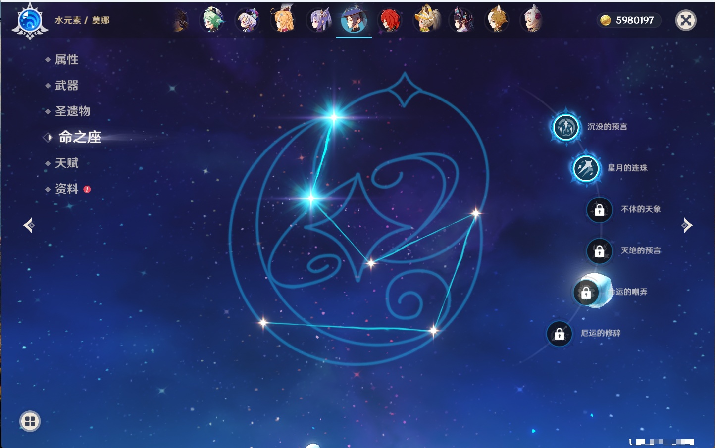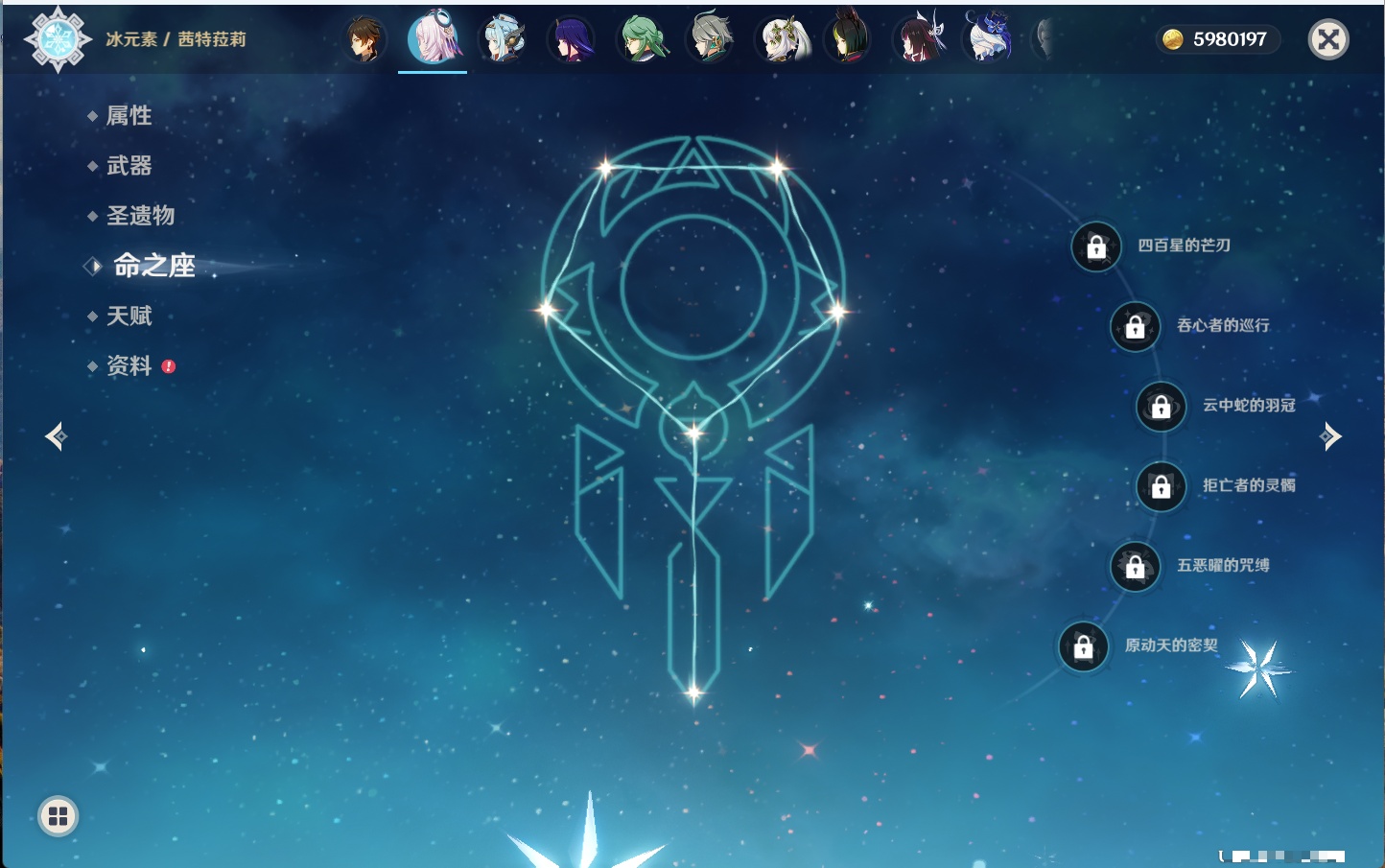 【26个五星角色】,5命提纳里,3命雷电将军,3命七七,2命芙宁娜,2命那维莱特,2命莫娜,1命阿蕾奇诺,1命刻晴,1命琴,0命白术,0命艾尔海森,0命纳西妲,0命神里绫人,0命八重神子,0命枫原万叶,0命钟离,0命宵宫,0命迪卢克,0命希诺宁,0命茜特菈莉,0命伊涅芙,0命哥伦比娅,0命菈乌玛,0命基尼奇,0命玛拉妮,0命爱可菲,