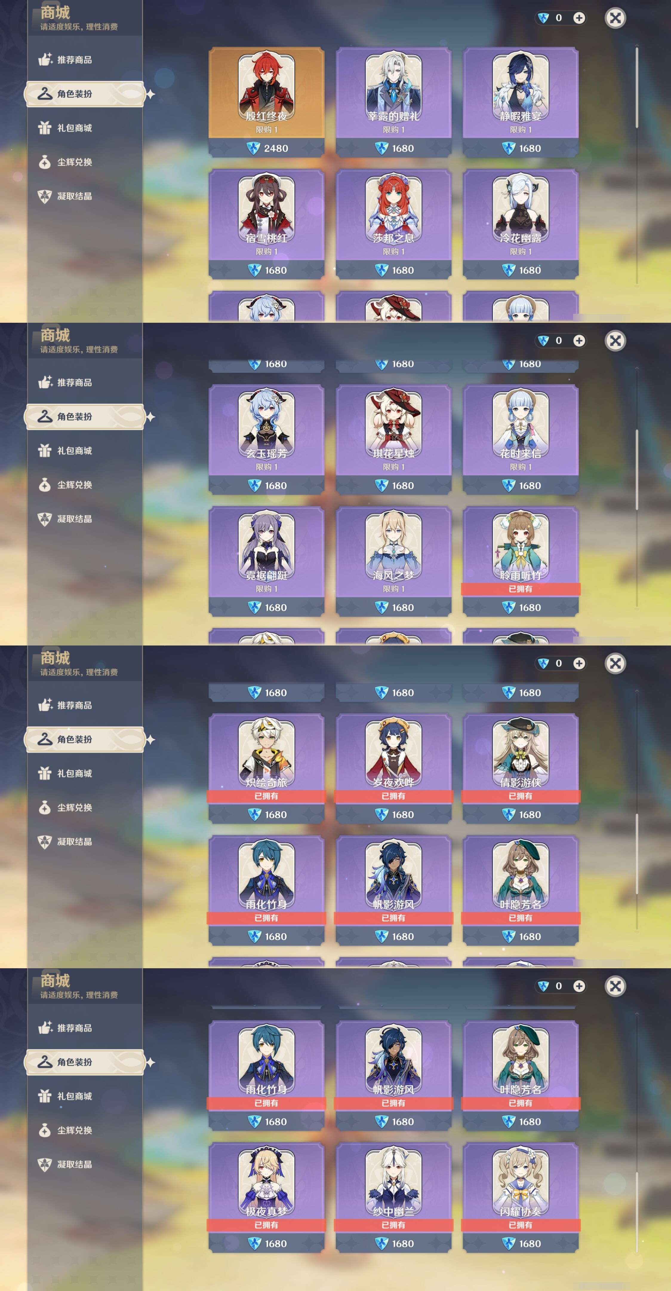 【时装】,玲雨听竹,炽绘奇旅,闪耀协奏,纱中幽兰,倩影游侠,岁夜欢哗,极夜真梦,帆影游风,雨化竹身,叶隐芳名,