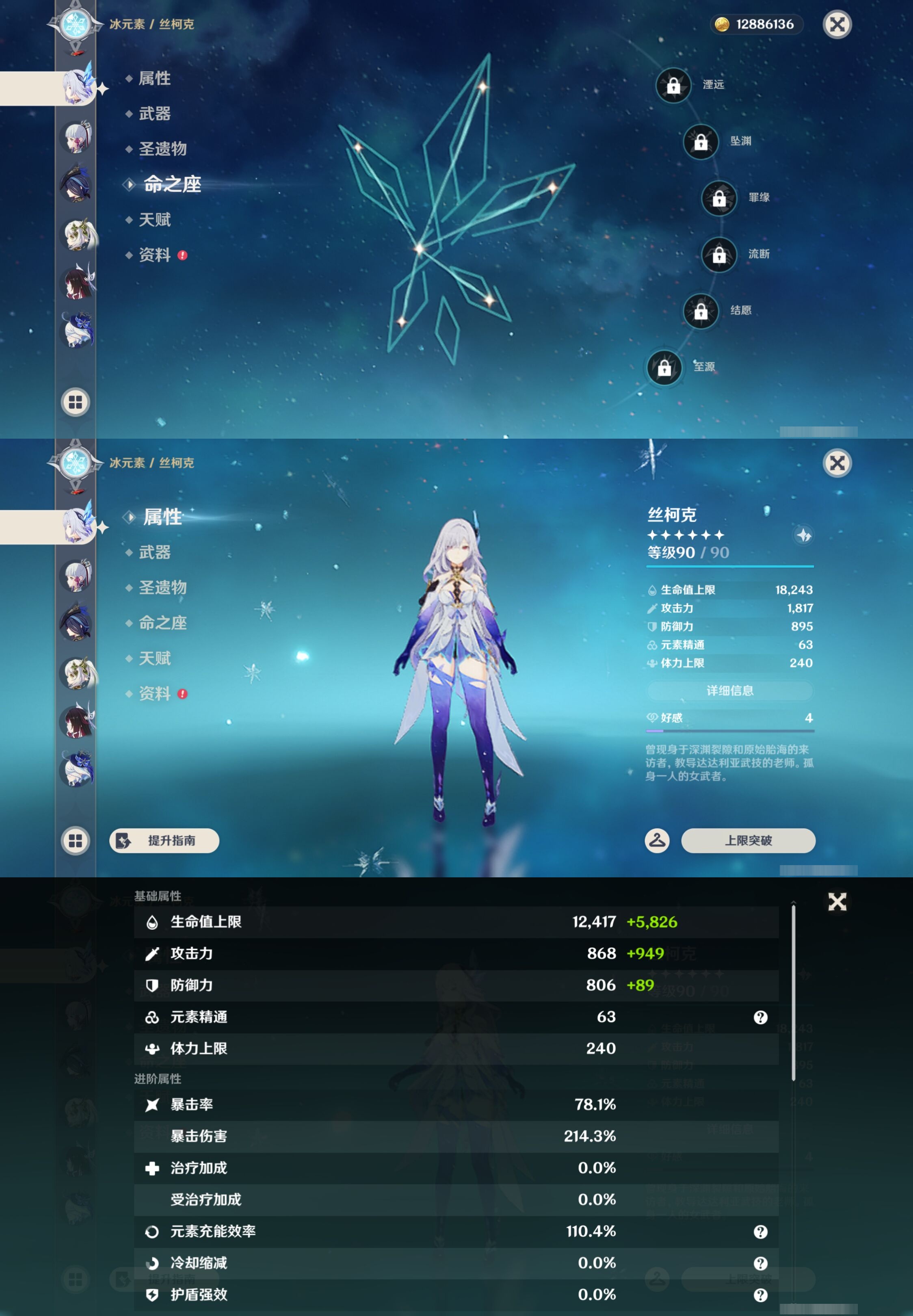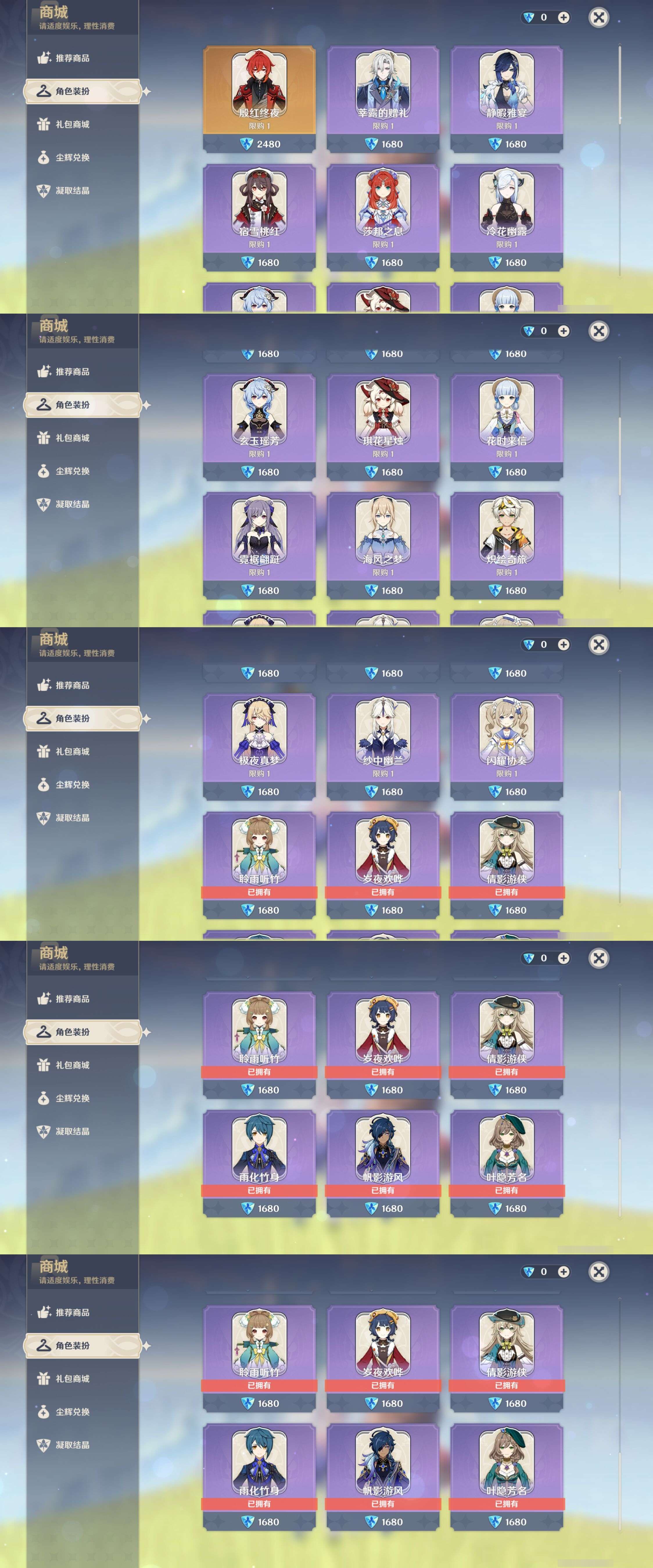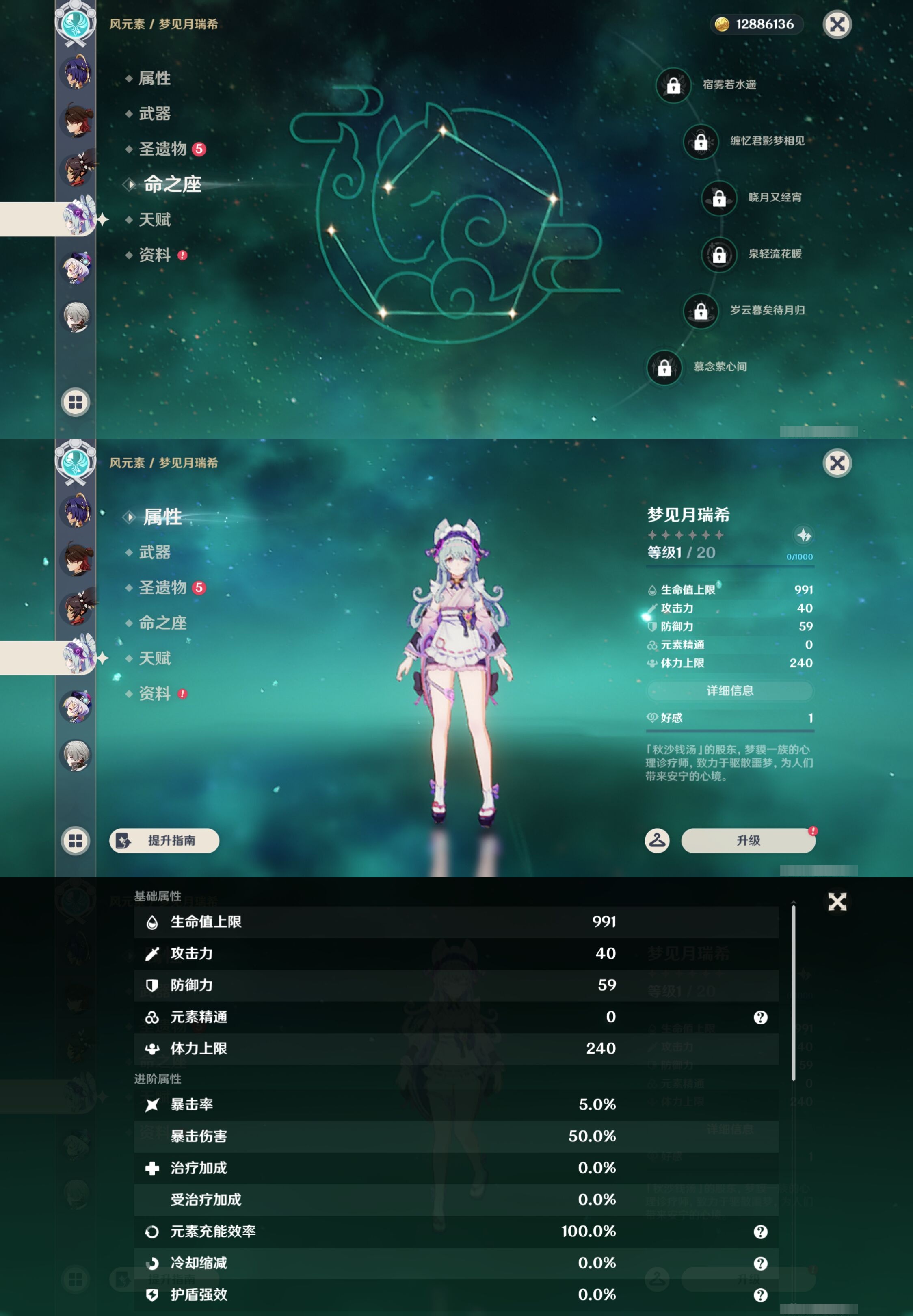 【26个五星角色】,4命莫娜,1命神里绫华,1命菈乌玛,1命琴,1命迪卢克,1命迪希雅,0命玛薇卡,0命茜特菈莉,0命希诺宁,0命钟离,0命枫原万叶,0命丝柯克,0命克洛琳德,0命纳西妲,0命哥伦比娅,0命芙宁娜,0命夜兰,0命宵宫,0命奈芙尔,0命恰斯卡,0命莱欧斯利,0命玛拉妮,0命刻晴,0命提纳里,0命梦见月瑞希,0命七七,