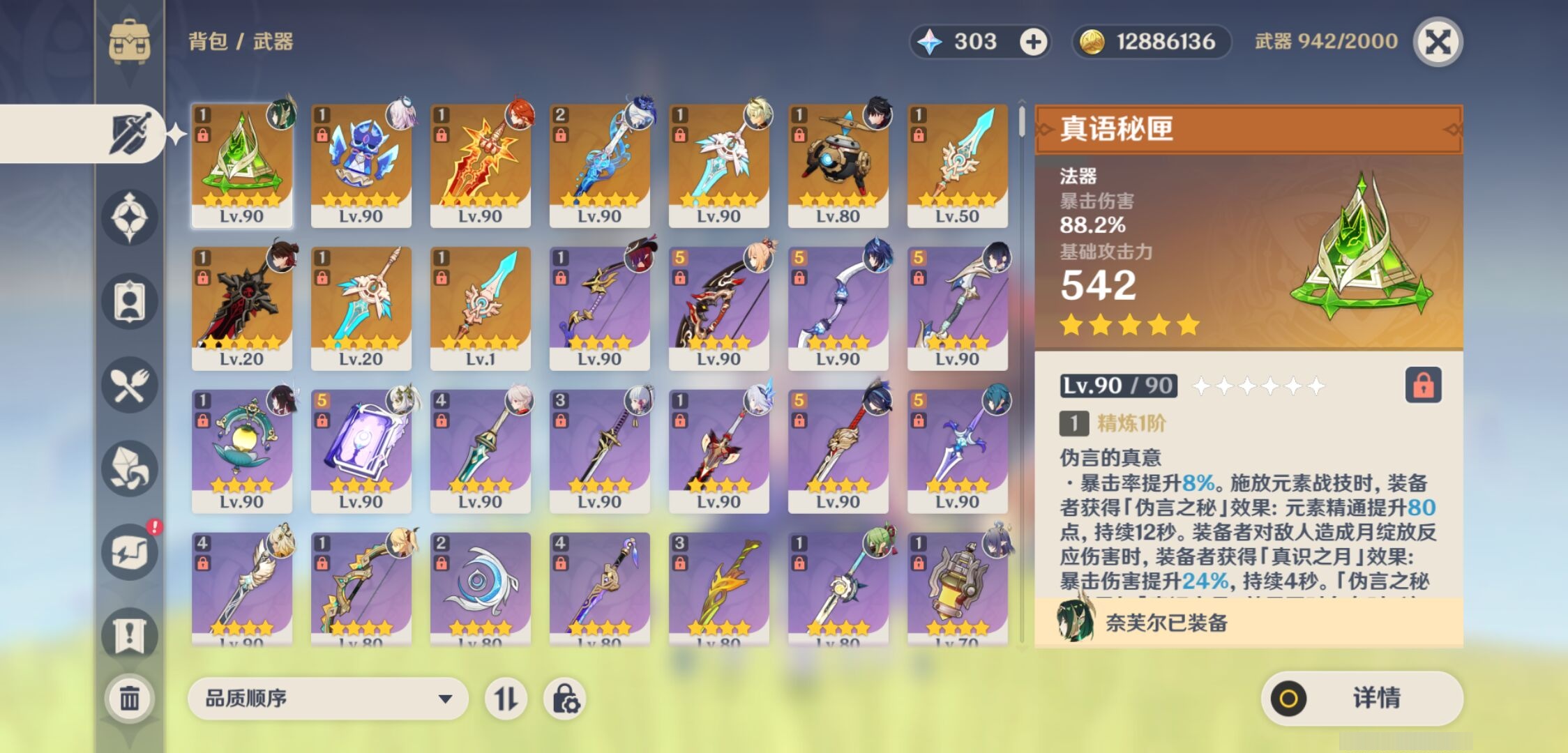 【10个五星武器】,精2静水流涌之辉,精1真语秘匣,精1狼的末路,精1祭星者之望,精1天空之刃,精1焚曜千阳,精1天空之脊,精1天空之刃,精1金流监督,精1天空之脊,6套,