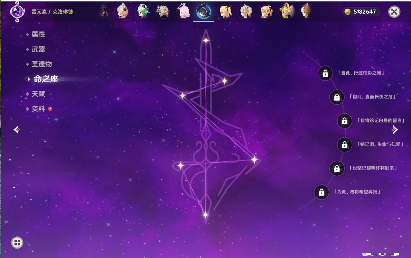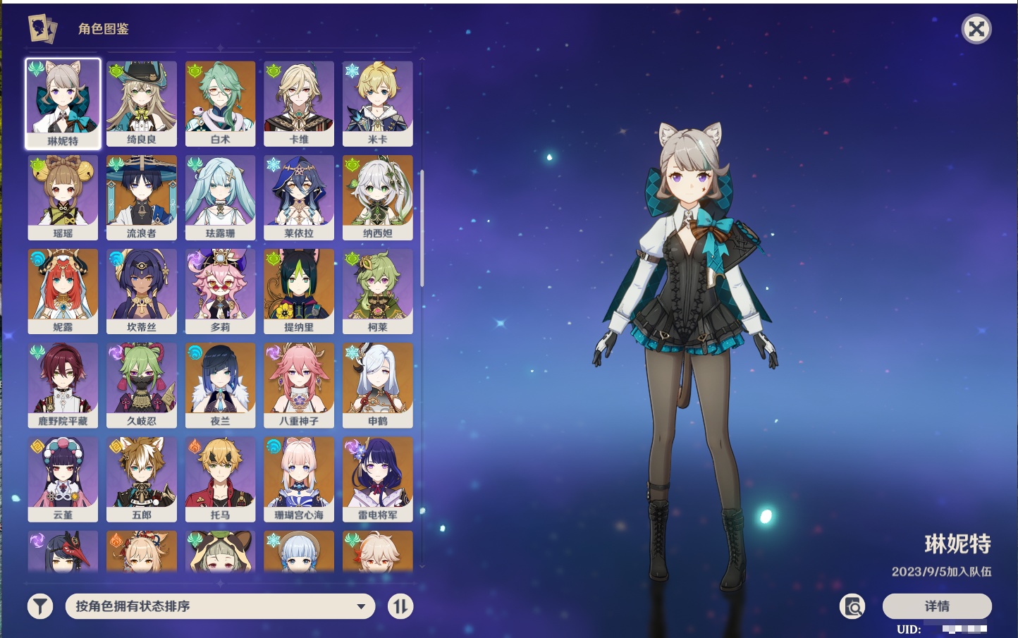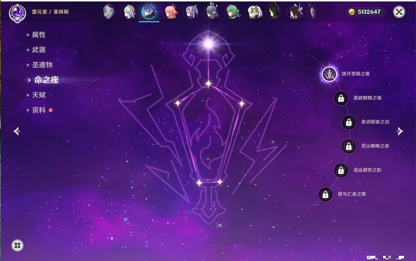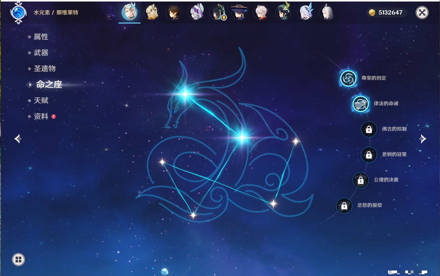 【33个五星角色】,满命提纳里,2命那维莱特,2命甘雨,2命刻晴,2命琴,2命迪卢克,1命芙宁娜,1命夜兰,1命枫原万叶,1命胡桃,1命菲林斯,0命克洛琳德,0命阿蕾奇诺,0命闲云,0命白术,0命流浪者,0命纳西妲,0命妮露,0命八重神子,0命申鹤,0命雷电将军,0命神里绫华,0命钟离,0命宵宫,0命温迪,0命珊瑚宫心海,0命七七,0命莫娜,0命希诺宁,0命梦见月瑞希,0命丝柯克,0命菈乌玛,0命哥伦比娅,