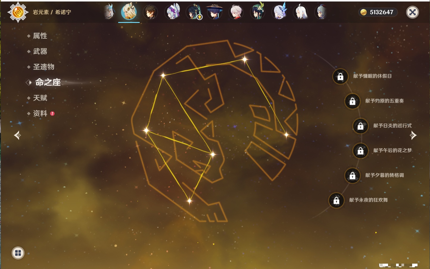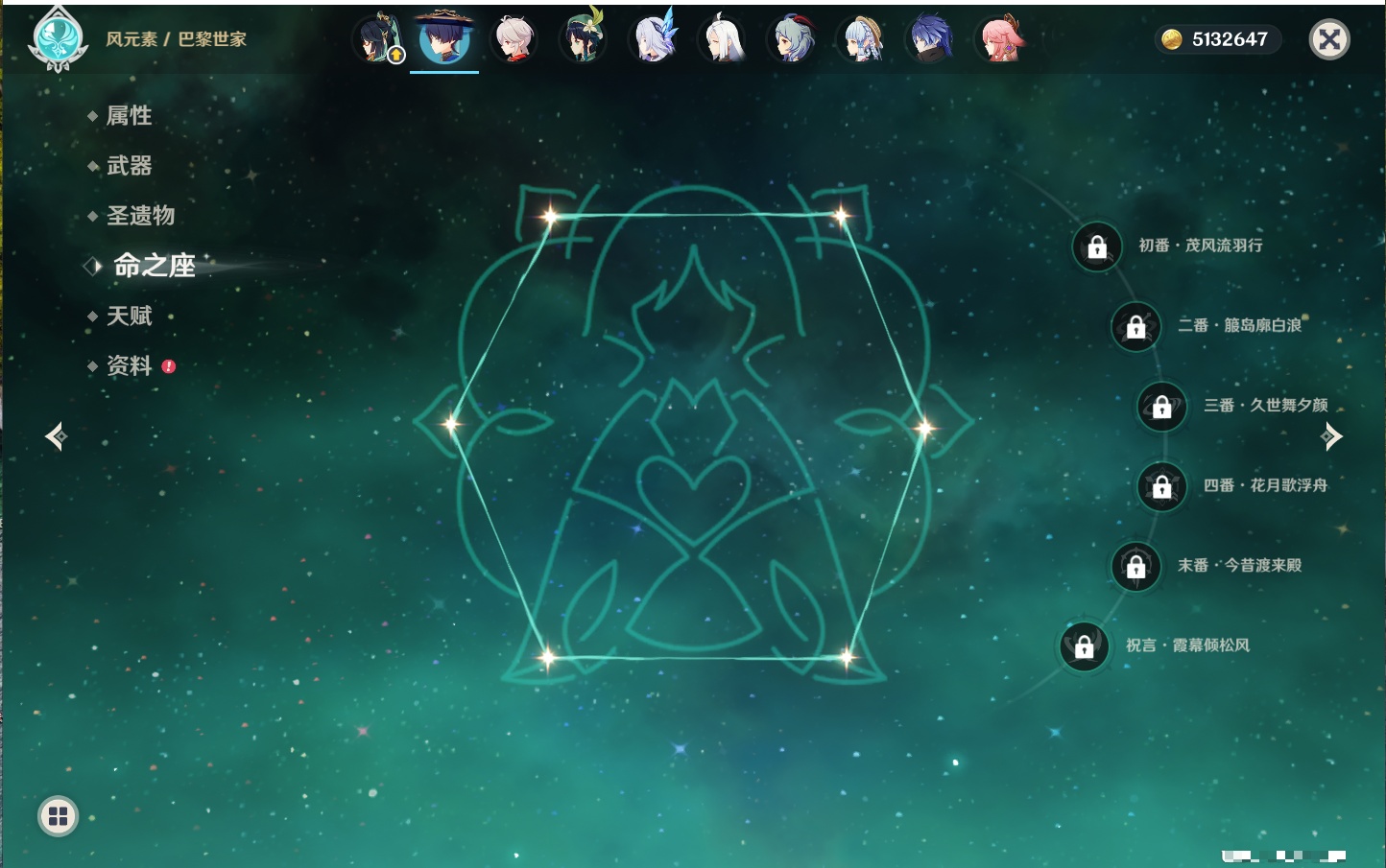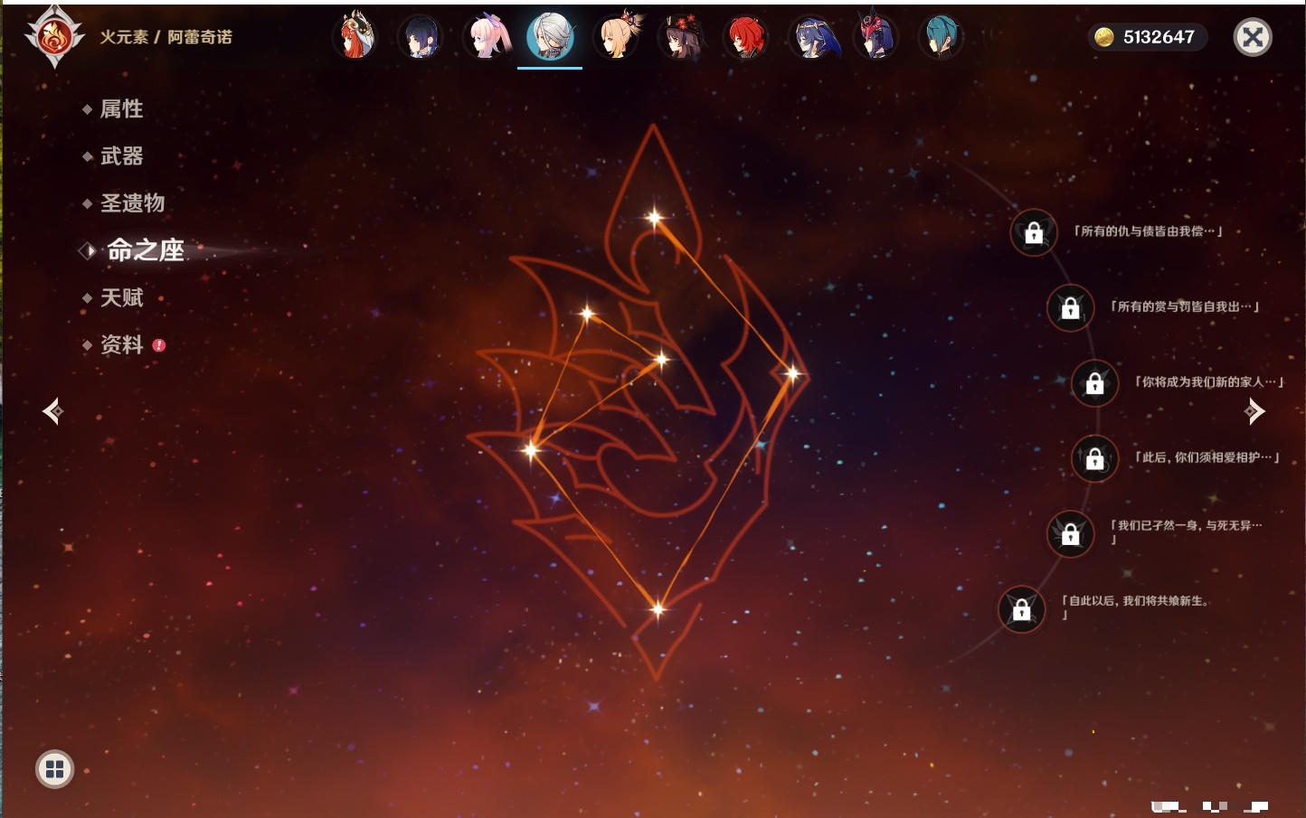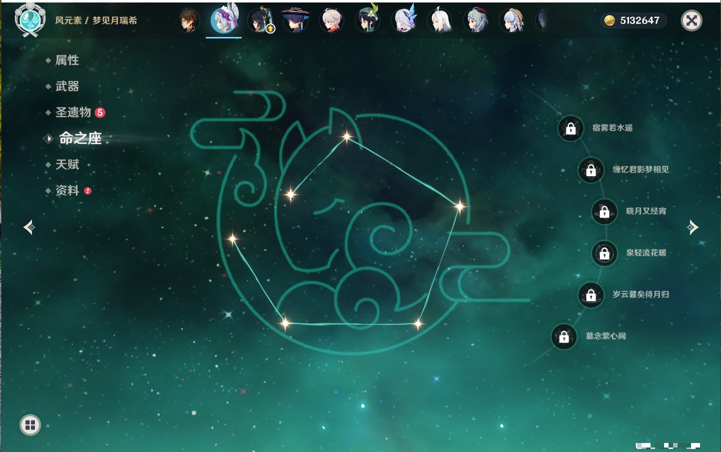 【33个五星角色】,满命提纳里,2命那维莱特,2命甘雨,2命刻晴,2命琴,2命迪卢克,1命芙宁娜,1命夜兰,1命枫原万叶,1命胡桃,1命菲林斯,0命克洛琳德,0命阿蕾奇诺,0命闲云,0命白术,0命流浪者,0命纳西妲,0命妮露,0命八重神子,0命申鹤,0命雷电将军,0命神里绫华,0命钟离,0命宵宫,0命温迪,0命珊瑚宫心海,0命七七,0命莫娜,0命希诺宁,0命梦见月瑞希,0命丝柯克,0命菈乌玛,0命哥伦比娅,