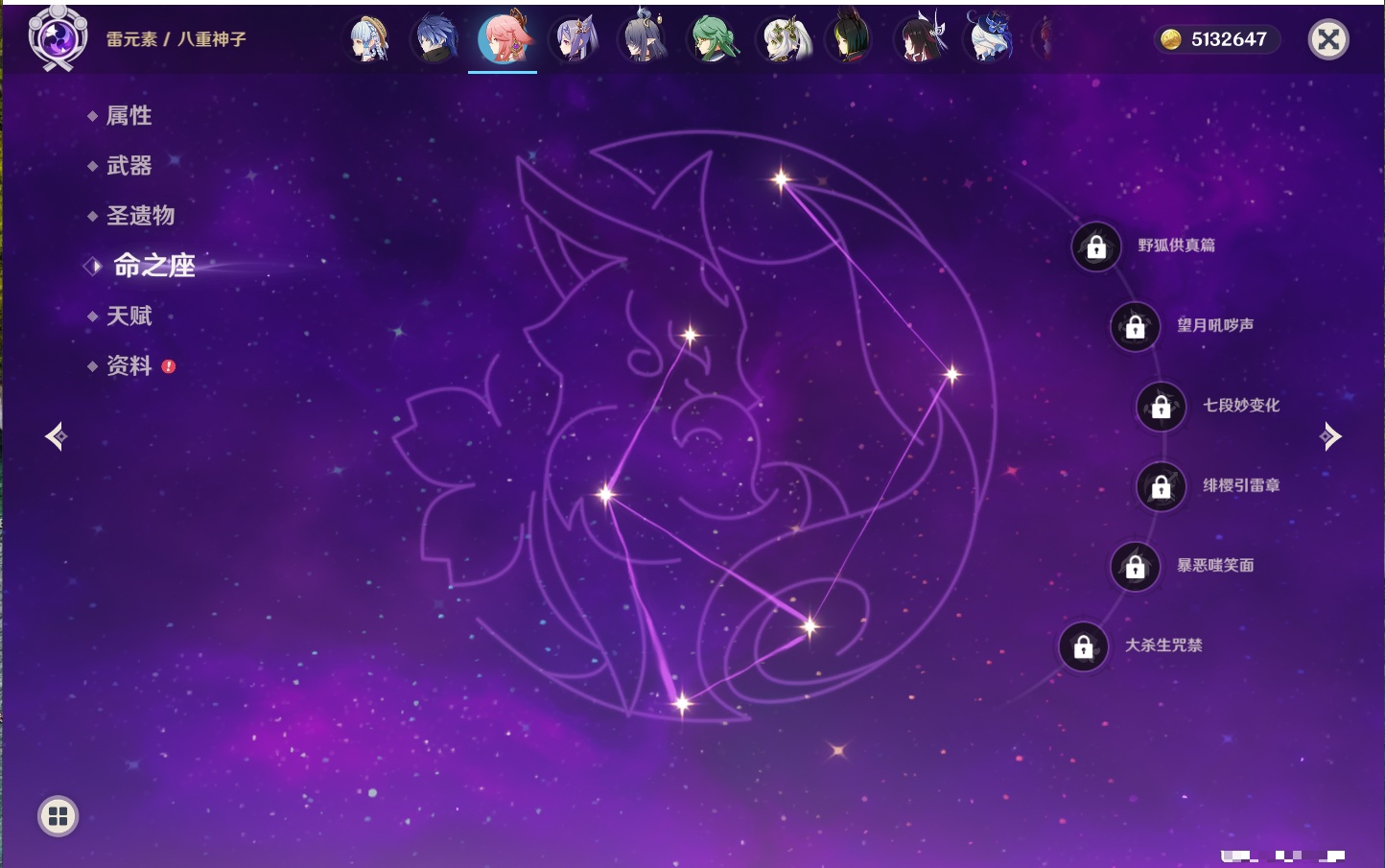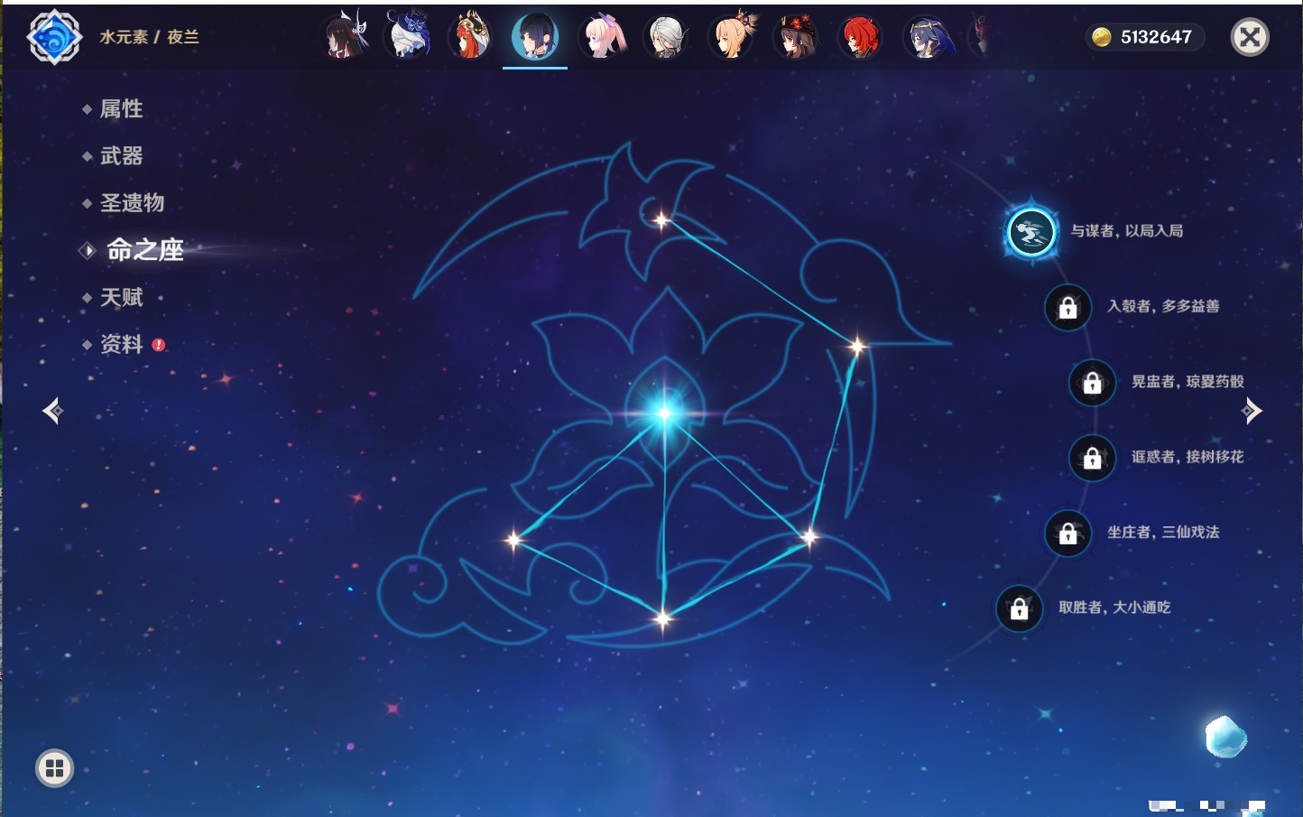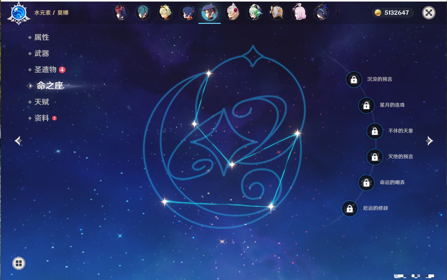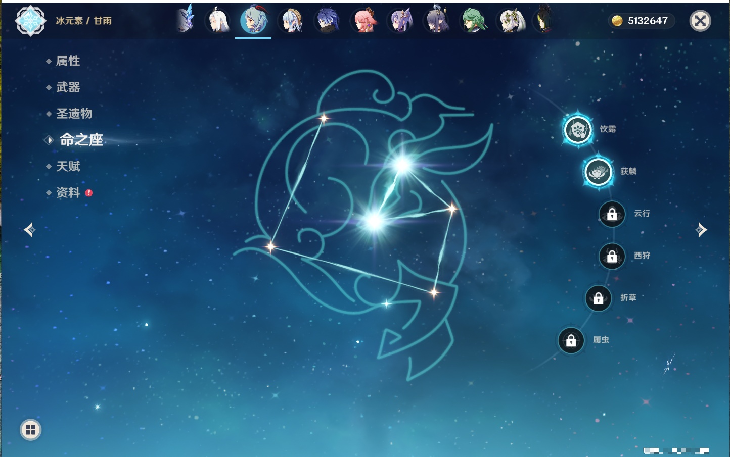 【33个五星角色】,满命提纳里,2命那维莱特,2命甘雨,2命刻晴,2命琴,2命迪卢克,1命芙宁娜,1命夜兰,1命枫原万叶,1命胡桃,1命菲林斯,0命克洛琳德,0命阿蕾奇诺,0命闲云,0命白术,0命流浪者,0命纳西妲,0命妮露,0命八重神子,0命申鹤,0命雷电将军,0命神里绫华,0命钟离,0命宵宫,0命温迪,0命珊瑚宫心海,0命七七,0命莫娜,0命希诺宁,0命梦见月瑞希,0命丝柯克,0命菈乌玛,0命哥伦比娅,