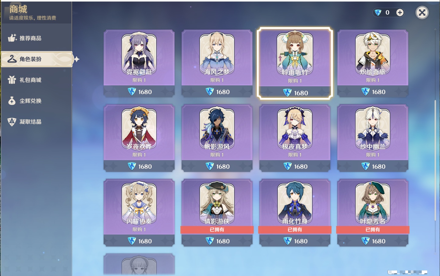 PX_2528400-,邮箱不出售,,冒险等级60级,女主,74黄,33个五星角色,19个五星武器,纠缠之源4--原石382--圣遗物366--【时装】,倩影游侠,雨化竹身,叶隐芳名,