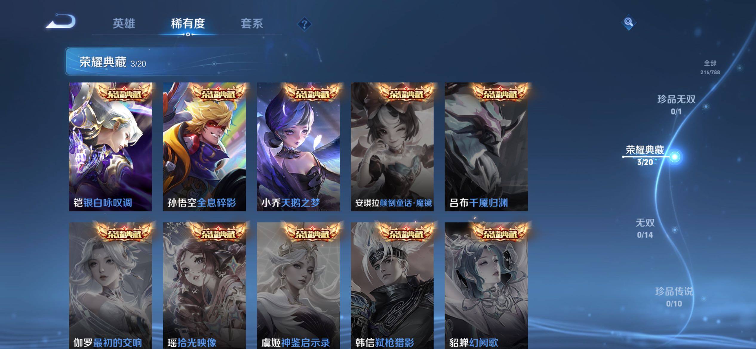 【其他皮肤】:影百相守梦,孙权径山谋武,刘邦剑破天穹,亚瑟鸿运当头,廉颇功夫炙烤,朵莉亚金色潮汐,张良古海寻踪,鲁班大师探海日志,裴擒虎擒涛扼浪,白起乐园追猎者,牛魔牛运亨通,猪八戒潮玩探月行,嫦娥暖冬兔眠,桑启海盐诗旅,李元芳云中旅人,甄姬落雪兰心,蒙恬蔚蓝守将,沈梦溪大漠名商,兰陵王金庭之子,程咬金无双福将,芈月幻夜卜梦,达摩沙漠行僧,马可波罗潮玩牛仔,妲己紫罗兰之誓,后羿圣弓游侠,苏烈千军破阵,墨子神迹守卫,钟馗驱傩正仪,程咬金演武夺筹,杨戬次元傲视,刘禅秘密基地,亚瑟潮玩骑士王,狄仁杰万华元夜,雅典娜单词大作战,鬼谷子原初探秘者,猪八戒西部大镖客,老夫子醍醐杖,盾山圆桌骑士,刘邦夺宝奇兵,明世隐疑决卦,鲁班七号黑桃队长,哪吒次元突破,弈星混沌棋,沈梦溪星空之诺,周瑜赤莲之焰,夏侯惇朔风刀,姜子牙炽热元素使,高渐离玩趣恶龙,孙膑归虚梦演,小乔丁香结,庄周奇妙博物学,明世隐虹云星官,吕布猎兽之王,米莱狄御霄,项羽科学大爆炸,大乔守护之力,苏烈坚韧之力,太乙真人华丽摇滚,狂铁御狮,鬼谷子幻乐之宴,诸葛亮掌控之力,典韦穷奇,孙尚香沉稳之力,牛魔制霸全明星,老夫子功夫老勺,狂铁命运角斗场,芈月重明,王昭君幻想奇妙夜,宫本武藏霸王丸,钟无艳海滩丽影,白起狰,虞姬凯尔特女王,关羽龙腾万里,高渐离死亡摇滚,狄仁杰阴阳师,后羿阿尔法小队,宫本武藏万象初新,甄姬花好人间,张飞五福同心,花木兰兔女郎,达摩拳王,亚瑟死亡骑士,典韦黄金武士,姜子牙时尚教父,孙膑天使之翼,安琪拉玩偶对对碰,扁鹊化身博士,武则天东方不败,牛魔西部大镖客,白起白色死神,赵云忍炎影,阿轲爱心护理,露娜哥特玫瑰,韩信街头霸王,韩信教廷特使,项羽海滩派对,桑启画中游,云缨赤焰之缨,司空震启蛰,澜孤猎,阿古朵熊喵少女,镜冰刃幻境,蒙犽归虚梦演,鲁班大师归虚梦演,西施归虚梦演,马超幸存者,曜归虚梦演,瑶森,盘古创世神祝,嫦娥露花倒影,李信灼热之刃,沈梦溪棒球奇才,伽罗花见巫女,司马懿魇语军师,孙策海之征途,弈星踏雪寻梅,裴擒虎街头旋风,杨玉环霓裳曲,女娲尼罗河女神,梦奇美梦成真,苏烈爱与和平,百里玄策威尼斯狂欢,铠龙域领主,东皇太一东海龙王,大乔伊势巫女,黄忠芝加哥教父,诸葛亮星航指挥官,哪吒三太子,太乙真人圆桌骑士,苍维京掠夺者,马可波罗激情绿茵,雅典娜战争女神,夏侯惇战争骑士,关羽天启骑士,虞姬加勒比小姐,李元芳特种部队,钟馗地府判官,李白范海辛,兰陵王隐刃,后羿精灵王,周瑜海军大将,妲己仙境爱丽丝,孙尚香火炮千金,孙悟空西部大镖客,孙膑未来旅行,小乔万圣前夜,张良天堂福音,曹操超能战警,狄仁杰锦衣卫,王昭君精灵公主,程咬金华尔街大亨,鲁班七号木偶奇遇记