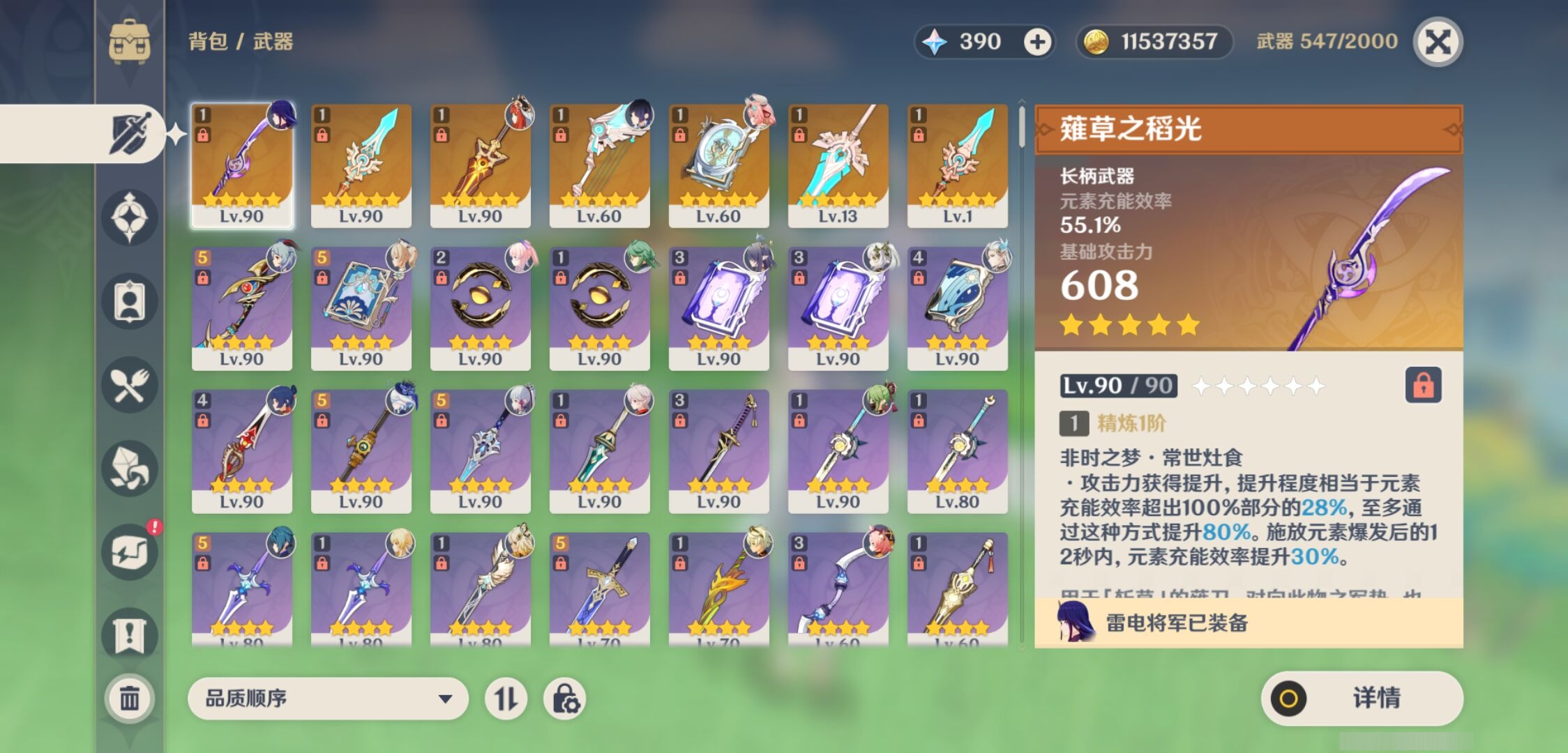 【7个五星武器】,精1薙草之稻光,精1天空之脊,精1圣显之钥,精1天空之翼,精1四风原典,精1天空之傲,精1天空之脊,3套,