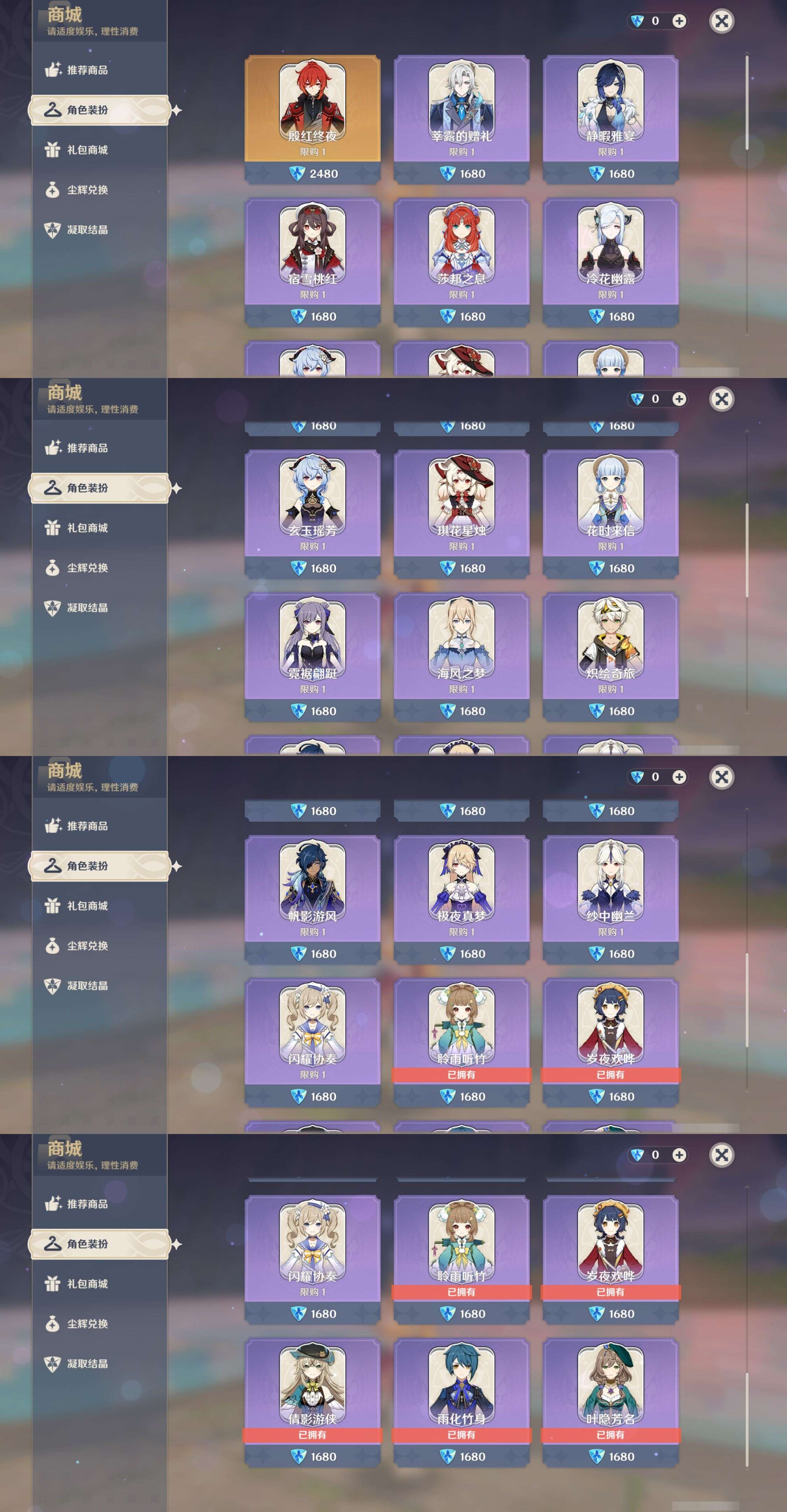 PX_2530543-,未绑定邮箱,,冒险等级60级,女主,55黄,29个五星角色,11个五星武器,纠缠之源0--原石50--圣遗物1340--【时装】,岁夜欢哗,聆雨听竹,叶隐芳名,雨化竹身,倩影游侠,